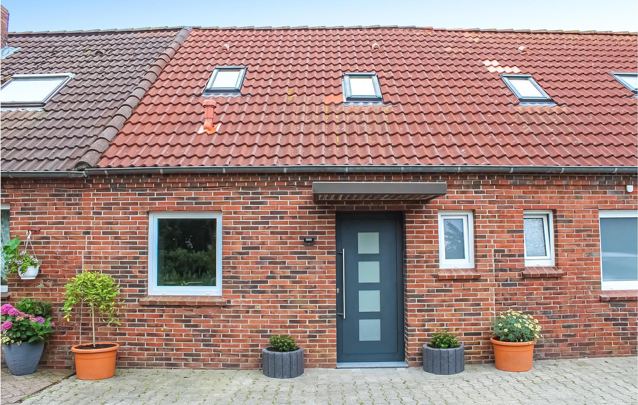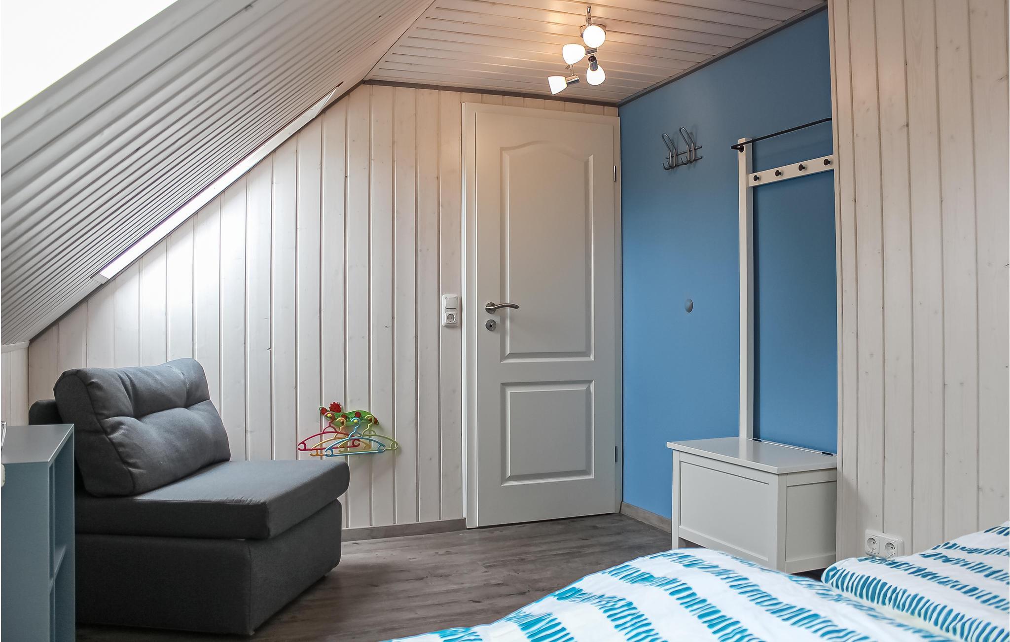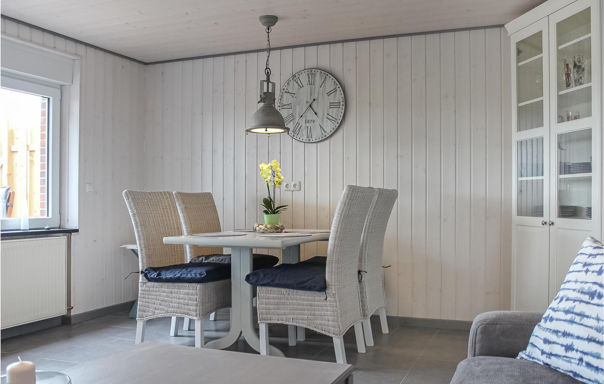 Den rummelige stue med spiseplads tilbyder plads til fire personer. Herfra har du adgang til terrassen med en lille have og en stor murstensgrill. Nyd udsigten over de store felter i Østfriesland herfra. Lige ved siden af ??din have kan du se en besætning af malkekøer, der græsser.