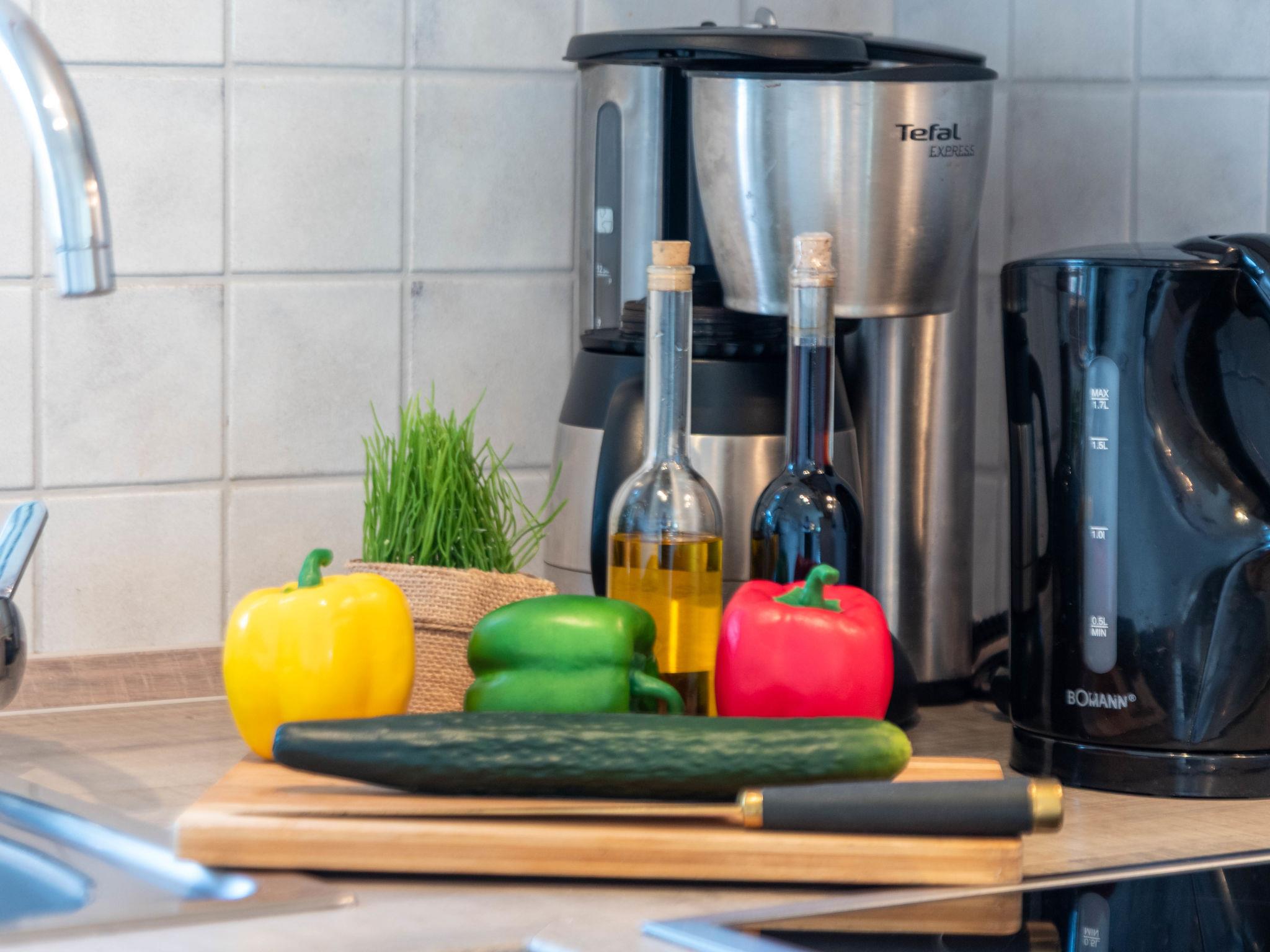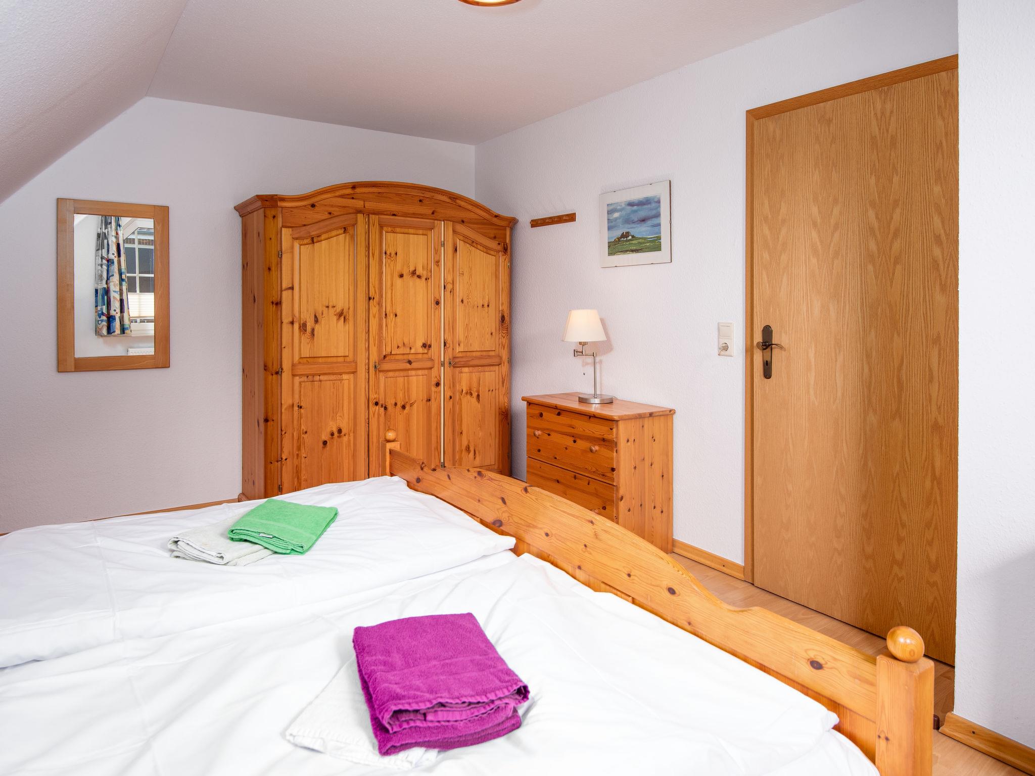 3-room semi-detached house 85 m2 on 2 levels, on the ground floor. Beautiful and tasteful furnishings: living/dining room 32 m2 with satellite TV (flat screen), CD-player. Exit to the terrace. Kitchenette (oven, dishwasher, 4 ceramic glass hob hotplates, toaster, kettle, microwave, electric coffee machine). Sep. WC. Upper floor: 1 room 15 m2 with 1 double bed (2 x 100 cm, length 200 cm). 1 room 15 m2 with 2 beds (90 cm, length 200 cm), satellite TV (flat screen). Shower/WC. Terrace furniture, deck chairs (2). Facilities: telephone, iron, children's high chair. Internet (WiFi, free). Please note: non-smoking house. Smoke alarm. Beach chair on the terrace. Bringing a small child as a 5th person is not permitted.