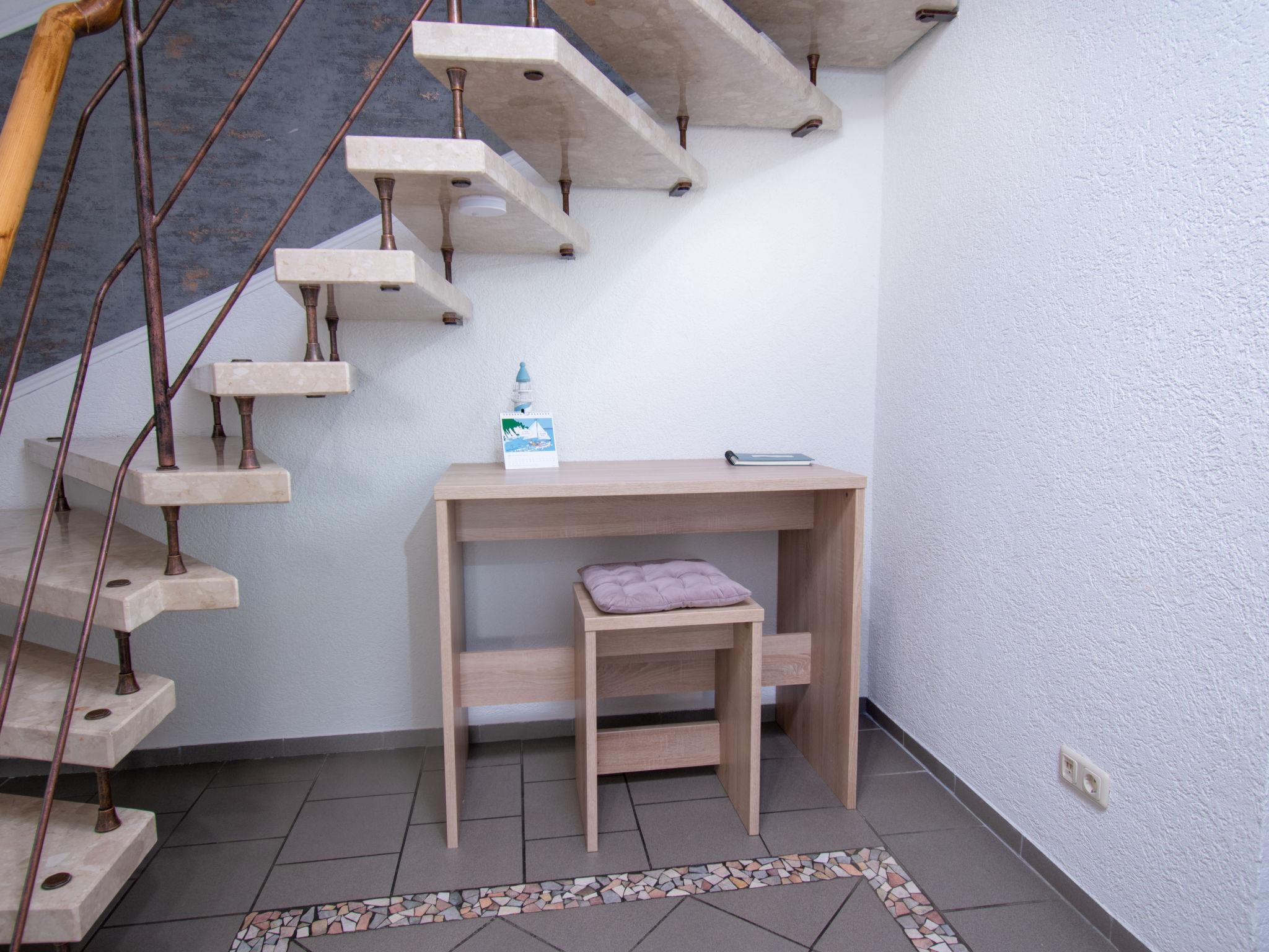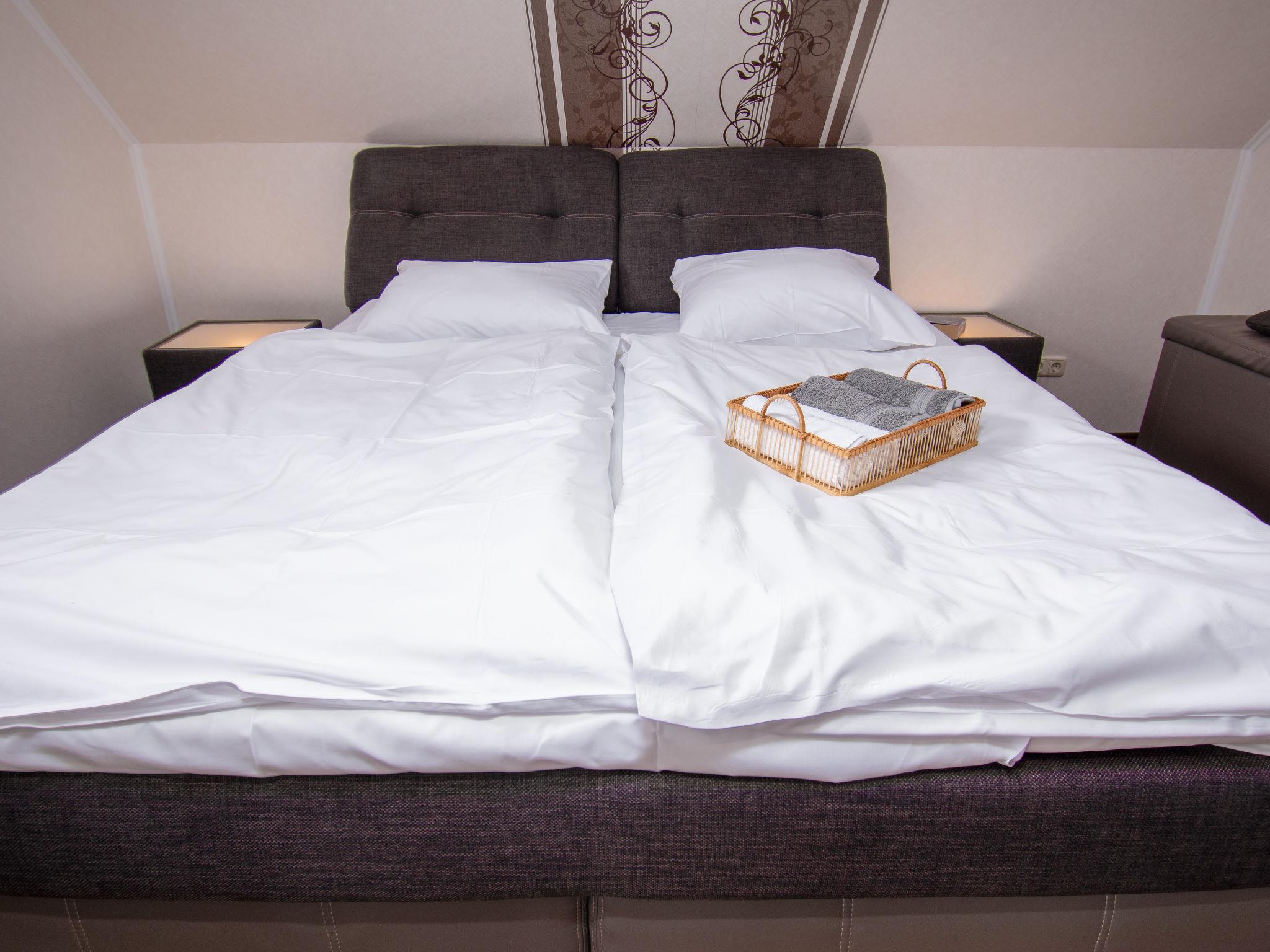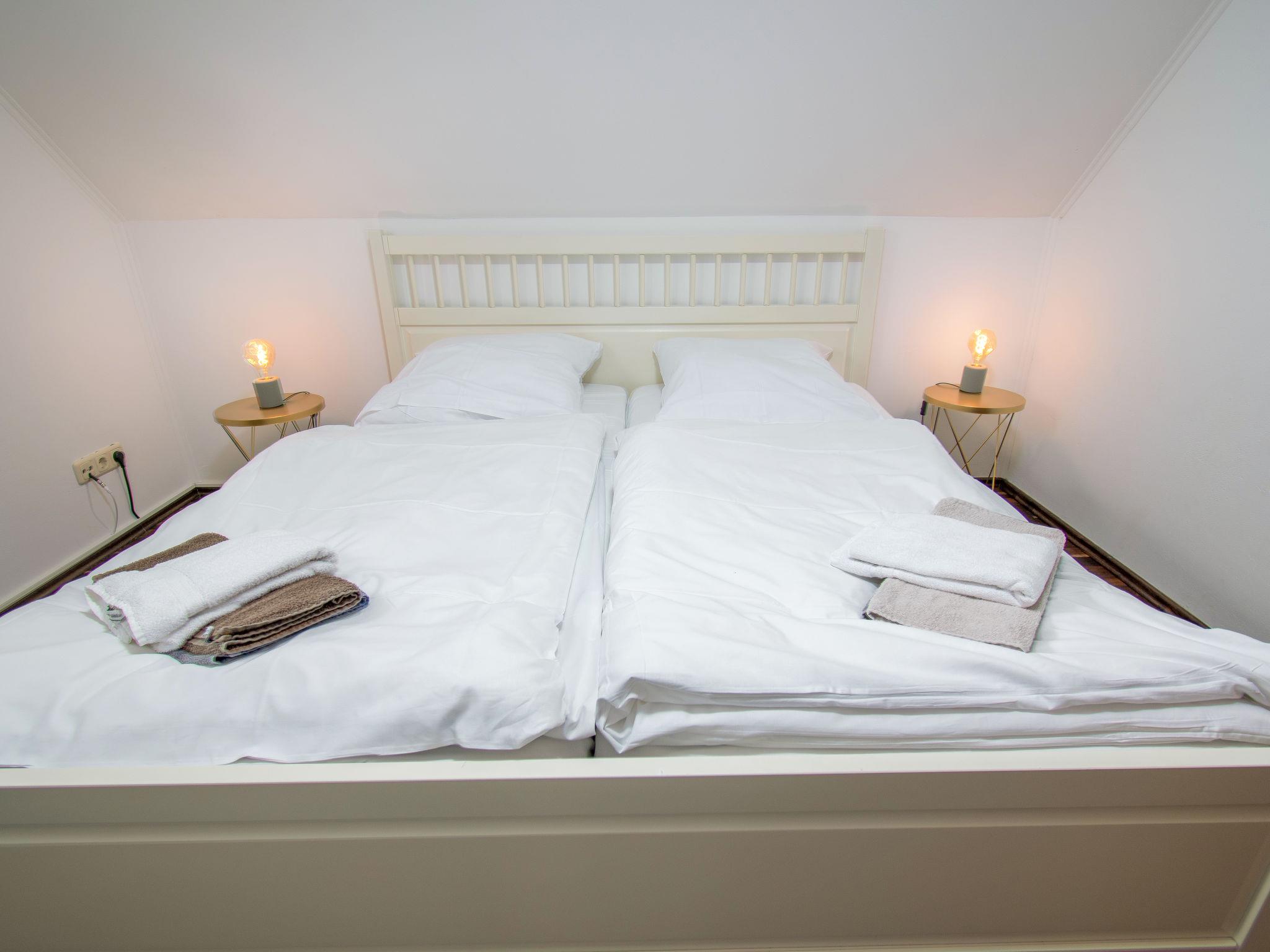 4-room house 120 m2 on 2 levels, on the ground floor. Modern and tasteful furnishings: living room with Scandinavian wood stove and satellite TV (flat screen), radio and hi-fi system. Exit to the terrace. Kitchen (oven, dishwasher, 4 ceramic glass hob hotplates, toaster, kettle, microwave, electric coffee machine) with dining table. Exit to the terrace. Sep. WC. Upper floor: 1 room with Dressing room with 1 double bed (180 cm, length 200 cm), satellite TV (flat screen). 1 room with 1 double bed (2 x 90 cm, length 200 cm), satellite TV (flat screen). 1 room with 2 beds (90 cm, length 200 cm). Shower/WC. 2 terraces. Terrace furniture, barbecue (portable). Facilities: washing machine, children's high chair (extra), hair dryer, logs (extra). Internet (WiFi, free). Please note: non-smoking house. Smoke alarm. Beach chair in the garden.