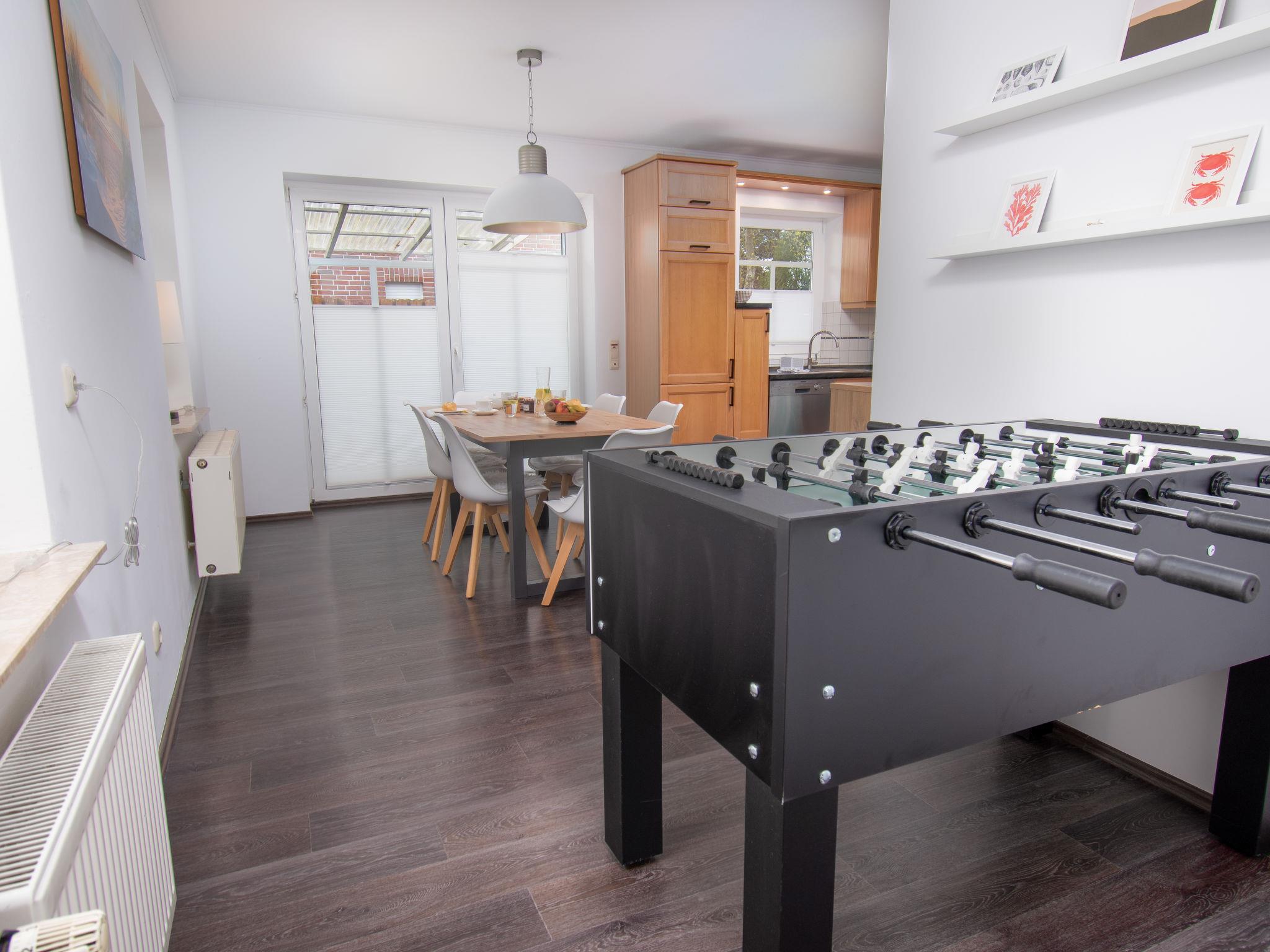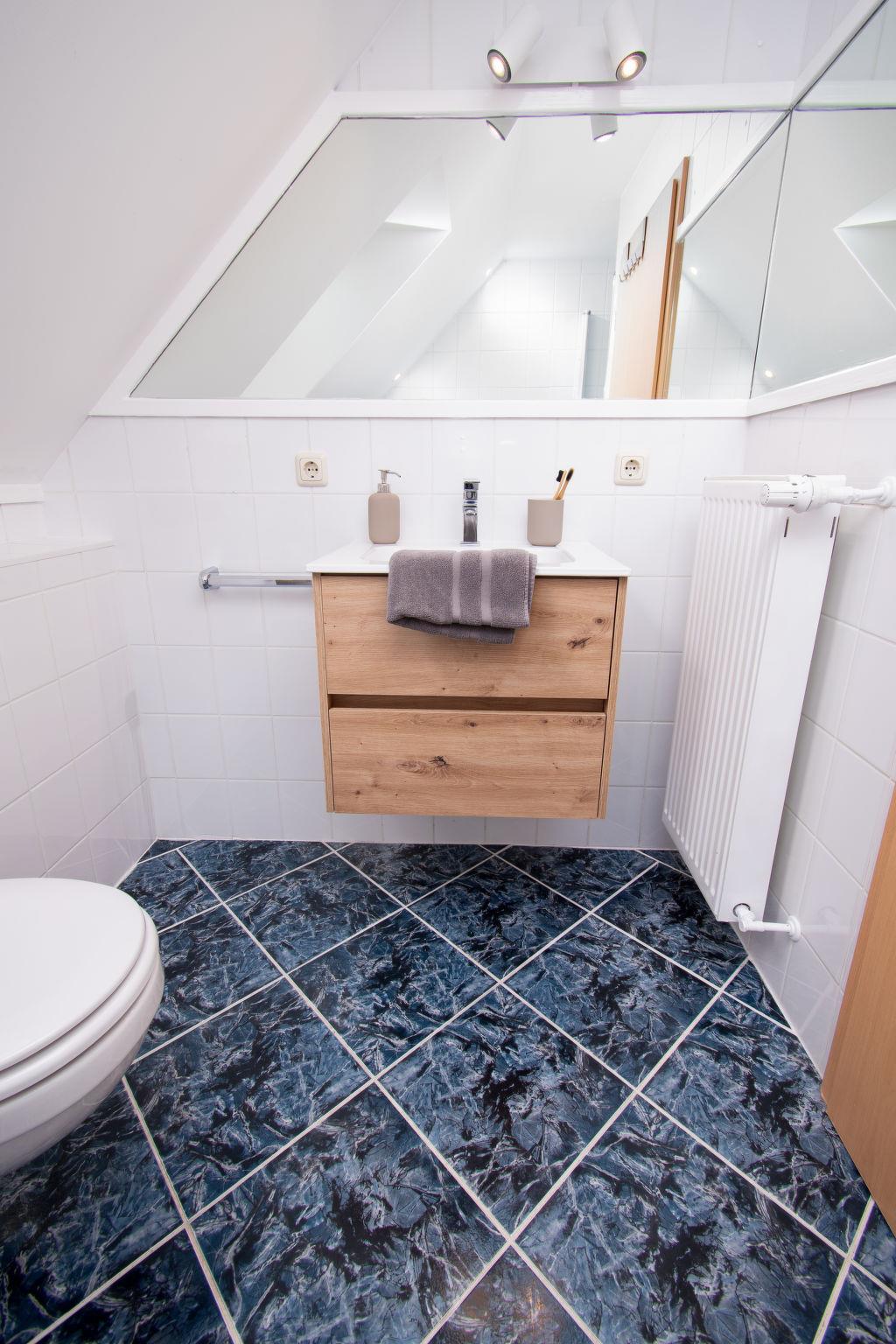 Single-family house "Kiek in". On the outskirts, 2 km from the centre of Norden, 3.8 km from the sea, 5 km from the beach. Private: large garden with lawn and wildlife garden. In the house: storage room for bicycles, central heating system. Parking (for 3 cars) at the house. Shop 2.4 km, grocery 2.4 km, supermarket 2.4 km, bakery 1.4 km, café 2.4 km, bus stop 500 m, railway station "Norddeich" 3.5 km, ferry 3.8 km, sandy beach 5 km, outdoor swimming pool 12.8 km, indoor swimming pool 1.4 km. Golf course (18 hole) 7 km, surf school 4.1 km, minigolf 3.7 km.