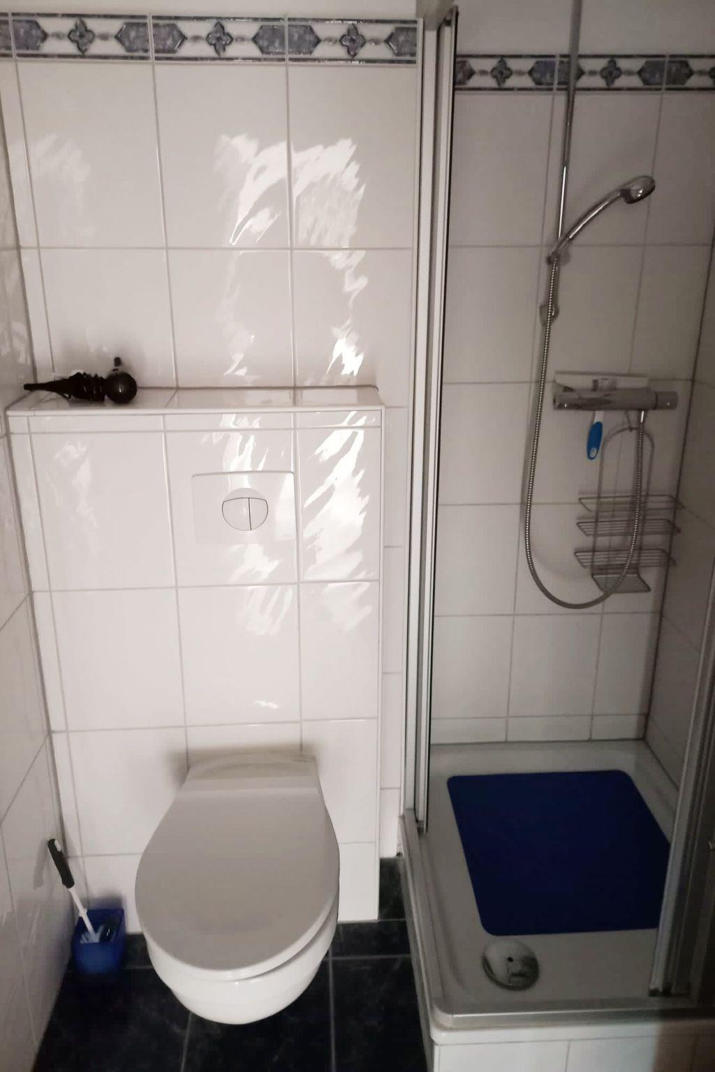 The flat (approx. 25 m²) with a direct view of the dyke consists of a living room/bedroom, kitchenette, hallway, shower room and balcony. There you have sun all day until evening. There is also an additional room outside the flat with another single bed. This room can be locked and is located directly opposite the flat door on the other side of the public corridor. You can spend the night there as well as safely store your luggage.