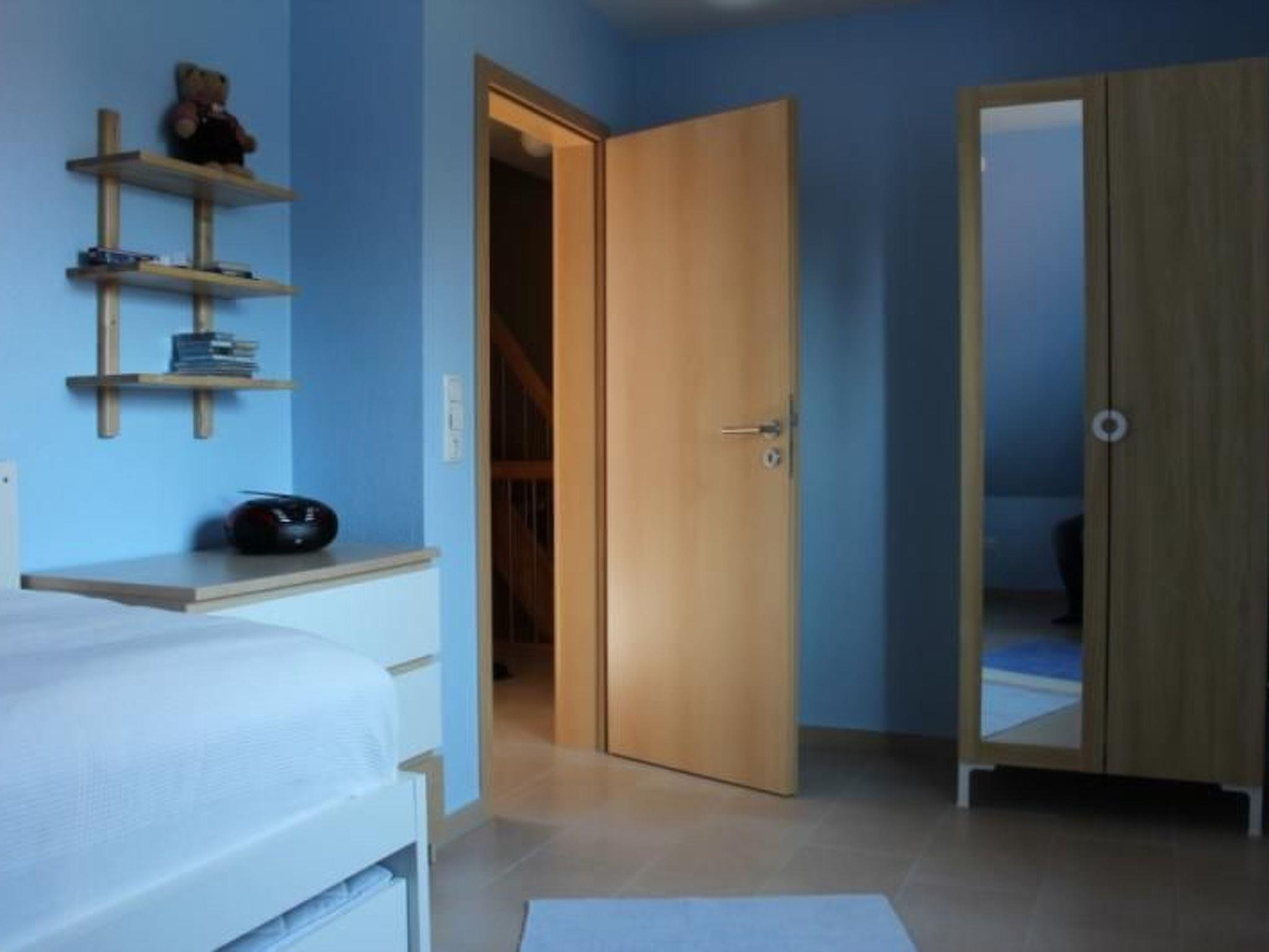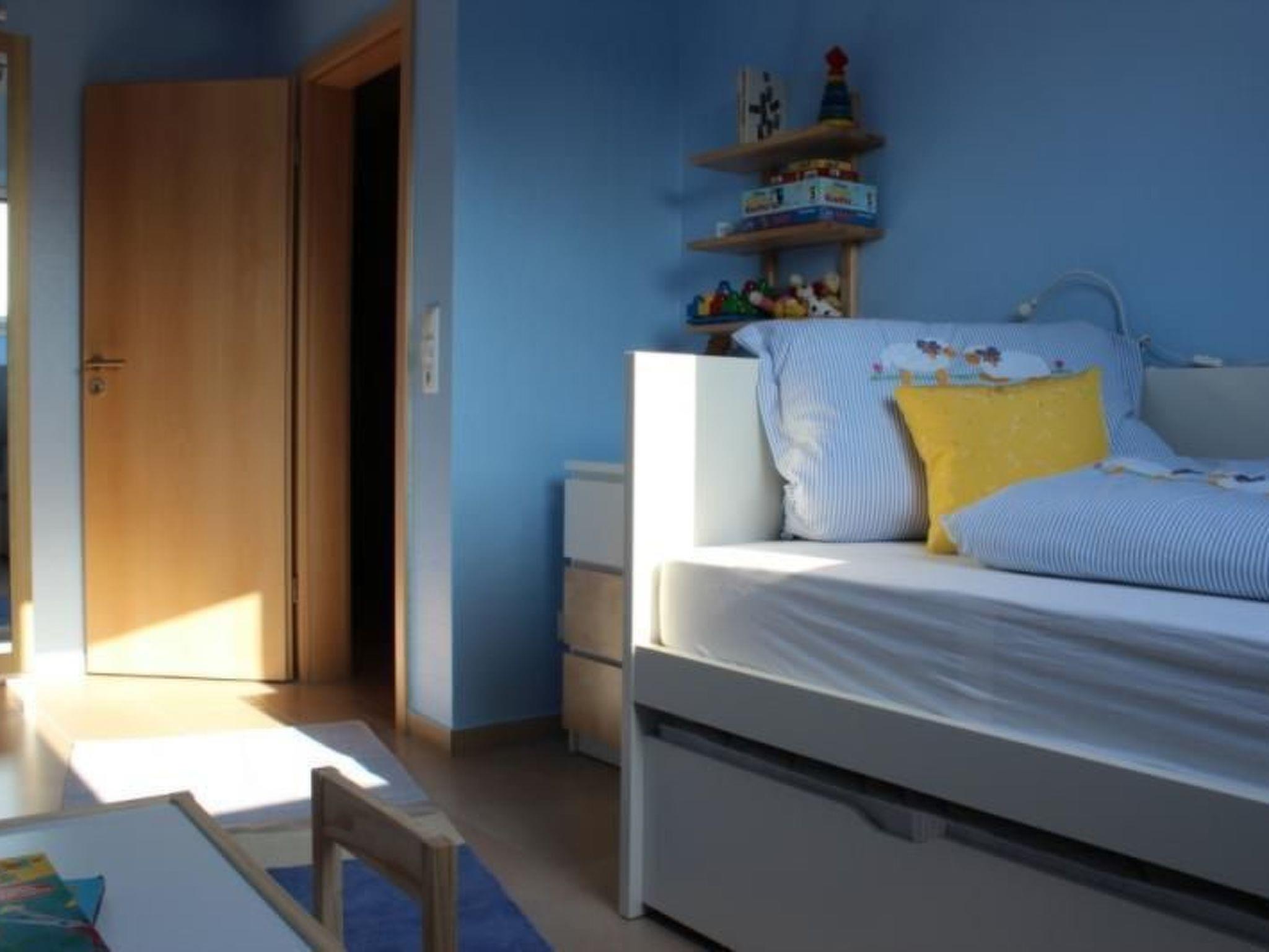 The landlord would like to offer other families with children the opportunity to spend a lovely holiday in cosy and comfortable surroundings, perhaps with grandma and grandpa along for the ride. That's why the semi-detached holiday home offers enough space for up to eight people in four bedrooms over an area of approx. 115 m², with furnishings that also offer a place to retreat to during the day - for example in rainy weather. The living room offers plenty of space for the whole family and the kitchen is spacious and fully equipped. Special attention is paid to the children, because experience has shown that if the children are happy and relaxed, the parents are also really on holiday! That's why the children's rooms are cheerfully furnished, there is a children's table and chairs, and a basic stock of games, books, colouring materials, audio games etc. is available. On the ground floor there is a vestibule with cloakroom, a spacious kitchen, a bathroom with shower, a large living room and the sunny south-facing terrace with garden access. On the first floor there are three bedrooms, one with a double bed and two with tandem beds, as well as the spacious, second bright bathroom. A travel cot is also available. The fourth bedroom with a double bed and sitting area is located in the large, cosy attic. Please also see the photos. The landlord has furnished the house very personally and cosily. The entire ground floor and first floor are tiled and the ground floor has underfloor heating. The loft has laminate flooring. The house is suitable for allergy sufferers, i.e. wipeable floors throughout the house and bedding for allergy sufferers.