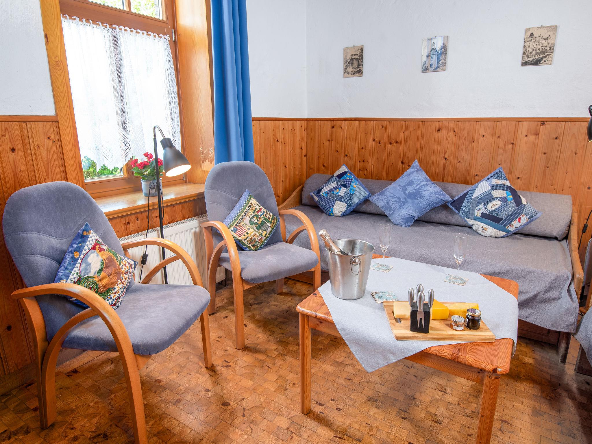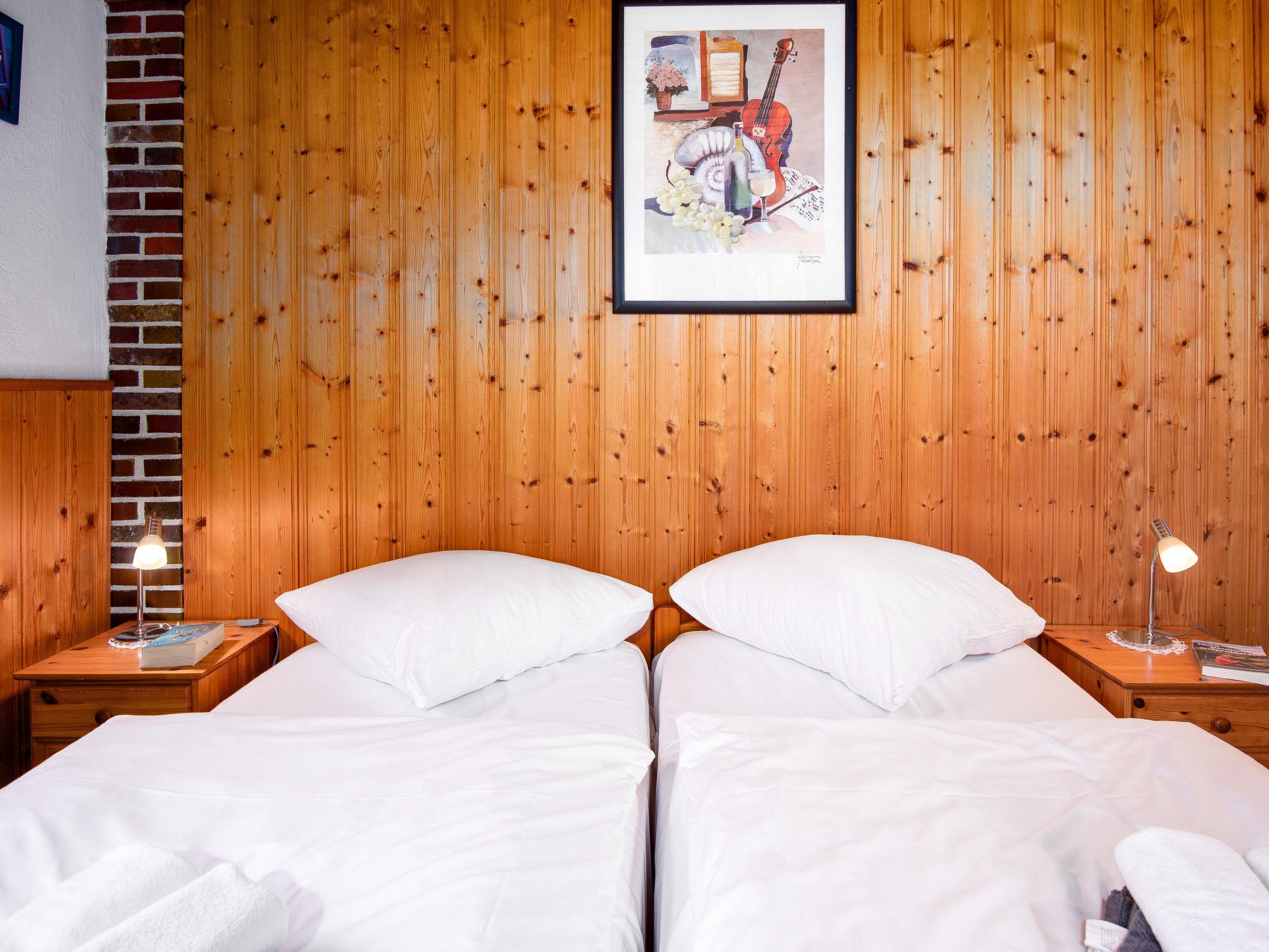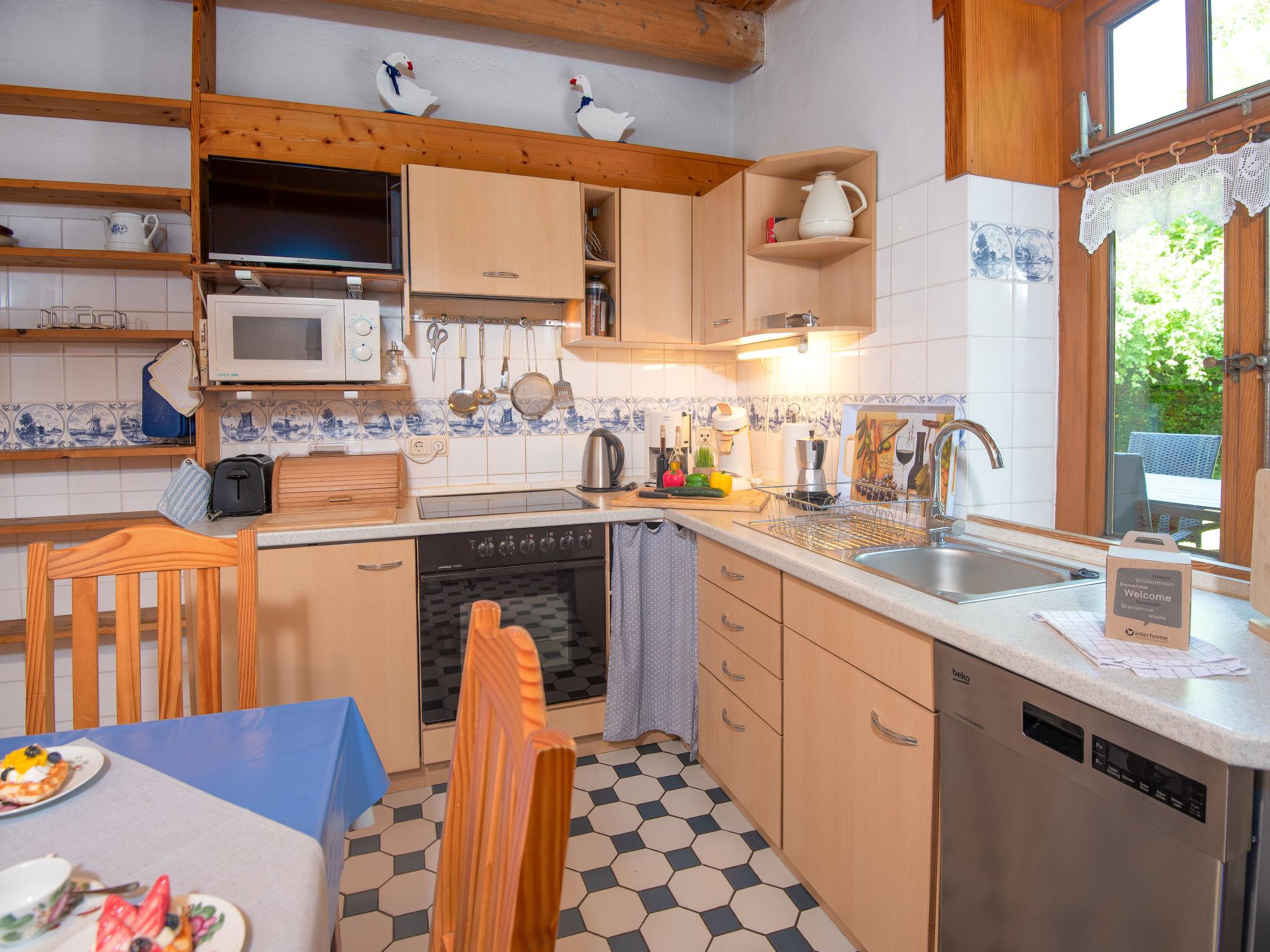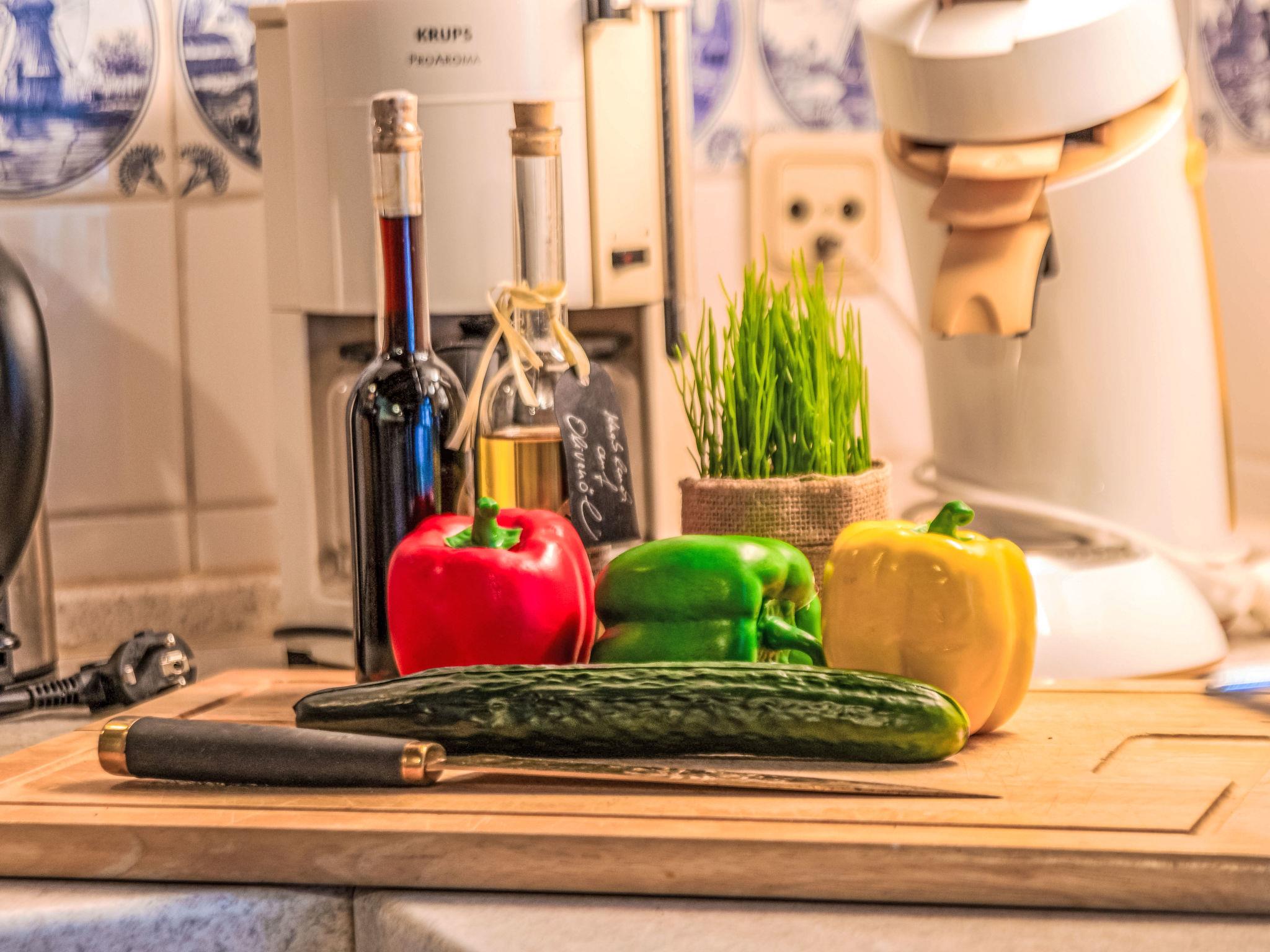 2-room apartment 50 m2, on the ground floor. Cosy furnishings: living/dining room 14 m2 with 2 sofabeds (90 cm, length 200 cm), satellite TV (flat screen), radio, CD-player and DVD. 1 room 11 m2 with 1 double bed (2 x 90 cm, length 200 cm). Kitchen (4 hot plates, oven, dishwasher, toaster, kettle, microwave, electric coffee machine) with dining table and satellite TV. Shower/WC, sep. WC. Terrace, patio. Terrace furniture, barbecue, deck chairs. Facilities: children's high chair (extra). Internet (WiFi, free). Please note: non-smokers only. Smoke alarm.