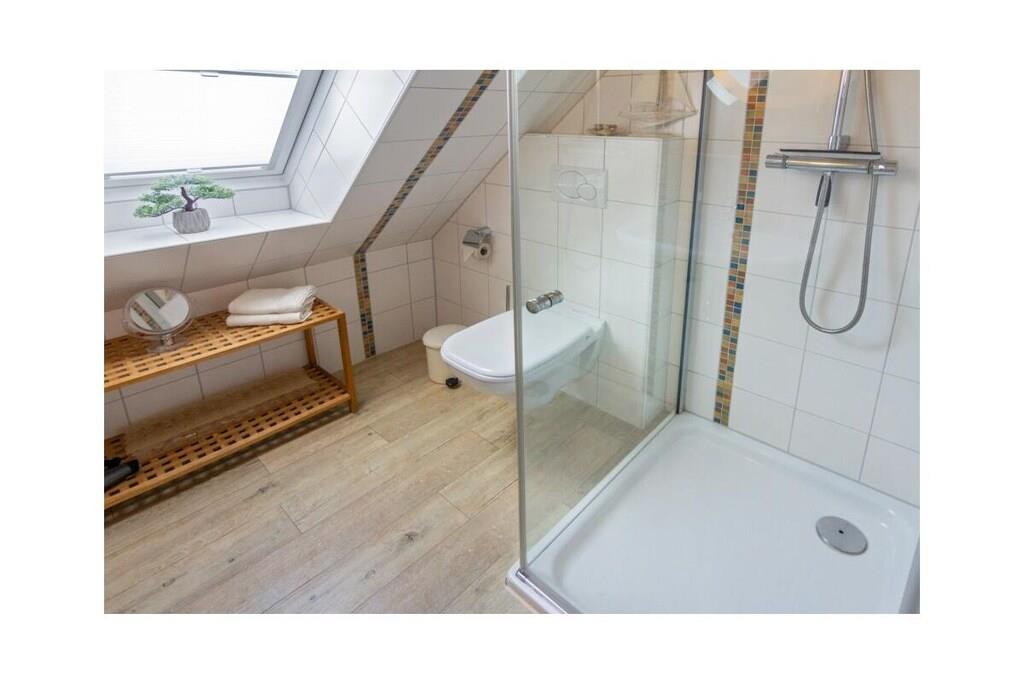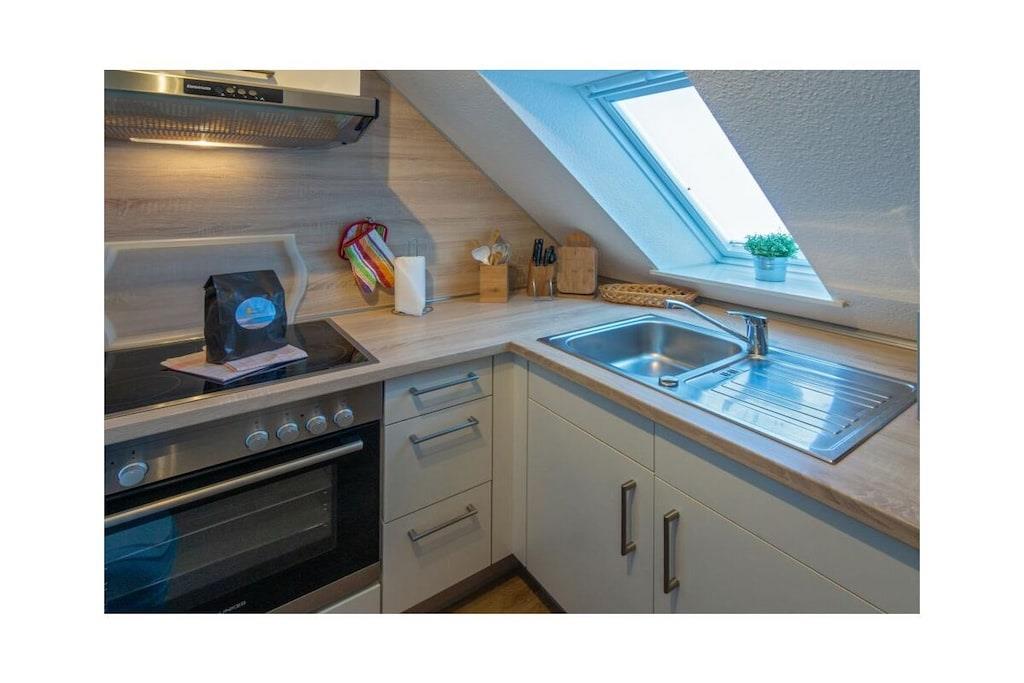 Holiday Apartment Seestern Schonerweg 1 The modern 35-square-meter "Seestern" apartment in Norden-Norddeich offers ideal accommodation for a relaxing holiday on the North Sea coast. The apartment is comfortably furnished and features numerous amenities. It is located by the sea, providing a refreshing breeze. The beach is within walking distance and invites you to take long walks and spend relaxing hours by the water. Here you can enjoy the peace and quiet and listen to the sound of the waves. The living area features a comfortable sofa with two armchairs and a dining table. Internet, Wi-Fi, a TV, a radio, a DVD player, books, and games are available for your entertainment. The separate kitchen is equipped with a ceramic hob, oven, freezer, refrigerator, espresso machine, microwave, coffee maker, kettle, blender, toaster, egg cooker, as well as dishes, cutlery, and spices. The bathroom has a shower, toilet, hairdryer, sink, vanity mirror, mirror, and a window. The storage room includes an iron and ironing board, a clothes rack, a fire alarm, a vacuum cleaner, and a first-aid kit. A wardrobe with a shoe rack and a full-length mirror is also available. The bedroom has two single beds with high-quality, comfortable mattresses, as well as two bedside tables and a wardrobe. A lockable shed, shared by two apartments, offers a charging station for e-bikes and bicycle storage. The apartment also includes a lockable shed, shared by two apartments. It offers a charging station for e-bikes and bicycle storage. Experience unforgettable days on the North Sea and be enchanted by the unique atmosphere. The "Seestern" holiday apartment offers everything you need for a comfortable and relaxing vacation. For a worry-free start to your vacation, book our linen package. This includes bed linen, towels, bath mats, tea towels, and a service set (toilet paper, trash bags, dish brush, cleaning cloths, and other small helpers) for a carefree start to your vacation.