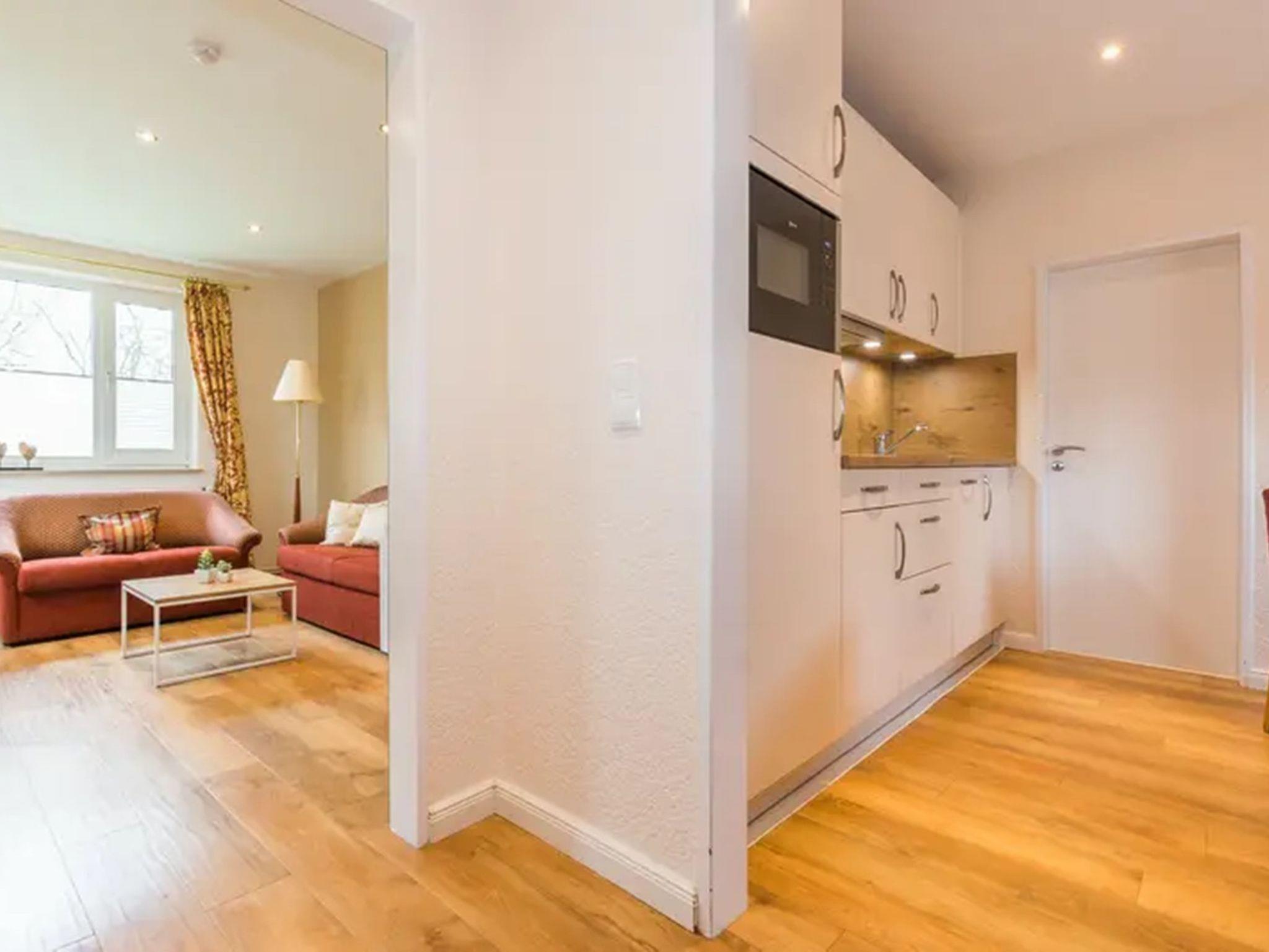 Es verfügt über ein Schlafzimmer, ein Wohnzimmer (mit der Möglichkeit zur Aufbettung), ein Badezimmer sowie eine Küche.