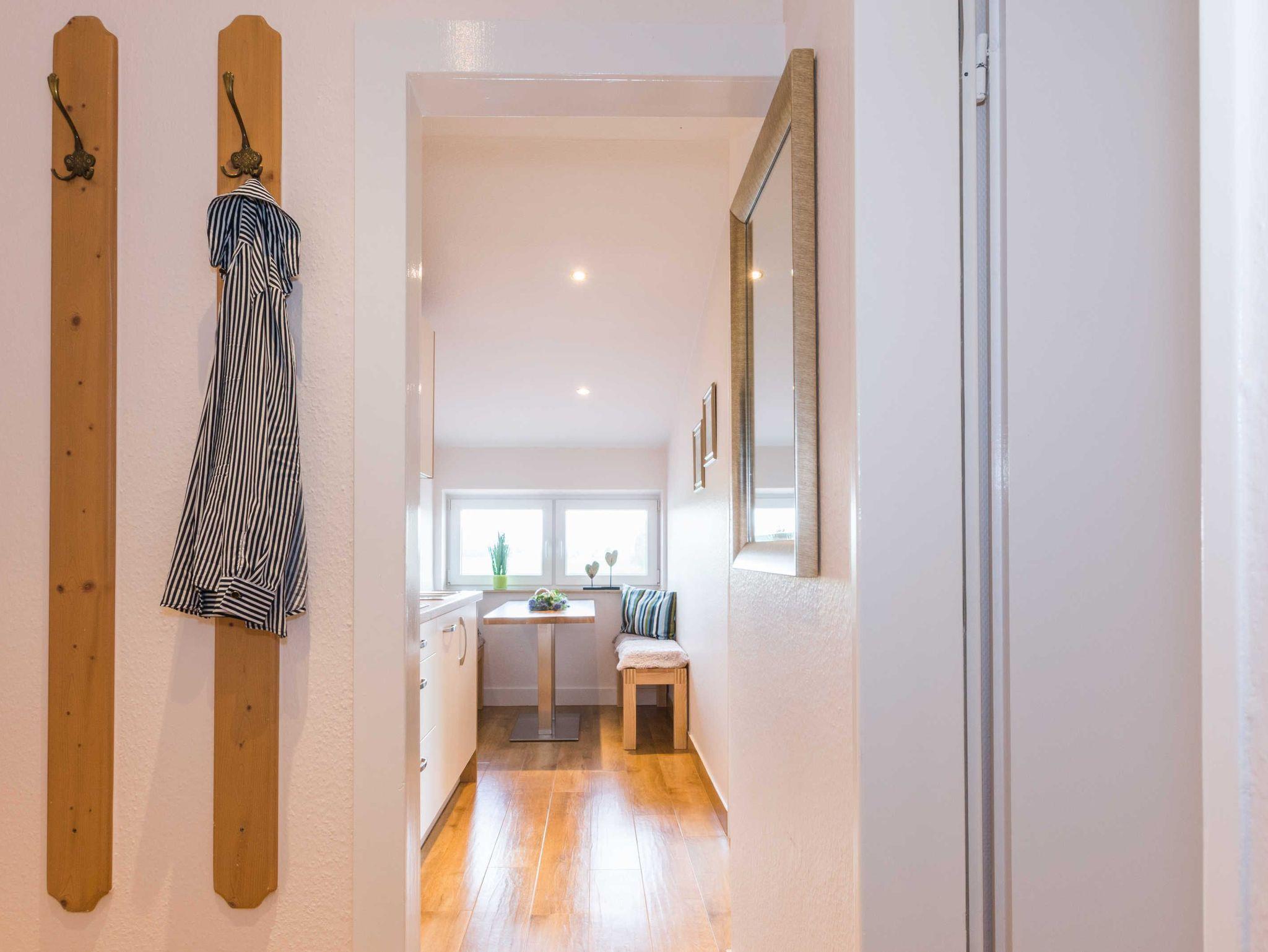 Es verfüget über ein Schlafzimmer, ein Wohnzimmer (mit der Möglichkeit zur Aufbettung), ein Badezimmer sowie eine Küche bzw. Küchenzeile.