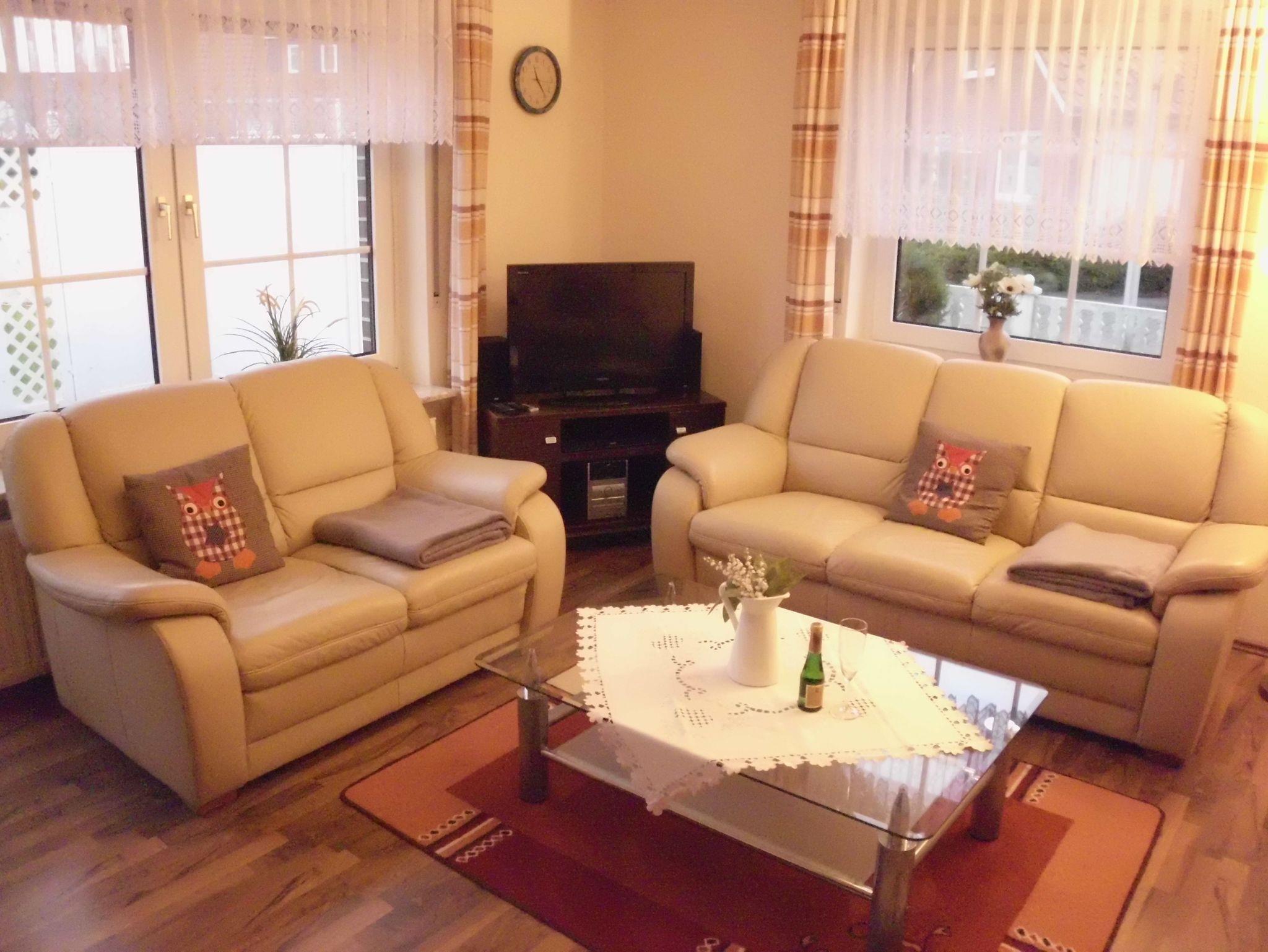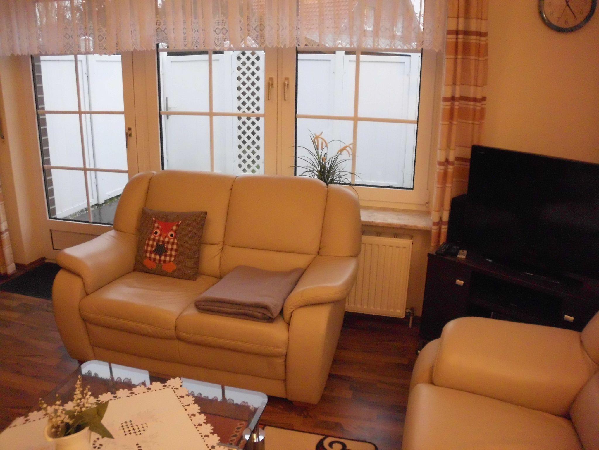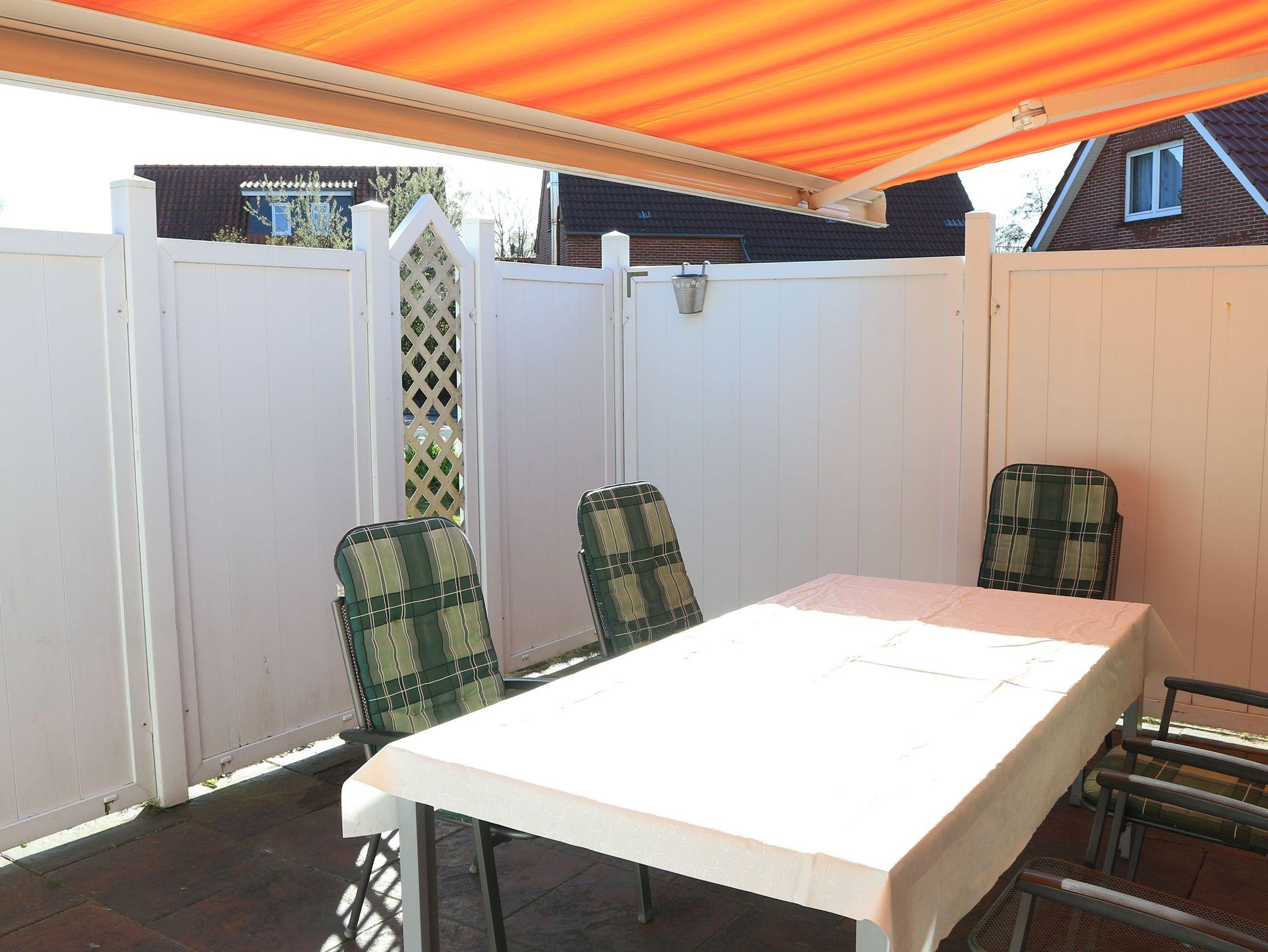 Im Erdgeschoss befindet sich das Wohnzimmer mit Sofagarnitur und Flachbild-TV, die Küche mit Eßplatz, Ceran-Kochfeld, Geschirrspüler, Backofen, Kühlschrank, Mikrowelle, Kaffeemaschine, Toaster sowie ausreichend Koch- und Eßgeschirr. Auch befindet sich ein Gäste-WC im Erdgeschoss. Über das Wohnzimmer gelangen Sie auf die vollständig sichtgeschützte und mit Gartenmöbeln, Sonnenliegen und Markise ausgestattete Terrasse.