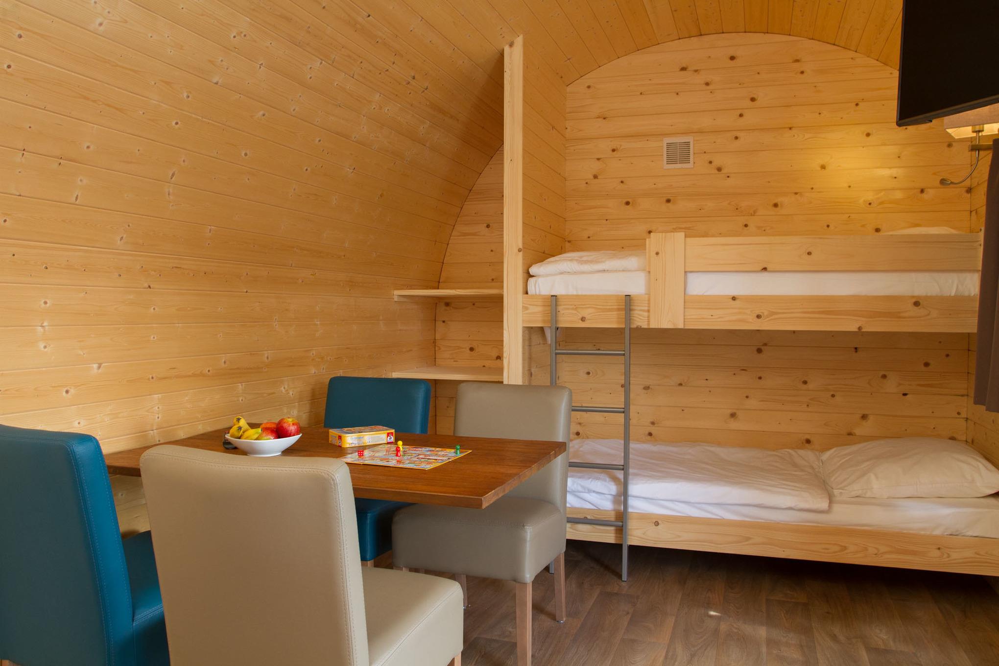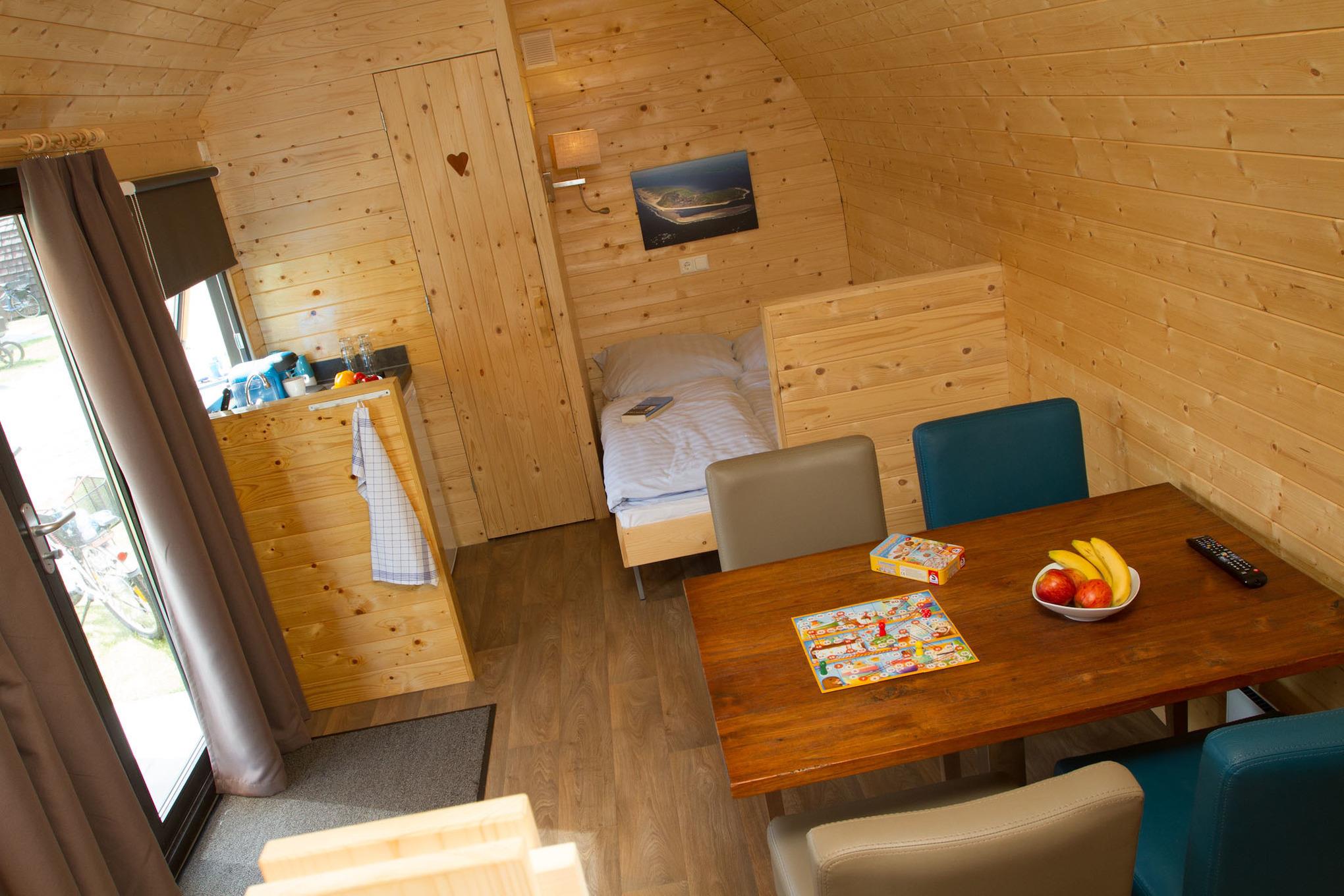 Klein und fein ist die Devise dieser kompakten Holzhäuser für den Urlaub. Das heißt in keinem Fall, dass man auf Komfort verzichten muss. In den Nordsee-Wellen findet man alles was den Urlaub angenehm gestalten lässt. Eine Toilette, ein kleines Waschbecken, Sitzgelegenheiten, zwei kleine Kochplatten, einen Fernseher, eine Kaffeemaschine und eine Elektroheizung. Weitere sanitäre Einrichtungen wie z. B. Duschen etc., finden Sie in kurzer Entfernung in unserem Sanitärgebäude. Die großen Nordseewellen bieten Platz für zwei oder bis zu vier (zwei Erwachsene, zwei Kinder) Personen. Diese Art der Unterkunft ist ideal für Aktivurlauber oder all jene, die den direkten Kontakt zur Natur suchen.