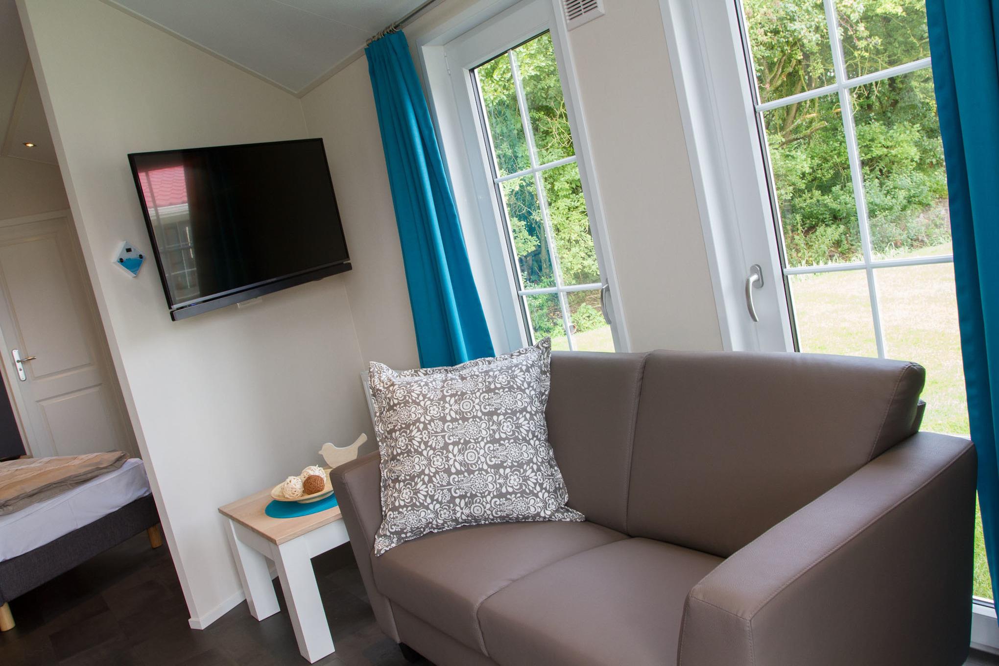 Sie sind rd. 37m² groß und bieten Platz für bis zu zwei Personen. Durch die große Terrassen-Schiebetür gelangen Sie in den Wohnraum mit Küche, Sitzgelegenheiten und Unterhaltungsmedien. In der Mitte ist ein Schlafzimmer mit Doppelbett und Unterhaltungsmedien. Hinter dem Schlafzimmer finden Sie ein großes Badezimmer inkl. Dusche, Badewanne mit Whirlpool-Funktion und Infrarot-Sauna. Im Außenbereich gibt es einen Stellplatz für Ihr Auto und die Terrasse lädt zum gemütlichen Verweilen ein.