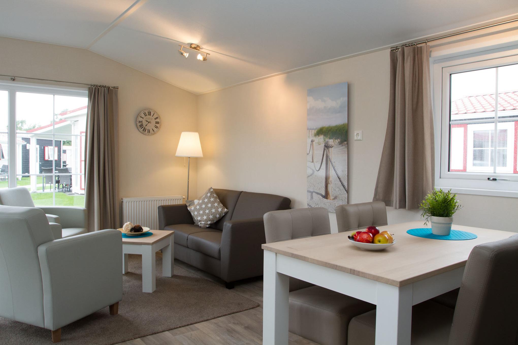 Ferienhaus mit rd. 45m² groß und Platz für bis zu vier Personen. 2 Schlafzimmer (eines mit Doppelbett und TV, eines mit zwei Einzelbetten), 1 Badezimmer. Großer Wohnraum mit Küche, Sitzgelegenheiten und Unterhaltungsmedien (TV). Im Außenbereich gibt es einen Stellplatz für Ihr Auto und die Terrasse lädt zum gemütlichen Verweilen ein. Das Restaurant im Nordseecamp Norddeich ist von Ende Oktober bis Mitte April geschlossen.