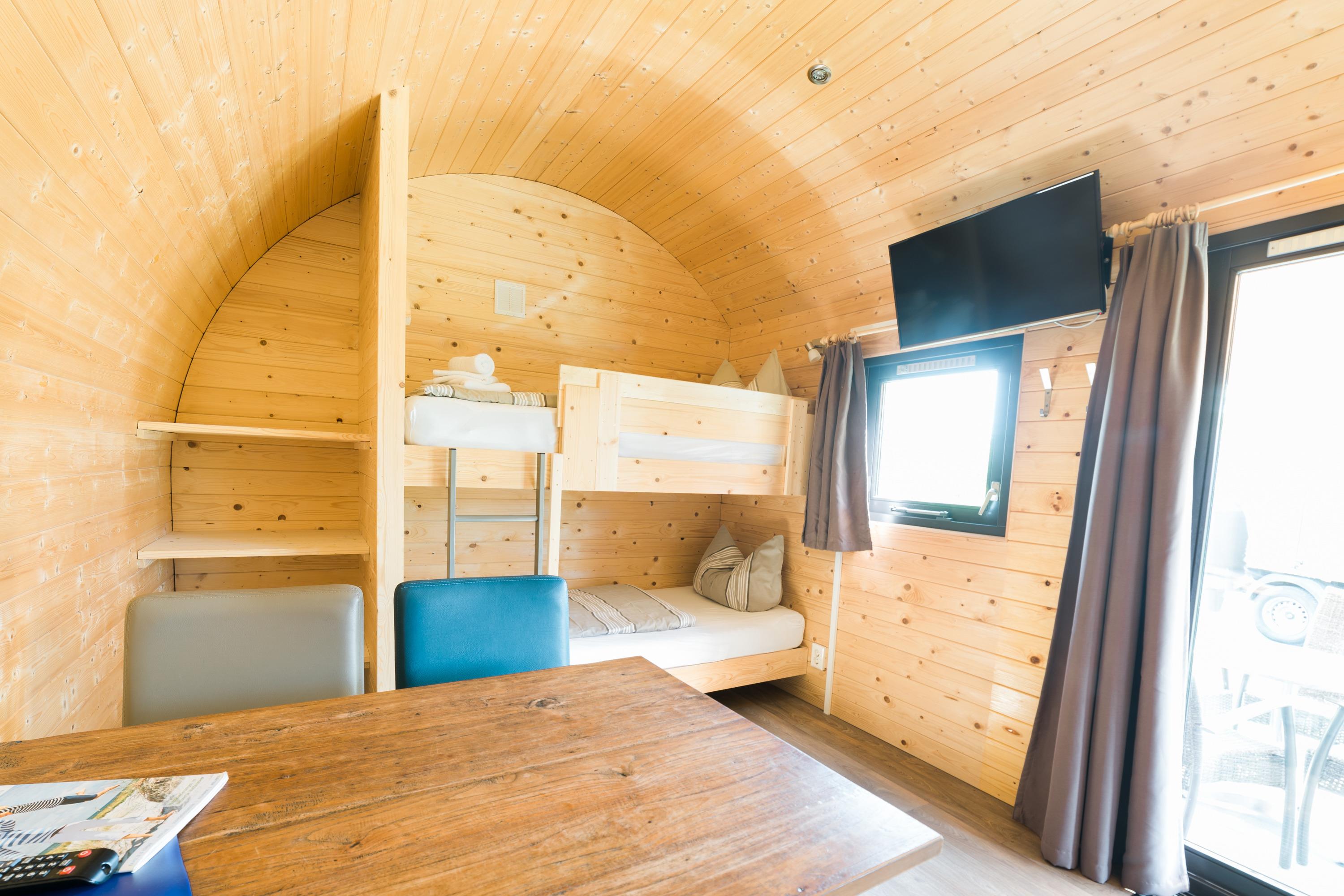 Klein und fein ist die Devise dieser kompakten Holzhäuser für den Urlaub. Das heißt in keinem Fall, dass man auf Komfort verzichten muss. In den Nordsee-Wellen findet man alles was den Urlaub angenehm gestalten lässt. Eine Toilette, ein kleines Waschbecken, Sitzgelegenheiten, zwei kleine Kochplatten, einen Fernseher, eine Kaffeekapselmaschine und eine Elektroheizung. Weitere sanitäre Einrichtungen wie z. B. Duschen etc., finden Sie in kurzer Entfernung in unserem Sanitärgebäude. Die großen Nordseewellen bieten Platz für zwei oder bis zu vier (zwei Erwachsene, zwei Kinder) Personen. Diese Art der Unterkunft ist ideal für Aktivurlauber oder all jene, die den direkten Kontakt zur Natur suchen.