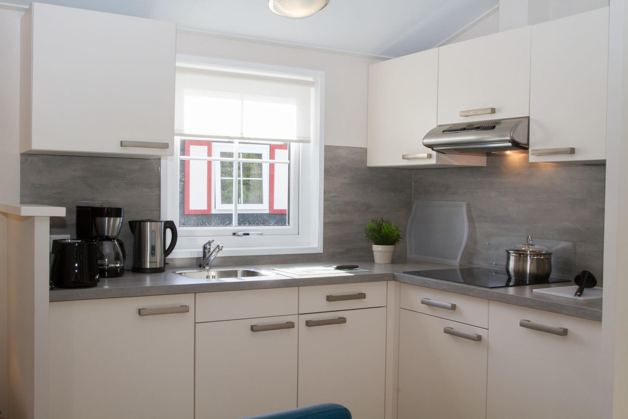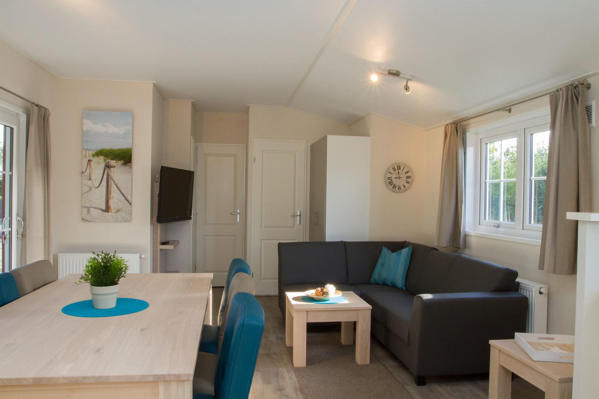 Ferienhaus mit rd. 50m² und Platz für bis zu sechs Personen. 3 Schlafzimmer (davon 2 mit TV und 1 mal Etagenbett), 2 Badezimmer. großer Wohnraum mit Küche, Sitzgelegenheiten und Unterhaltungsmedien (TV). Im Außenbereich gibt es einen Stellplatz für Ihr Auto und die Terrasse lädt zum gemütlichen Verweilen ein. Die Chalets befinden sich in einem eigenen Parkareal unseres Platzes mit eigener Zufahrt.