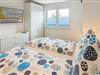 Das erste der beiden Schlafzimmer wurde mit einem großen Doppelbett (200x200cm) möbliert. Getrennte Matratzen und ein eigener Flachbildfernseher sorgen für zusätzlichen Komfort. Auch an ausreichend Stauraum wurde hier gedacht. Neben einem Schrank steht auch eine Kommode zur Verfügung.