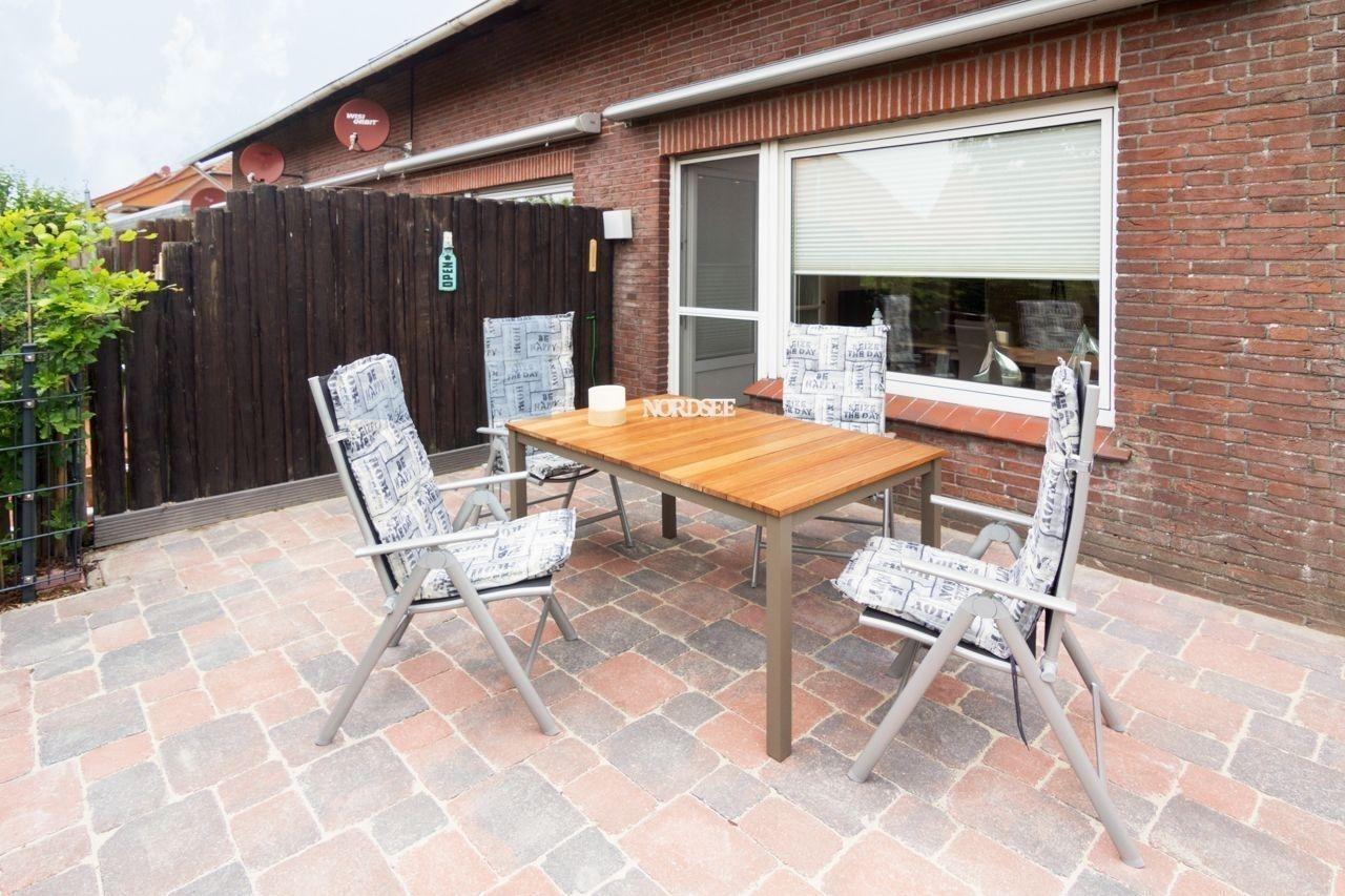 Die offen gestaltete Sonnen-Gartenterrasse ist nicht nur für Sonnenanbeter ein echtes Highlight. Hier können Sie nicht nur jederzeit an der frischen Luft entspannen (ganztägig Sonne), sondern auch Urlaubsmahlzeiten ganz einfach nach draußen verlegen. Eine große Markise sorgt bei Bedarf schnell für Schatten. Selbstverständlich wurde auch an eine ansprechende Möblierung gedacht: Neben einem Tisch stehen Ihnen auch vier Sitzmöglichkeiten zur Verfügung.