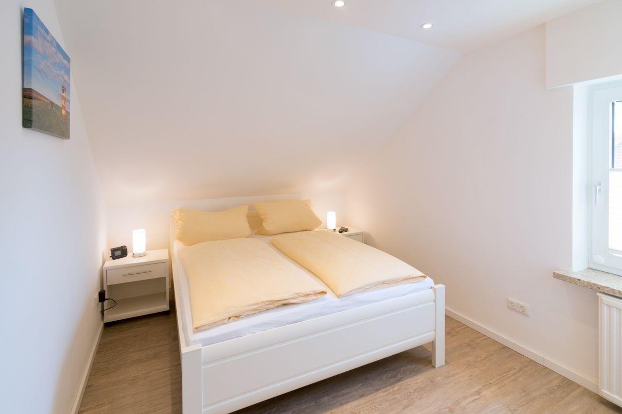 Direkt neben dem ersten Schlafraum gelegen lädt auch das zweite, etwas kleinere Schlafzimmer zum Träumen ein. Ebenfalls mit einem Doppelbett möbliert (160x200cm) wird die Ausstattung des Raumes durch eine Kommode und zwei Nachttische ergänzt. LED-Lampen, ein digitaler Funkwecker und ein weiterer Smart-TV (32'' mit DVD-Player) sorgen dafür, dass auch hier keine Wünsche offenbleiben.