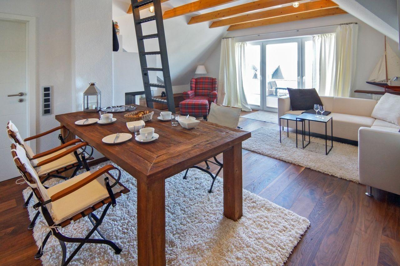 Exklusiven Wohnflair – selbst in den Ferienzeiten – gewährt diese elegante und doch gemütliche Penthouse-Wohnung im Herzen Norddeichs. Das exklusive Objekt bietet Platz für zwei Erwachsene sowie mitreisende Kinder.