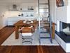 Das Apartment bietet einen loftartigen, großzügig geschnittenen Wohnbereich, der Funktionalität und Luxurösität in ansprechender Weise kombiniert. Wohn- und Essbereich sind dabei bewusst komfortabel gestaltet. Die exklusive Einbauküche der Marke „Bulthaupt" rundet die repräsentative offene Gestaltung des Lofts ab. Besonders exklusiv ist der Parkettfußboden aus Walnussholz, der ebenfalls einen sehr luxuriösen Charakter besitzt. Die breite Fensterfront sorgt für den perfekten Lichteinfall. Dank der modernen Fußbodenheizung ist zu jeder Jahreszeit Behaglichkeit garantiert. Darüber hinaus verfügt das Apartment auch über einen Kamin, in dem sich bei ungemütlicher Witterung schnell ein wärmendes Feuer entzünden lässt.