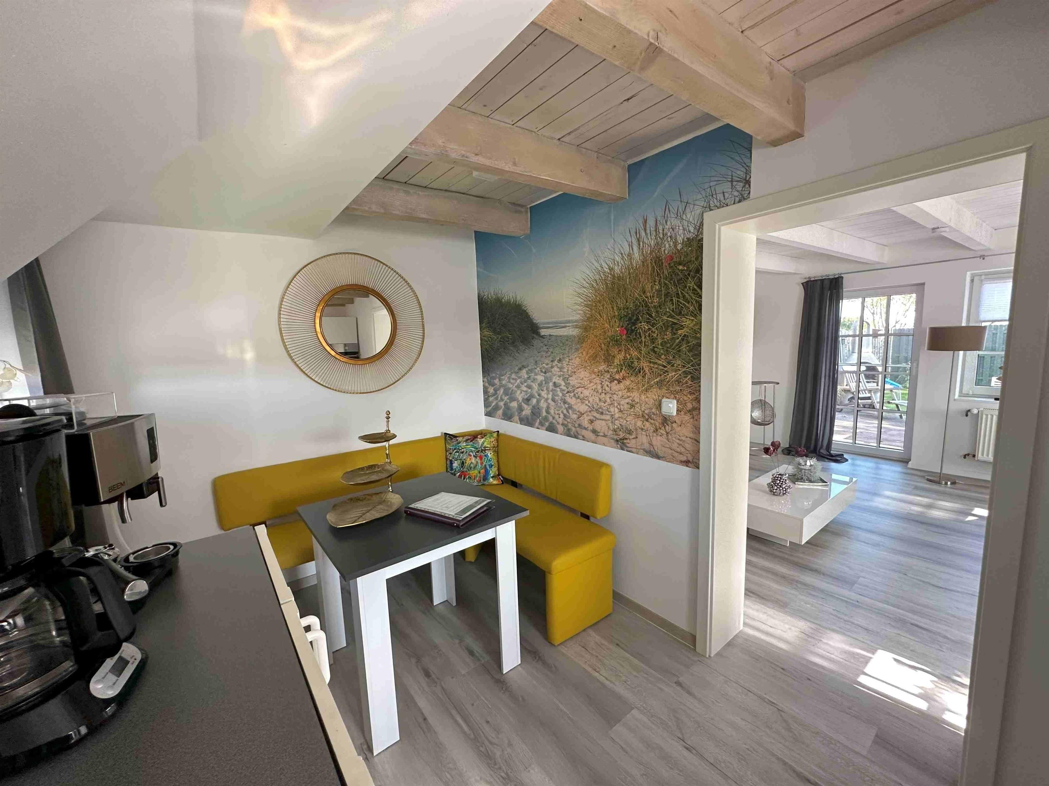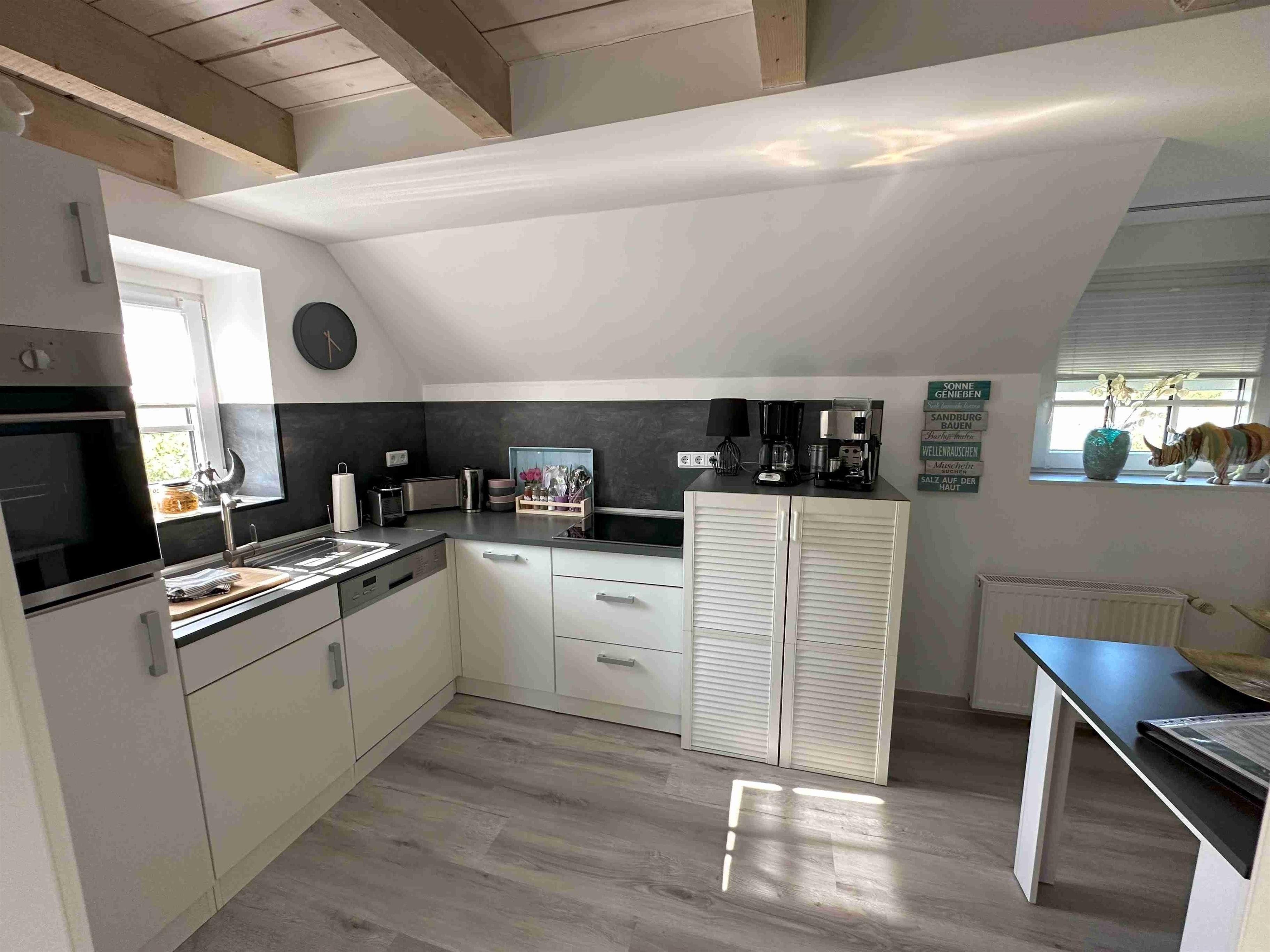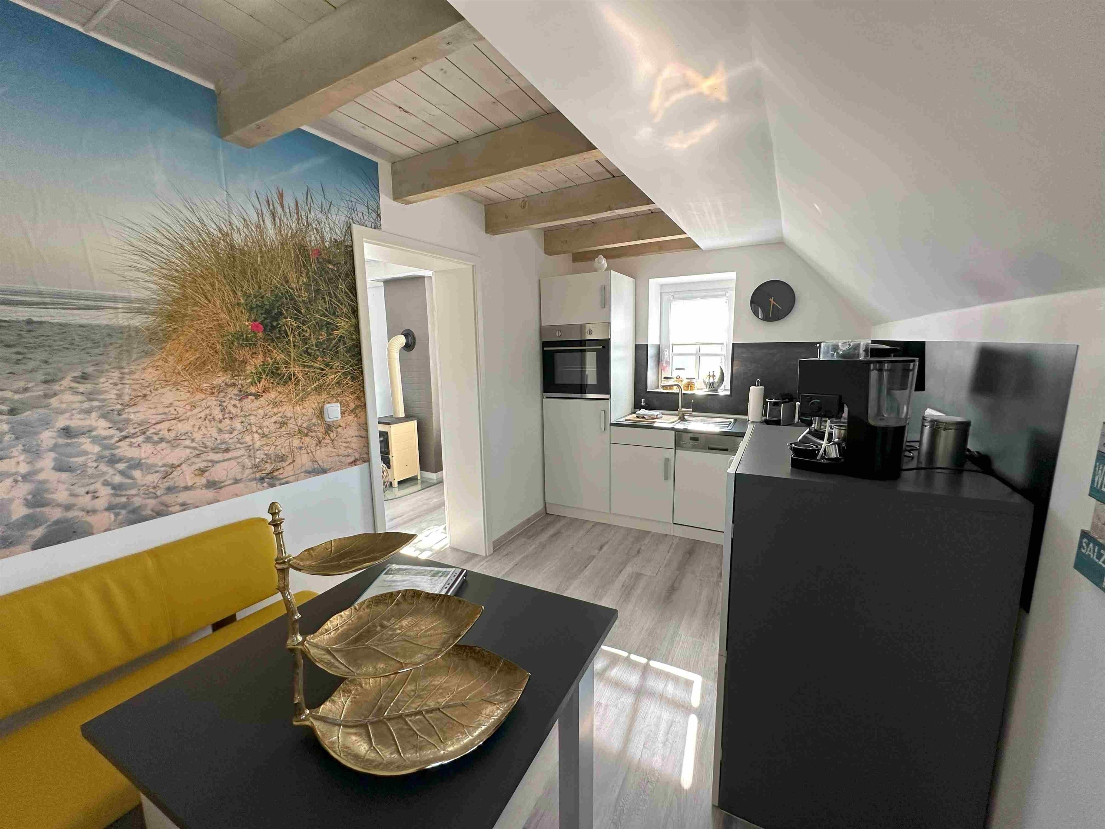 Die Doppelhaushälfte hat eine hübsche Küche mit Spülmaschine, Waschmaschine mit Trockner, Kühlschrank und Backofen. Eine Eckbank mit Blick aus dem Fenster Richtung Deich. Hier macht das Frühstücken richtig Spaß. Die Küche ist frisch ausgerüstet mit 3 Kaffeemaschinen, Toaster, Küchengeschirr etc. Das gemütliche und helle Wohnzimmer hat einen kleinen Kaminofen. (Holz bitte mitbringen) Im Wohnzimmer relaxen Sie auf der gemütliche Eckcouch. Von hier geht man auf die Holzterrasse. Hier gibt es einen kleinen Garten , einen hübschen Strandkorb, einen Grill und eine Gartentischgruppe. Das Bad hat eine bodentiefe Dusche und ist mit Handtüchern ausgestattet. Das Schlafzimmer hat ein großes Boxspringbett in 180x200cm , einen gemütlichen Ohrensessel und einen neuen Smart TV. Die am Objekt befindlichen zwei Fahrräder dürfen kostenlos mitbenutzt werden. Bis zum Deich sind es nur wenige Minuten. Dann erwartet einen der Blick auf die Nordsee und im Hintergrund Insel Norderney. Wir sind Ostfriesen und lieben Ostfriesland und die Küste. Mit unseren liebevoll eingerichteten Ferienwohnungen möchten wir Ihnen einen schönen Urlaub ermöglichen. Diese schöne Doppelhaushälfte in Deichnähe mit seinem kleinen Garten, der schönen Holzterrasse, dem kostenlosen Parkplatz am Haus und der hochwertigen Ausstattung hat alles was Ihnen einen tollen Aufenthalt an der ostfriesischen Küste ermöglicht. Sie liegt sehr nah am Deich, nah an Norddeich und dem Hafen. Alles ist mit dem Fahrrad leicht erreichbar. Hier können Sie die Weite und die Ruhe genießen. In der Wohnung wurde komplett alles erneuert und renoviert. Ostermarsch liegt zwischen Norddeich und Neßmersiel. Hübsche Fahrradwege direkt am Deich laden zu Touren ein. Zwei Fahrräder sind auch vorhanden und dürfen mitbenutzt werden. Unsere Ferienwohnung "Huus an`t Diek" ist ideal geeignet für zwei Gäste.