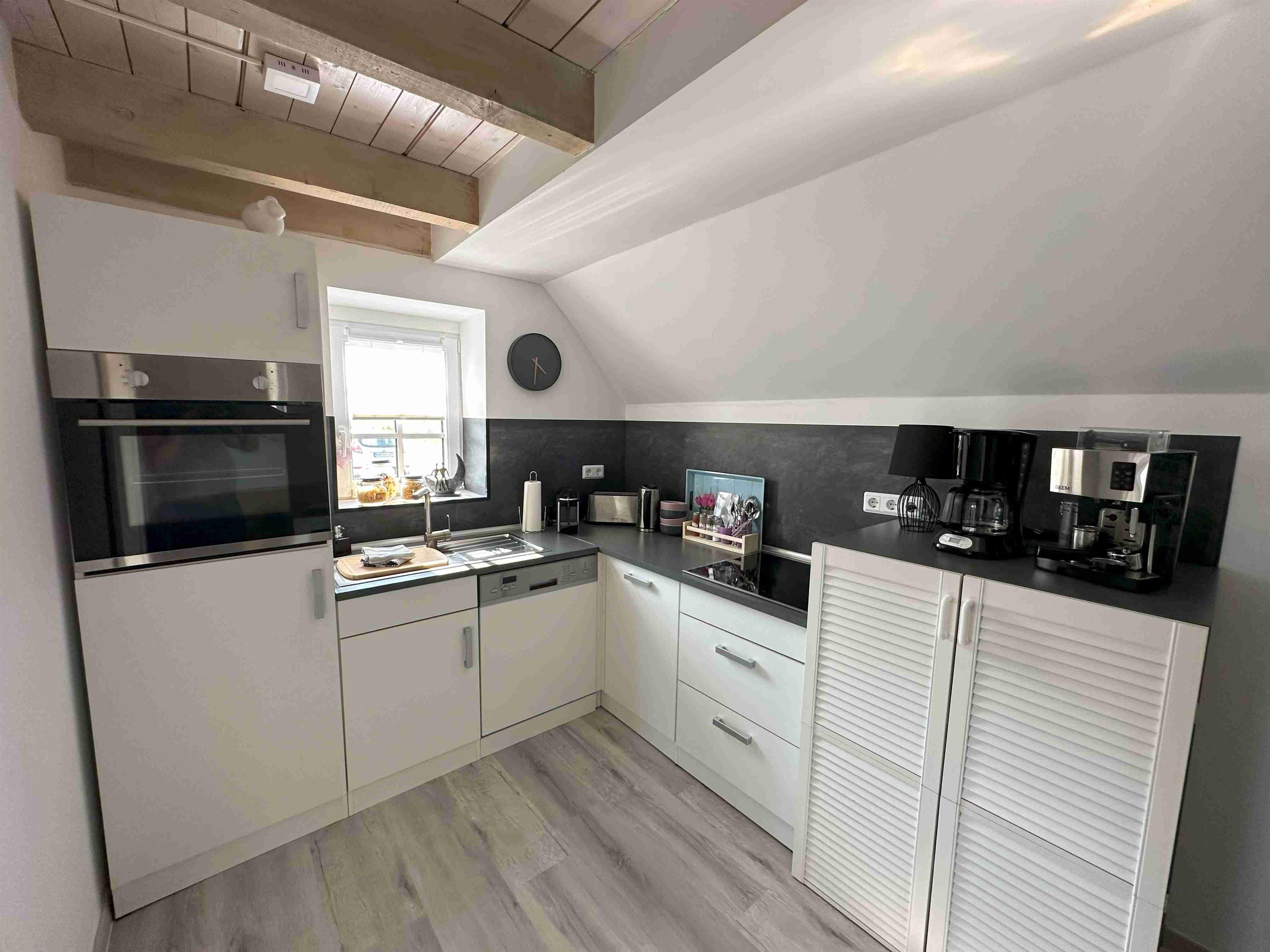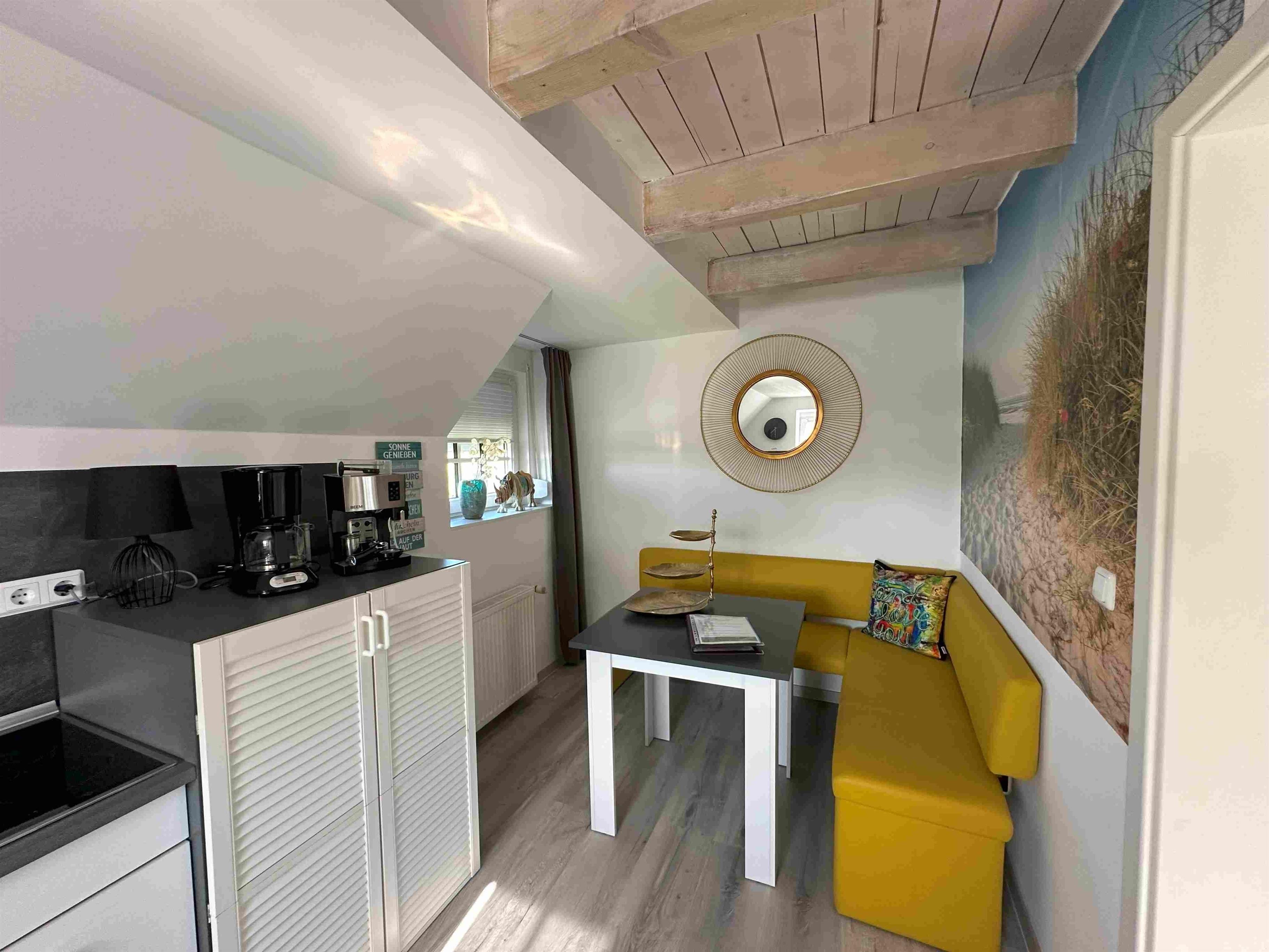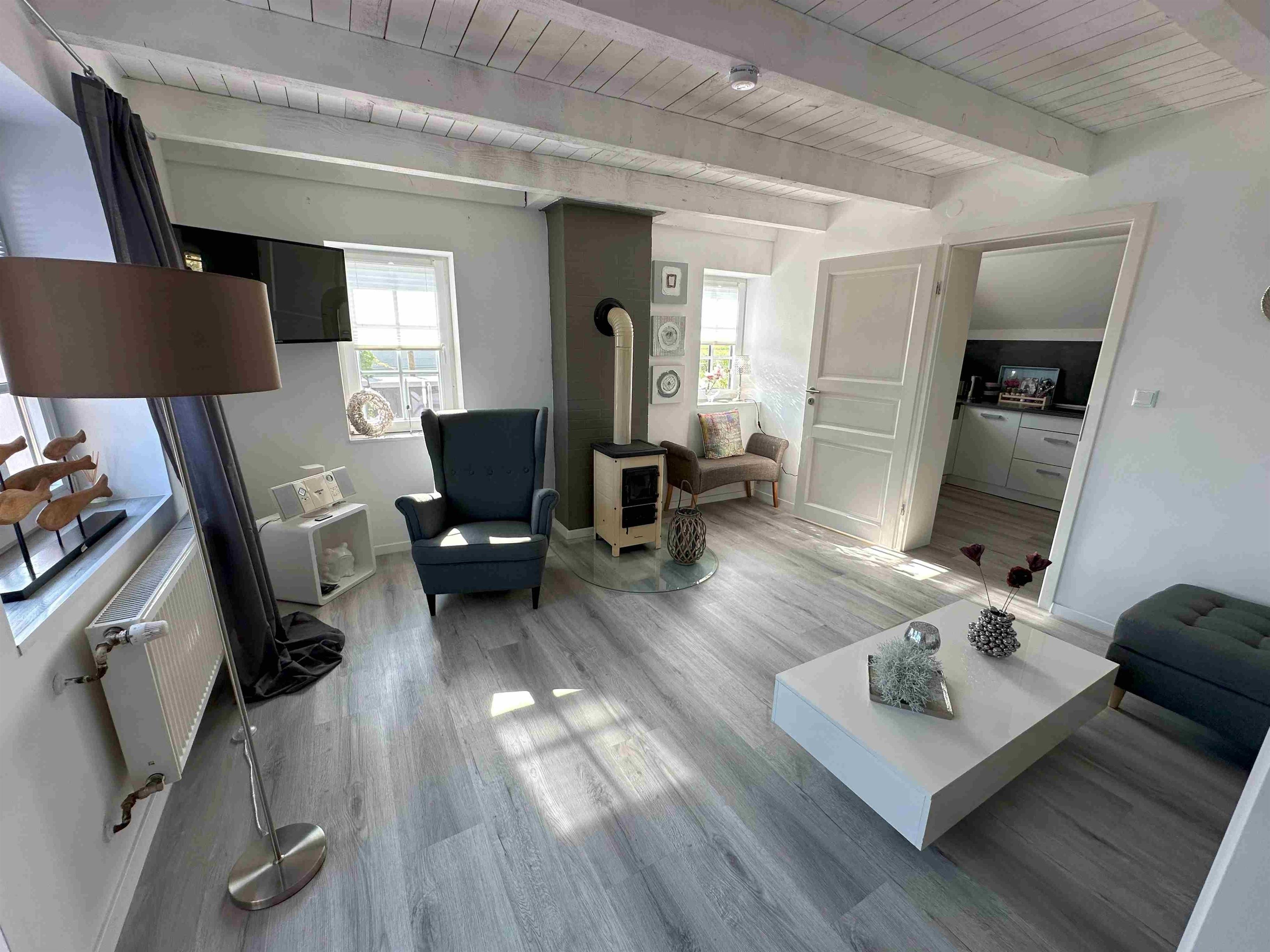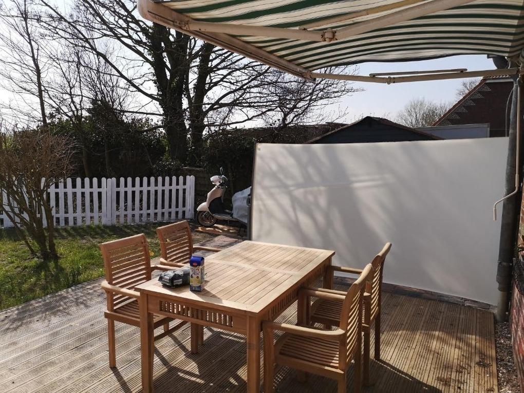 Die Doppelhaushälfte hat eine hübsche Küche mit Spülmaschine, Waschmaschine mit Trockner, Kühlschrank und Backofen. Eine Eckbank mit Blick aus dem Fenster Richtung Deich. Hier macht das Frühstücken richtig Spaß. Die Küche ist frisch ausgerüstet mit 3 Kaffeemaschinen, Toaster, Küchengeschirr etc. Das gemütliche und helle Wohnzimmer hat einen kleinen Kaminofen. (Holz bitte mitbringen) Im Wohnzimmer relaxen Sie auf der gemütliche Eckcouch. Von hier geht man auf die Holzterrasse. Hier gibt es einen kleinen Garten , einen hübschen Strandkorb, einen Grill und eine Gartentischgruppe. Das Bad hat eine bodentiefe Dusche und ist mit Handtüchern ausgestattet. Das Schlafzimmer hat ein großes Boxspringbett in 180x200cm , einen gemütlichen Ohrensessel und einen neuen Smart TV. Die am Objekt befindlichen zwei Fahrräder dürfen kostenlos mitbenutzt werden. Bis zum Deich sind es nur wenige Minuten. Dann erwartet einen der Blick auf die Nordsee und im Hintergrund Insel Norderney. Wir sind Ostfriesen und lieben Ostfriesland und die Küste. Mit unseren liebevoll eingerichteten Ferienwohnungen möchten wir Ihnen einen schönen Urlaub ermöglichen. Diese schöne Doppelhaushälfte in Deichnähe mit seinem kleinen Garten, der schönen Holzterrasse, dem kostenlosen Parkplatz am Haus und der hochwertigen Ausstattung hat alles was Ihnen einen tollen Aufenthalt an der ostfriesischen Küste ermöglicht. Sie liegt sehr nah am Deich, nah an Norddeich und dem Hafen. Alles ist mit dem Fahrrad leicht erreichbar. Hier können Sie die Weite und die Ruhe genießen. In der Wohnung wurde komplett alles erneuert und renoviert. Ostermarsch liegt zwischen Norddeich und Neßmersiel. Hübsche Fahrradwege direkt am Deich laden zu Touren ein. Zwei Fahrräder sind auch vorhanden und dürfen mitbenutzt werden. Unsere Ferienwohnung "Huus an`t Diek" ist ideal geeignet für zwei Gäste.