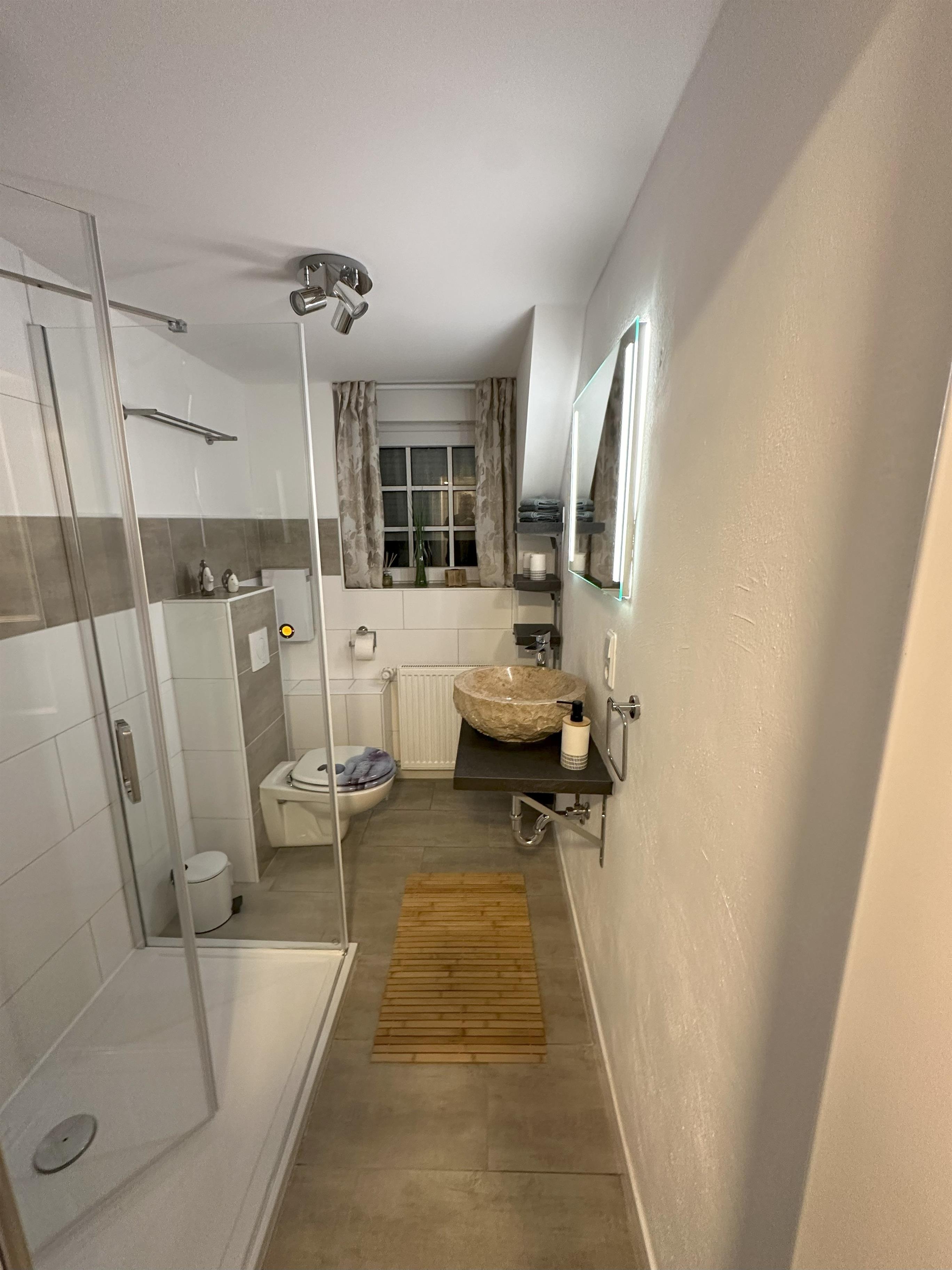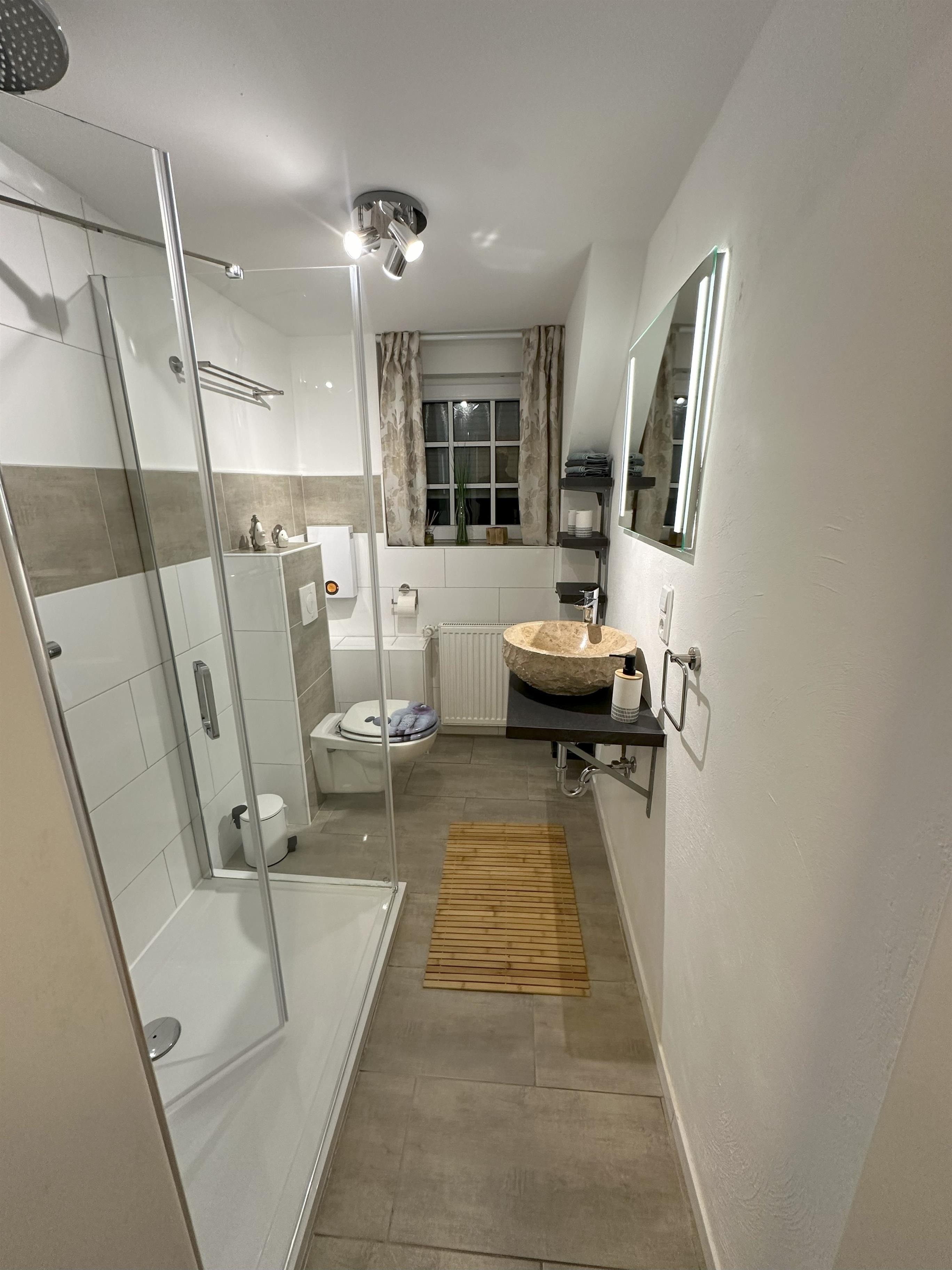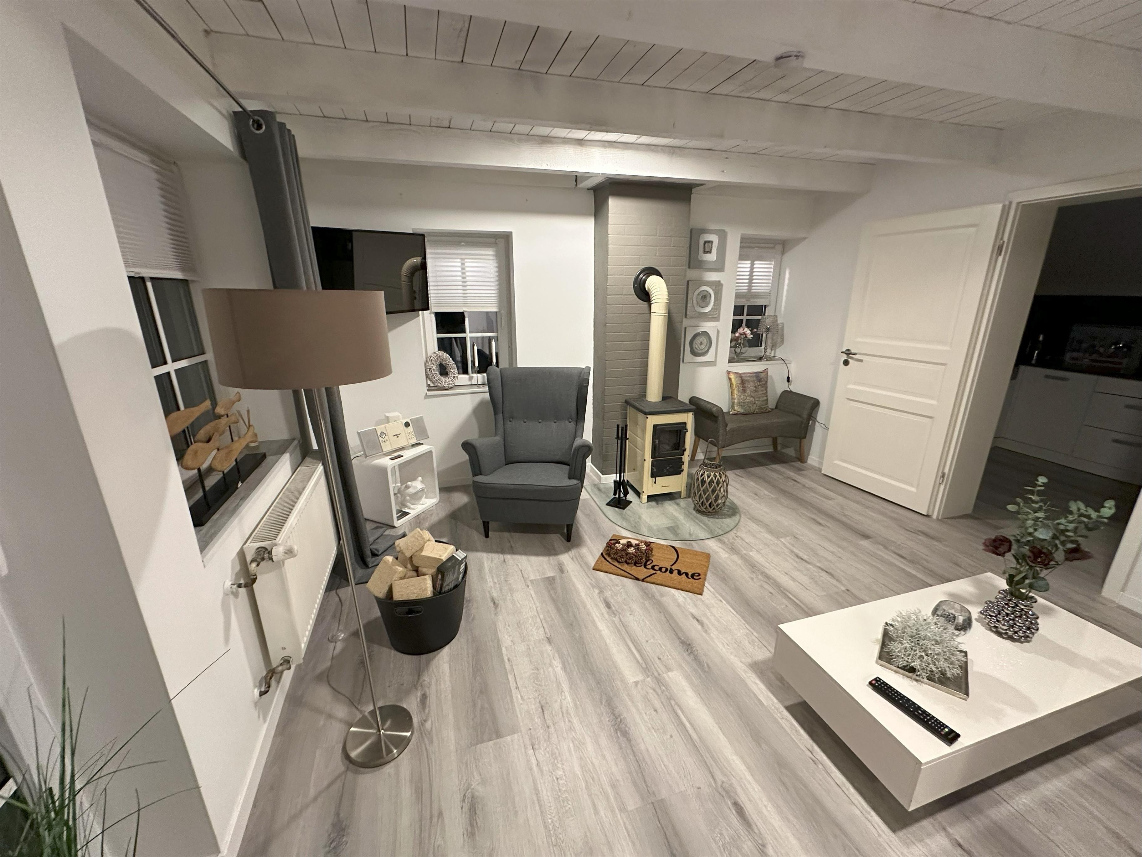 Die Doppelhaushälfte hat eine hübsche Küche mit Spülmaschine, Waschmaschine mit Trockner, Kühlschrank und Backofen. Eine Eckbank mit Blick aus dem Fenster Richtung Deich. Hier macht das Frühstücken richtig Spaß. Die Küche ist frisch ausgerüstet mit3 Kaffeemaschinen, Toaster, Küchengeschirr etc. Das gemütliche und helle Wohnzimmer hat einen kleinen Kaminofen. (Holz bitte mitbringen) Im Wohnzimmer relaxen Sie auf der gemütliche Eckcouch. Von hier geht man auf die Holzterrasse. Hier gibt es einen kleinen Garten , einen hübschen Strandkorb, einen Grill und eine Gartentischgruppe. Das Bad hat eine bodentiefe Dusche und ist mit Handtüchern ausgestattet. Das Schlafzimmer hat ein großes Boxspringbett in 180x200cm , einen gemütlichen Ohrensessel und einen neuen Smart TV. Bis zum Deich sind es nur wenige Minuten. Dann erwartet einen der Blick auf die Nordsee und im Hintergrund Insel Norderney. Wir sind Ostfriesen und lieben Ostfriesland und die Küste. Mit unseren liebevoll eingerichteten Ferienwohnungen möchten wir Ihnen einen schönen Urlaub ermöglichen. Diese schöne Doppelhaushälfte in Deichnähe mit seinem kleinen Garten, der schönen Holzterrasse, dem kostenlosen Parkplatz am Haus und der hochwertigen Ausstattung hat alles was Ihnen einen tollen Aufenthalt an der ostfriesischen Küste ermöglicht. Sie liegt sehr nah am Deich, nah an Norddeich und dem Hafen. Alles ist mit dem Fahrrad leicht erreichbar. Hier können Sie die Weite und die Ruhe genießen. In der Wohnung wurde komplett alles erneuert und renoviert. Ostermarsch liegt zwischen Norddeich und Neßmersiel. Hübsche Fahrradwege direkt am Deich laden zu Touren ein. Zwei Fahrräder sind auch vorhanden und dürfen mitbenutzt werden. Unsere Ferienwohnung "Huus an`t Diek" ist ideal geeignet für zwei Gäste. Kinder sind auch willkommen, müssten dann aber auf der Couch oder auf mitgebrachten Schlafmöglichkeiten schlafen. Lage Diese wundervolle Ferienwohnung befindet sich circa 900 Meter von der Nordseeküste entfernt im ruhigen Ostermarsch. Von hier sind die attraktiven Touristenorte Norddeich und Neßmersiel zu Fuß, mit dem Fahrrad und dem Auto leicht zu erreichen, da eine schnelle Anbindung an eine Landstraße vorhanden ist. In diesen schönen Hafenstädten wird Ihnen nicht nur ein vielseitiges Touristenprogramm wie zum Beispiel Schwimmbäder und Mini-Golfplatz geboten, sondern Sie können auch die wunderschönen Sandstrände genießen. Außerdem wird Ihnen der Wunsch nach den Trauminseln Norderney, Juist und Baltrum nicht verwehrt, denn über die Häfen von Norddeich und Neßmersiel können Sie diese Urlaubsziele mit einer erlebnisreichen Fährfahrt leicht erreichen. Zusätzlich ist in der Nähe ein kleiner Flughafen, der Rundflüge zu den Inseln anbietet. Das perfekt gelegene Dorf Ostermarsch hat aber auch selbst viel zu bieten. Beispielsweise wäre zu erwähnen, dass dieses wunderhübsche Ostfriesendorf nur wenige Meter von der Nordsee entfernt ist und sich somit ideal für entspannende Deichspaziergänge eignet. Falls allerdings Lust auf eine moderne Altstadt besteht, sind sie innerhalb von 6 Fahrminuten in Norden.