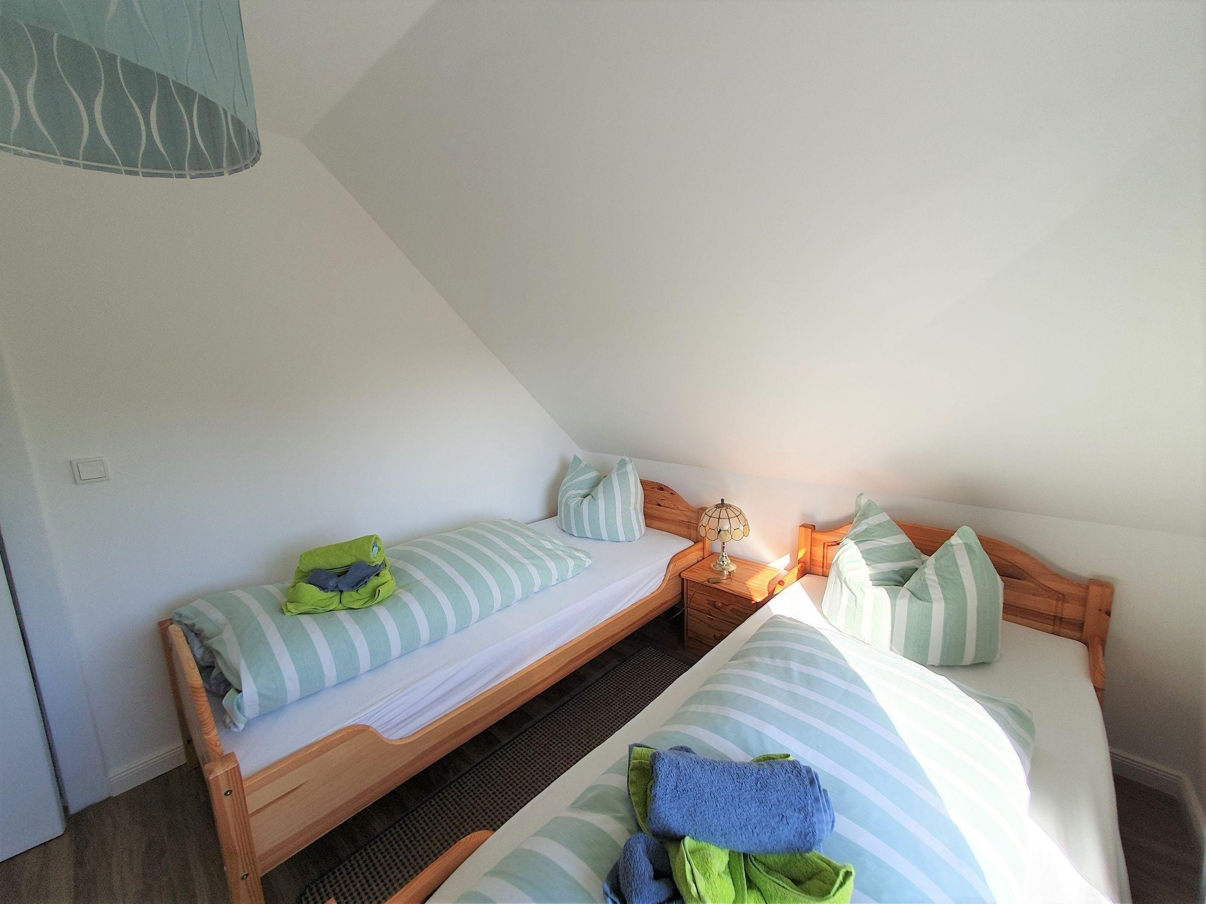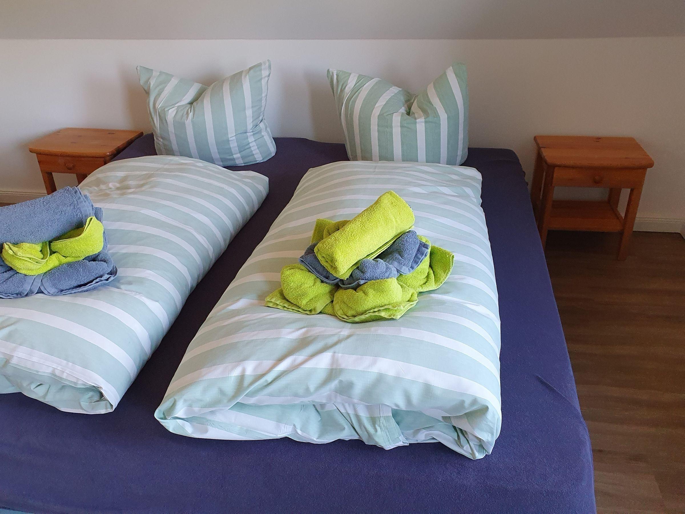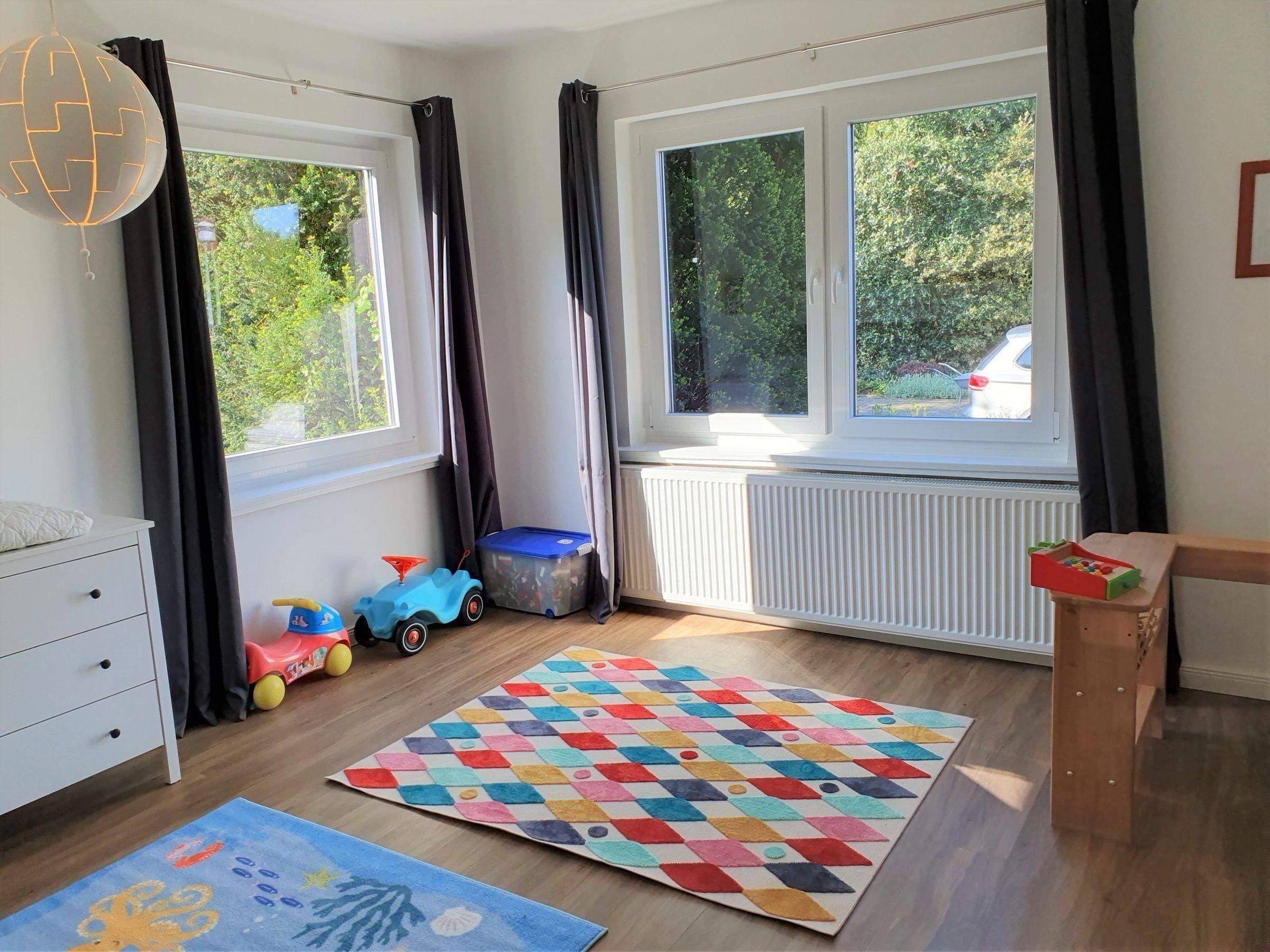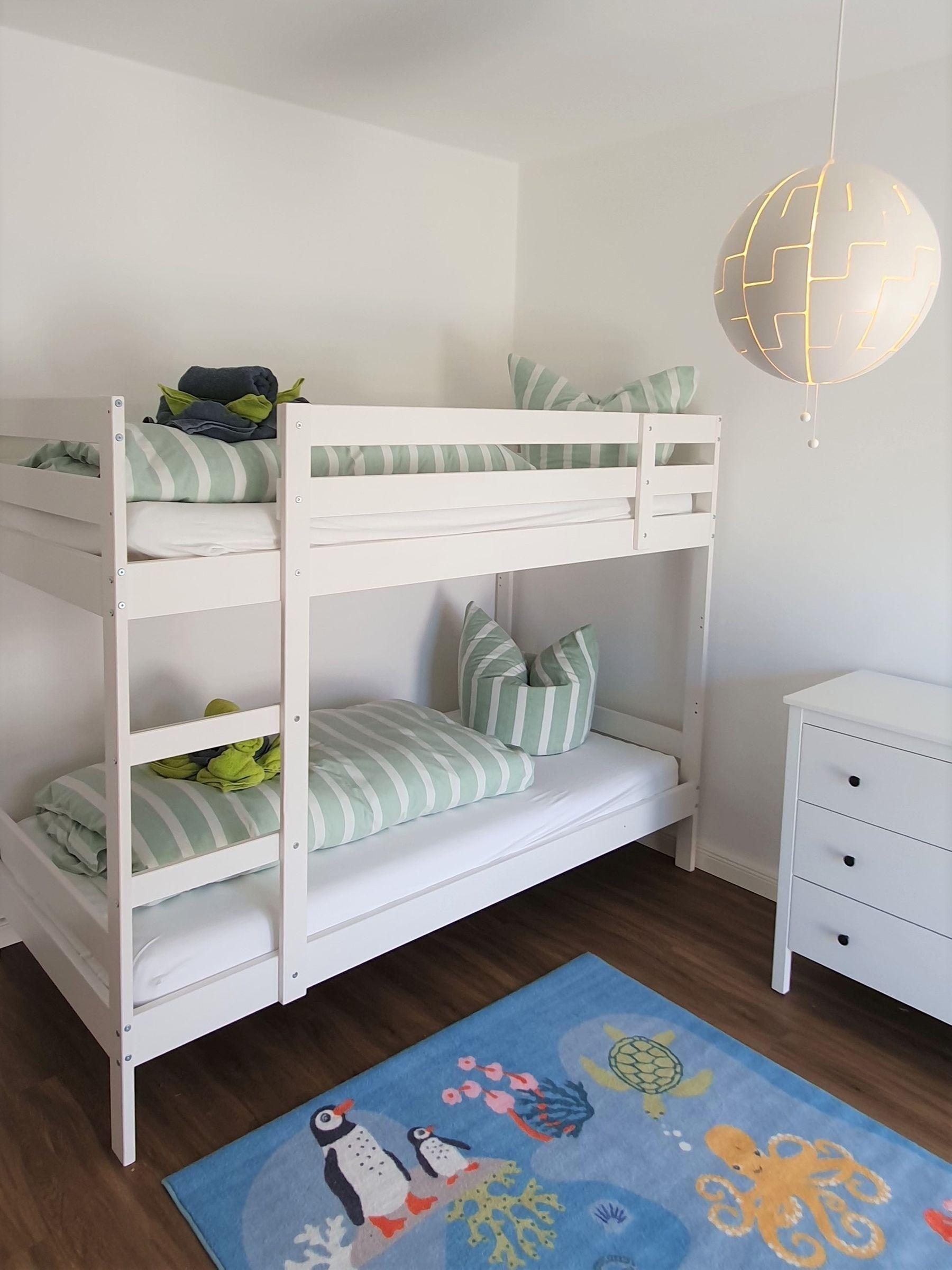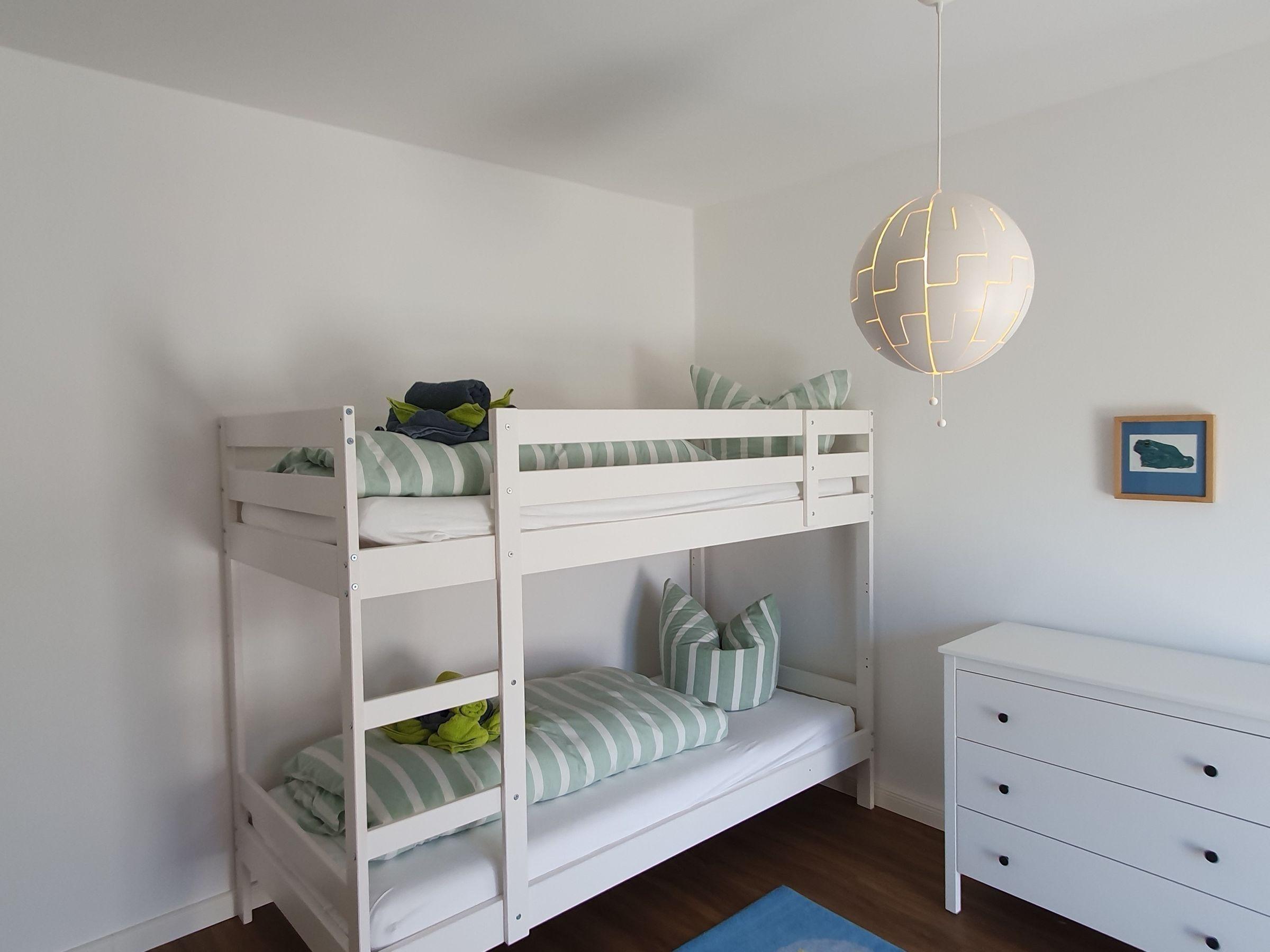 Die Ferienwohnung bietet großzügigen Platz für bis zu 10 Personen in vier stilvoll eingerichteten Schlafzimmern, darunter zwei Doppelbetten und vier Einzelbetten. Zwei moderne Badezimmer, eines mit bodengleicher Dusche und das andere mit Badewanne, garantieren Komfort und Privatsphäre. Die separate, voll ausgestattete Küche umfasst einen Geschirrspüler, Elektro-/Gasherd, Backofen, Mikrowelle, Kühlschrank und Kaffeemaschine sowie eine Gefriermöglichkeit und einen Toaster. Ein Esstisch lädt zu gemeinsamen Mahlzeiten ein. Die gemütliche Wohnecke mit Sofa, TV und HiFi-Anlage schafft eine entspannte Atmosphäre. Für Familien steht ein Kinderhochstuhl und eine Vielzahl an Kinderspielzeug zur Verfügung. Weitere Annehmlichkeiten sind kostenloses WLAN, eine Waschmaschine, Parkplatz und allergikergeeignete Ausstattung. Ein Badezimmer mit Fenster und zusätzliche Möbel wie Spiegel, Schrank und Kommode runden das Angebot ab. Die Wohnung ist ein idealer Rückzugsort für Familien und Gruppen.
