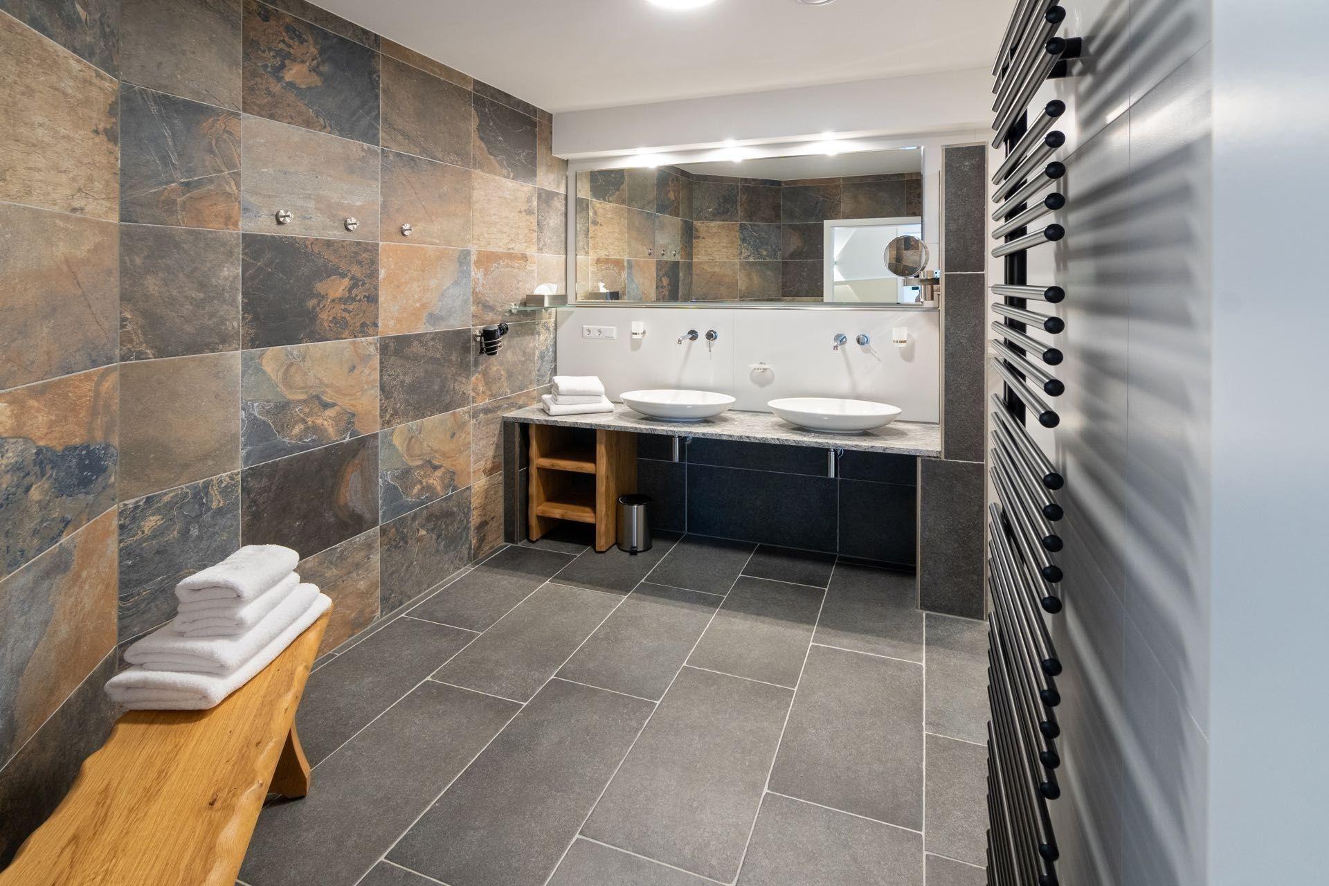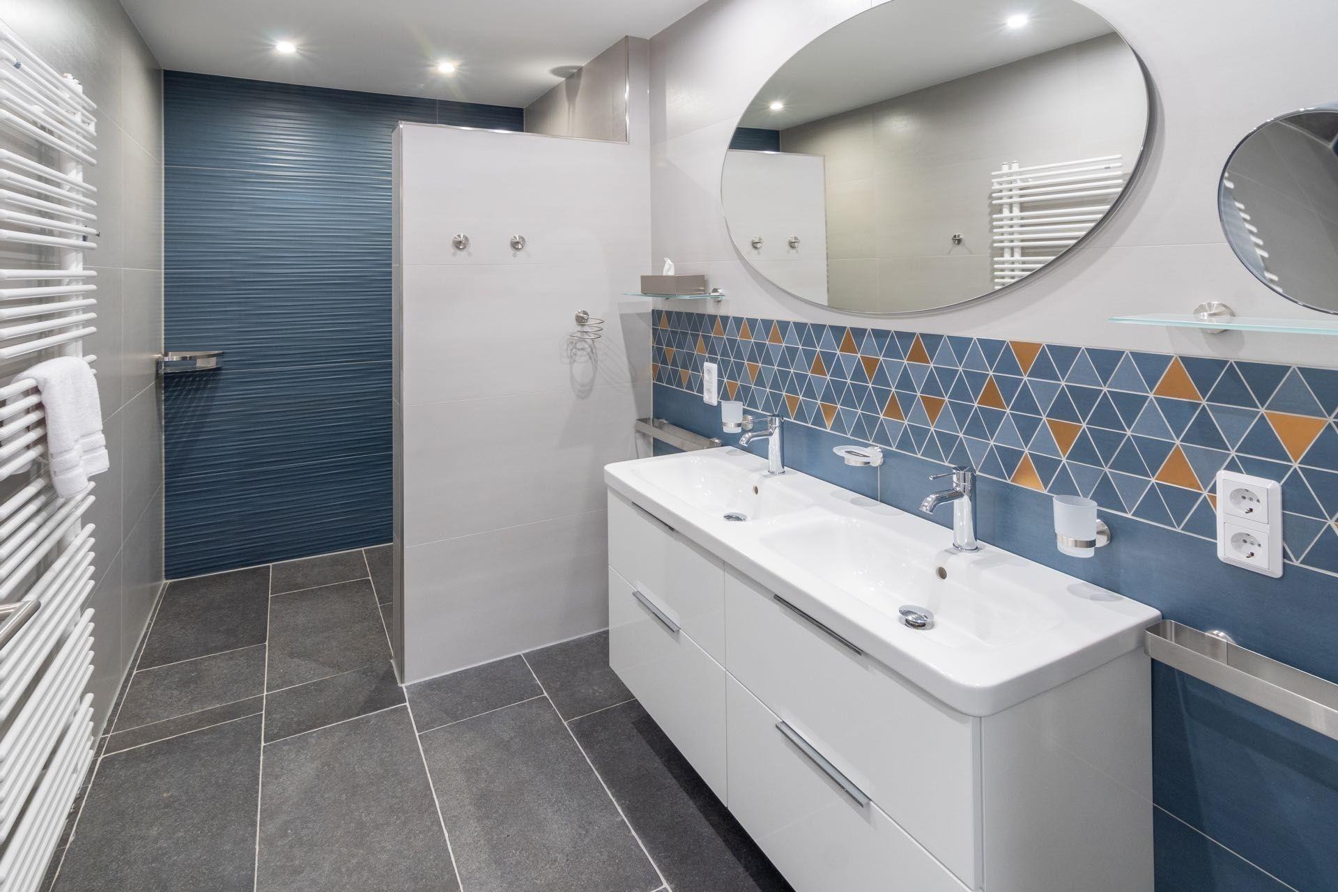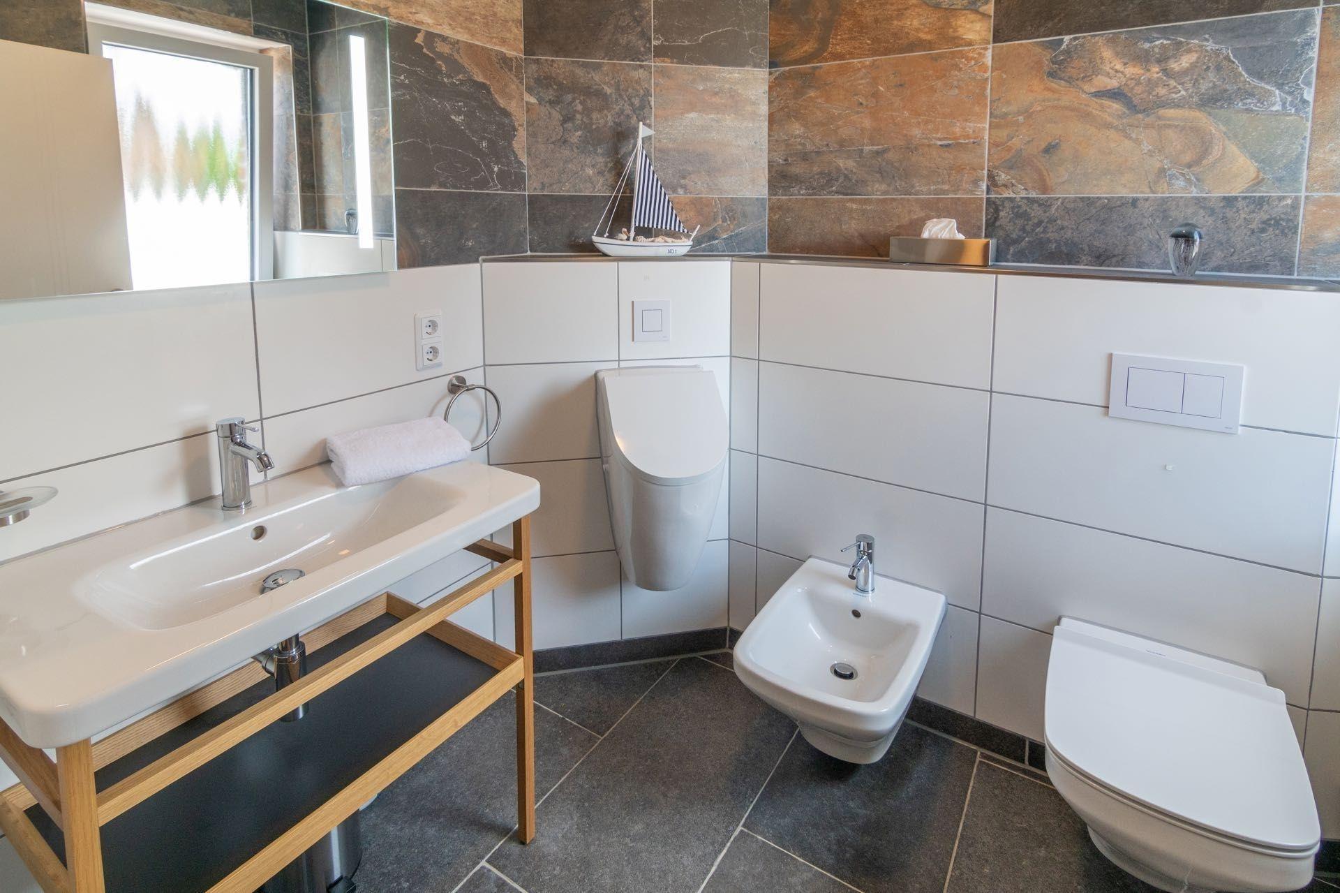 Die Ferienwohnung bietet eine komfortable und moderne Ausstattung, die für jeden Gast ideal ist. Sie verfügt über drei geschmackvoll eingerichtete Schlafzimmer mit insgesamt drei Doppelbetten, ideal für Familien oder Freunde. Die offene Küche ist vollständig ausgestattet mit einem Geschirrspüler, einem Elektro-/Gasherd, Backofen und Mikrowelle sowie weiteren Annehmlichkeiten wie einer Kaffeemaschine und einem Toaster. Die Bäder sind mit einem Duschbad und einem Gäste-WC ausgestattet, zudem stehen Haartrockner und Kosmetikspiegel zur Verfügung. Besonders hervorzuheben ist die Barrierefreiheit und die Seniorengerechtigkeit der Wohnung, die auf die Bedürfnisse aller Gäste eingeht. Der Wohnbereich mit Sofa, Sessel und Esstisch lädt zum Entspannen ein. Internet über WLAN, ein Fitnessraum und weitere Annehmlichkeiten wie Waschmaschine und Wäschetrockner runden das Angebot ab. Ein Parkplatz ist ebenfalls vorhanden, ebenso wie ein Fahrstuhl für einen bequemen Zugang.