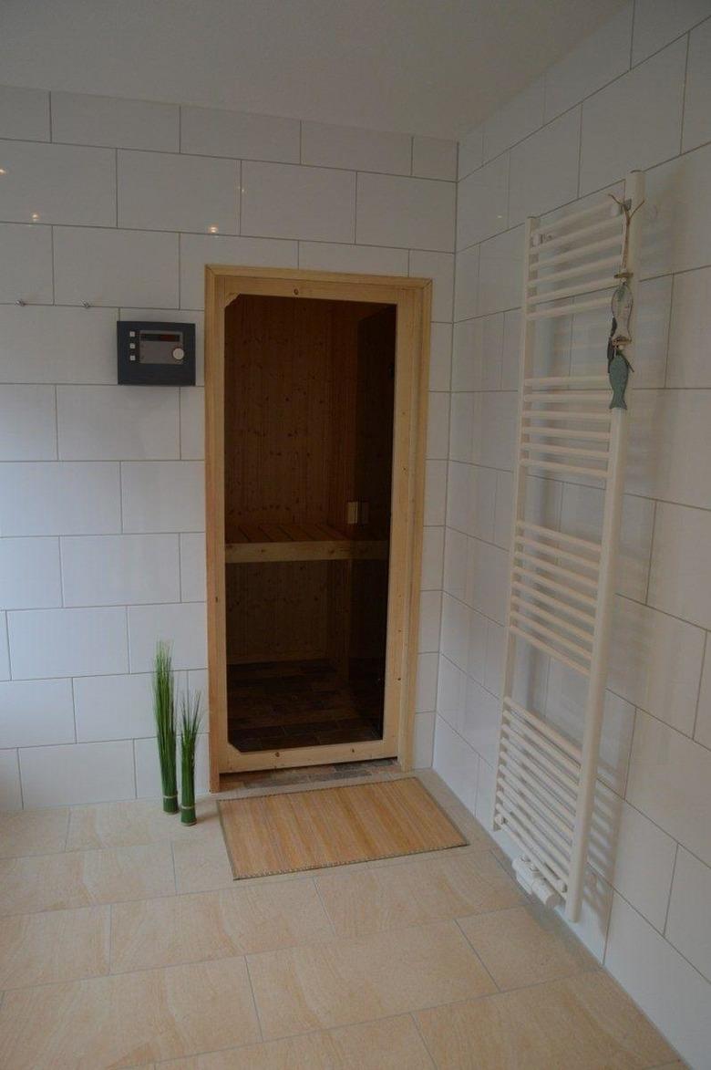 Ein weiteres Highlight des Hauses ist die finnische Sauna mit drei Liegebänken. Die Rainshowerdusche sorgt im Anschluss an den Saunagang für eine erfrischende Abkühlung.