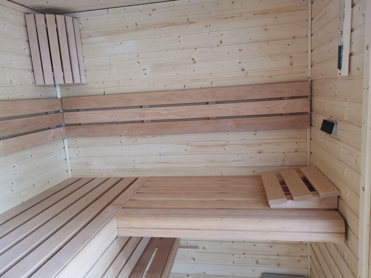Highlight dieser modernen Wohnung ist die Sauna im Terrassenbereich mit Blick auf Wiesen u. Felder.