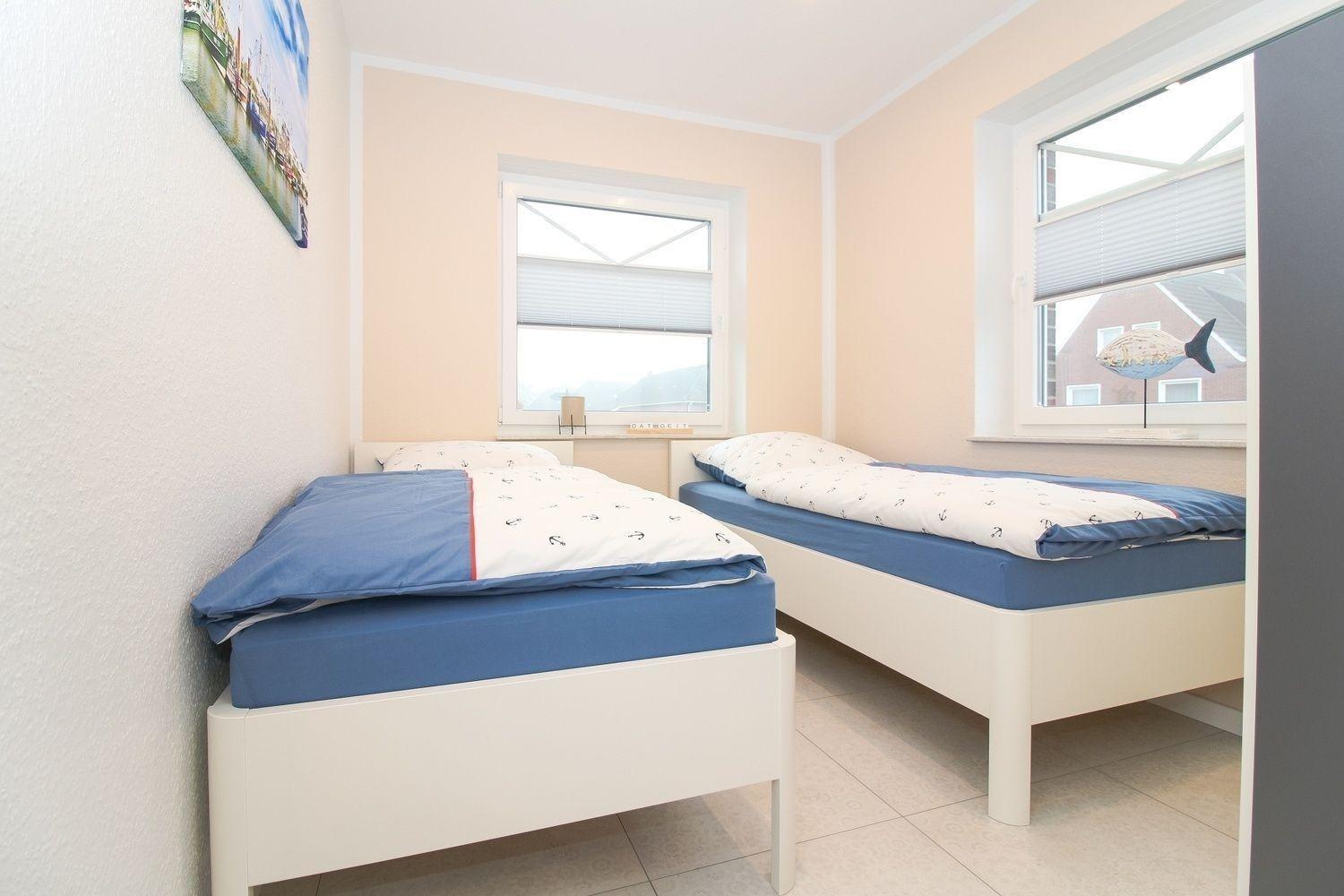 Anliegend befindet sich ein Schlafzimmer mit zwei Einzelbetten.