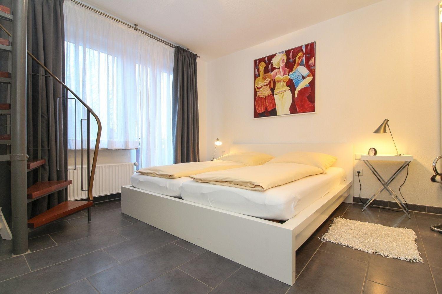 Es verfügt über ein gemütliches Schlafzimmer mit einem großen Doppelbett und direktem Balkonzugang im OG und über ein behagliches Schlafzimmer mit zwei Einzelbetten und einem geschmackvoll eingerichteten Wohnzimmer mit einer bestens ausgestatteten offenen Küche im EG.