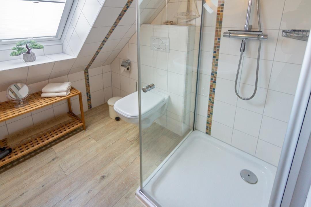 Im Wohnbereich finden Sie ein bequemes Sofa mit zwei Sesseln und einem Esstisch. Für Ihre Unterhaltung stehen Internet, WLAN, TV, Radio, ein DVD-Spieler, Bücher und Spiele zur Verfügung.Die separate Küche ist mit einem Ceran-Herd, Backofen, Gefrierfach, Kühlschrank, Espressomaschine, Mikrowelle, Kaffeemaschine, Wasserkocher, Mixer, Toaster, Eierkocher sowie Geschirr, Besteck und Gewürzen ausgestattet.Das Badezimmer verfügt über eine Dusche, WC, Haartrockner, Waschbecken, Kosmetikspiegel, Spiegel und ein Fenster. Im Abstellraum finden Sie Bügeleisen und Bügelbrett, Wäscheständer, Feuermelder, Staubsauger und einen Verbandskasten. Eine Garderobe mit Schuhablage und Ganzkörperspiegel ist auch vorhanden.Im Schlafzimmer erwarten Sie zwei Einzelbetten mit hochwertigen, bequemen Matratzen sowie zwei Nachttische und ein Kleiderschrank.Ein abschließbarer Schuppen, den sich zwei Wohnungen teilen, bietet eine Ladestation für E-Bikes und Unterstellmöglichkeiten für Fahrräder.