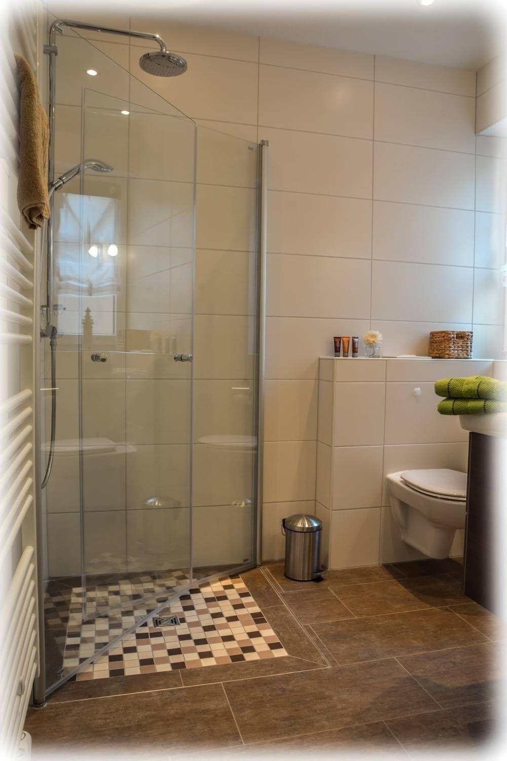 Das Tageslicht-Bad ist mit einer 1,00 x 1,00 m große ebenerdigen Dusche, welche auch mit einem Nass-Rollstuhl oder Gehwagen genutzt werden kann, ausgestattet. Die Echtglas-Duschabtrennung lässt sich komplett aufklappen. Das Wellness-Duschsystem mit Regen- und Massagedusche verspricht Wohlfühlen. Hier steht Ihnen auch ein Dusch-Hocker zur Verfügung. Ein großes Waschbecken samt Unterschrank mit 2 geräumigen Schubladen, ein Spiegel und ein Hänge-WC runden das Angebot ab. Fön und beleuchteter Kosmetikspiegel, elektrischer Dusch-Abzieher sind vorhanden.