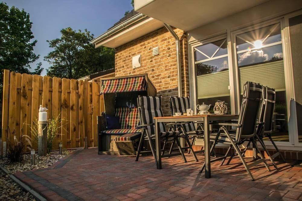 Hinweis zur Terrasse: fast 20 qm mit Gartenmöbeln, Strandkorb und Kontaktgrill
