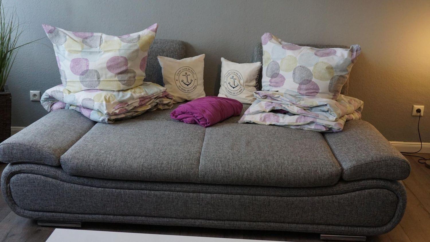 hier ist ein großer Wohnbereich, in dem auch die Schlafcouch (schmal) steht