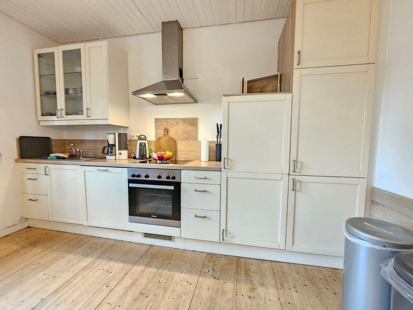Die komfortable Wohnküche bildet das Herzstück des Hauses. Hier finden Sie einen Essbereich für bis zu 8 Personen, ideal für gemeinsame Mahlzeiten oder gemütliche Spieleabende. Die Küche ist voll ausgestattet mit Ceranfeld & Backofen, Kühlschrank mit kleinem Gefrierfach, Spülmaschine, Mikrowelle, Wasserkocher, Kaffeepadmaschine, Kaffeemaschine sowie ausreichend Geschirr und Kochequipment.