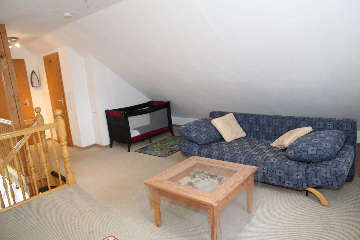 Weiterhin laden der Kaminofen, die offene Galerie, ein TFT-Fernseher mit digt. Sat-Empfang und DVD-Player + Filme, Playstation 3 + Spiele sowie eine Stereoanlage zu einem gemütlichen Abend auf der Couch ein.