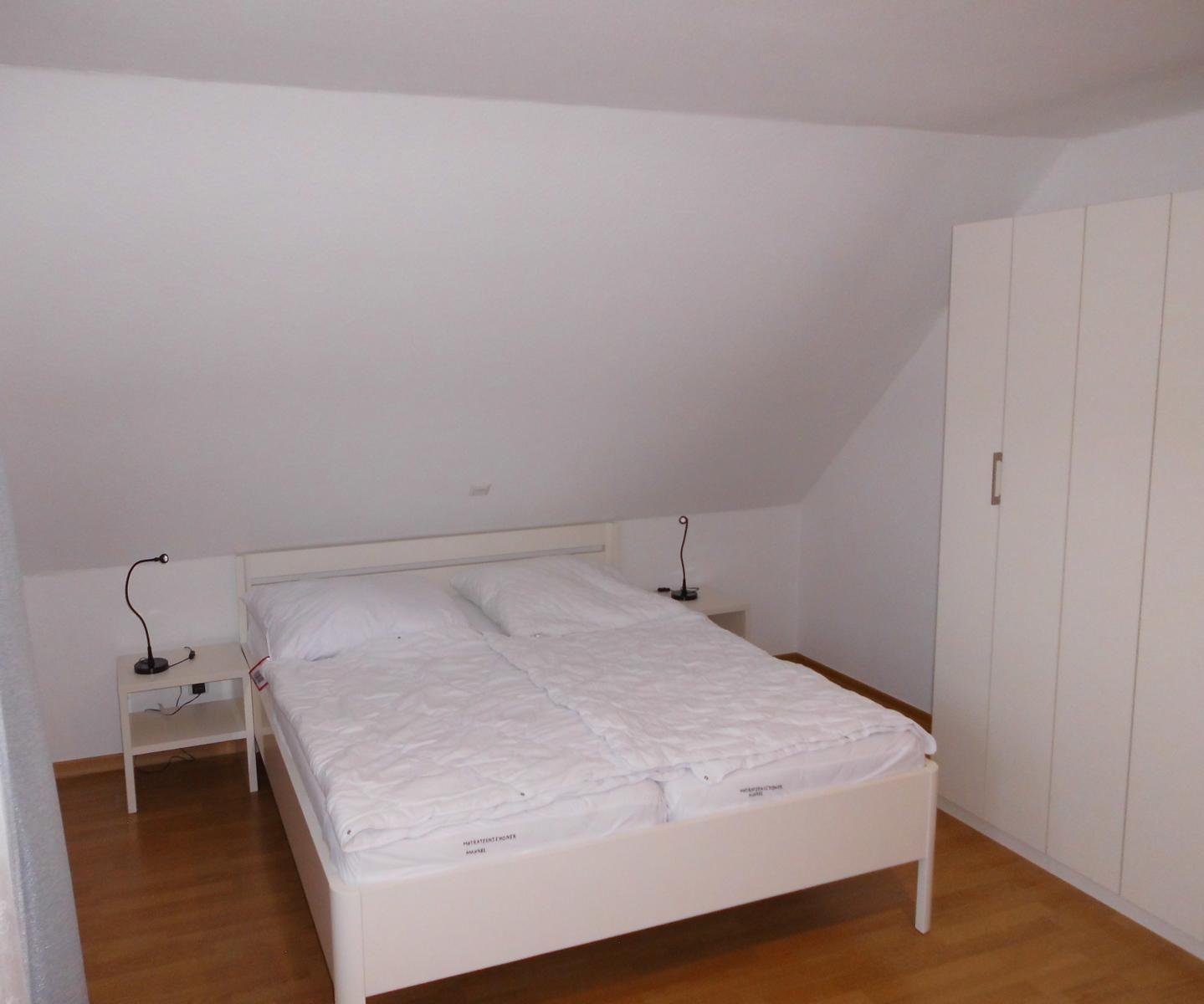 Im Obergeschoss sind 2 Schlafzimmer, eines davon mit einem Doppelbett, das zweite Schlafzimmer hat ein Doppelbett und Einzelbett (Dreibettzimmer) und Dusche/WC.