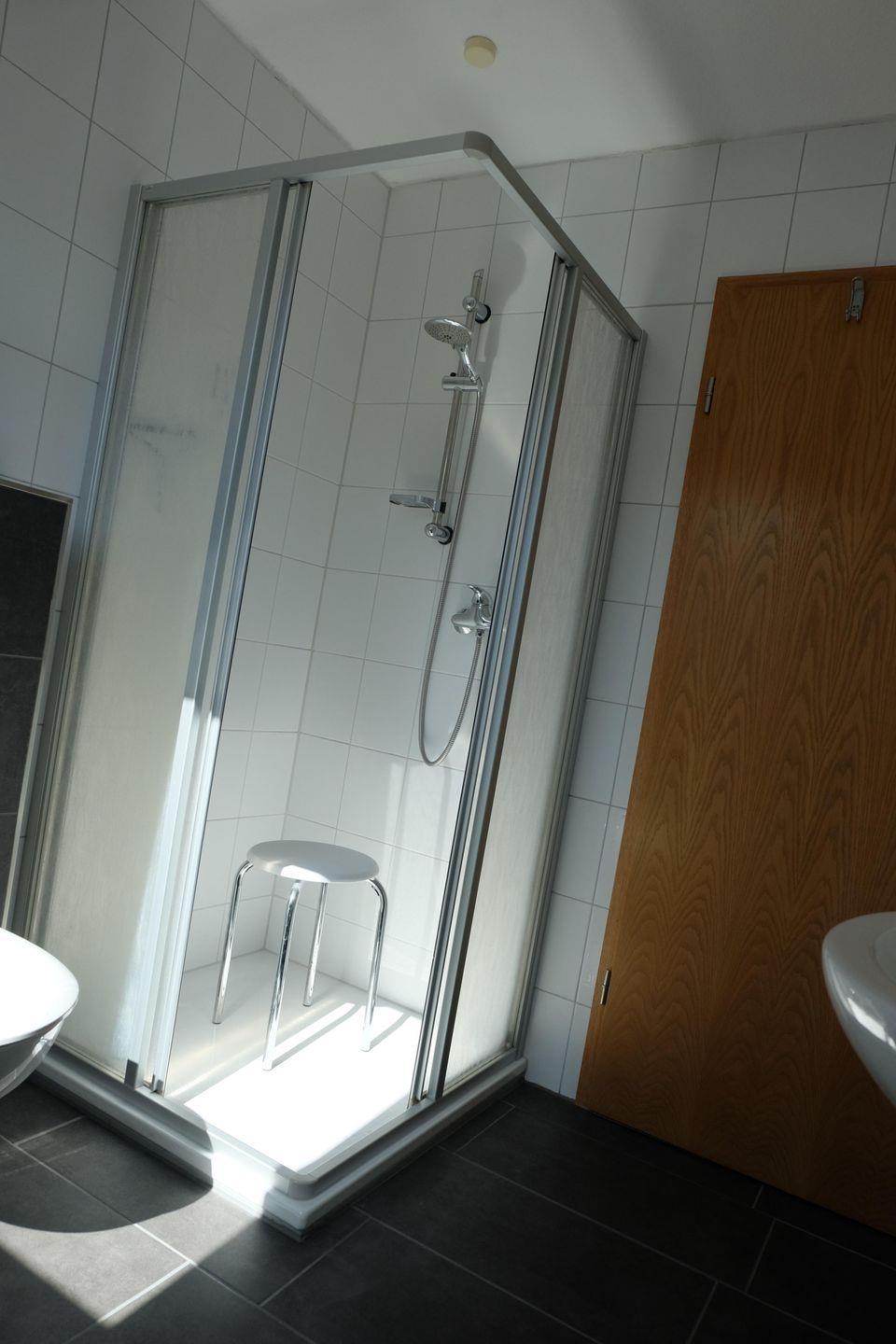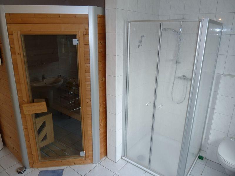 Ein großzügiges Duschbad mit niedrigem Einstieg inkl. Sauna (3-4 Personen) und WC sowie Handtuchtrockner mit Fußbodenerwärmung und Relax-Sessel befindet sich ebenfalls im Erdgeschoss. In beiden Bädern finden Sie einen Fön vor. Die schöne, große Süd-West-Terrasse mit anschl. Wiese ist mit 6 Stühlen mit Auflagen, einem großen Tisch und einem Sonnenschirm möbliert. Einen weiteren kleinen Tisch mit 2 Stühlen finden Sie im Holzhaus.