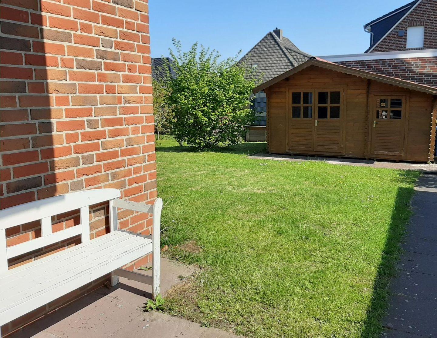 Zum Haus gehört ein großer Garten inkl. Holzhaus. Hier finden Sie auch Grill und Grillzubehör. Ihre Fahrräder können Sie in den Fahrradständern oder bei Regen im Holzhaus ebenfalls abstellen.