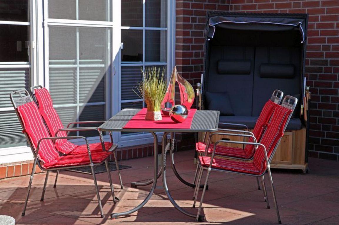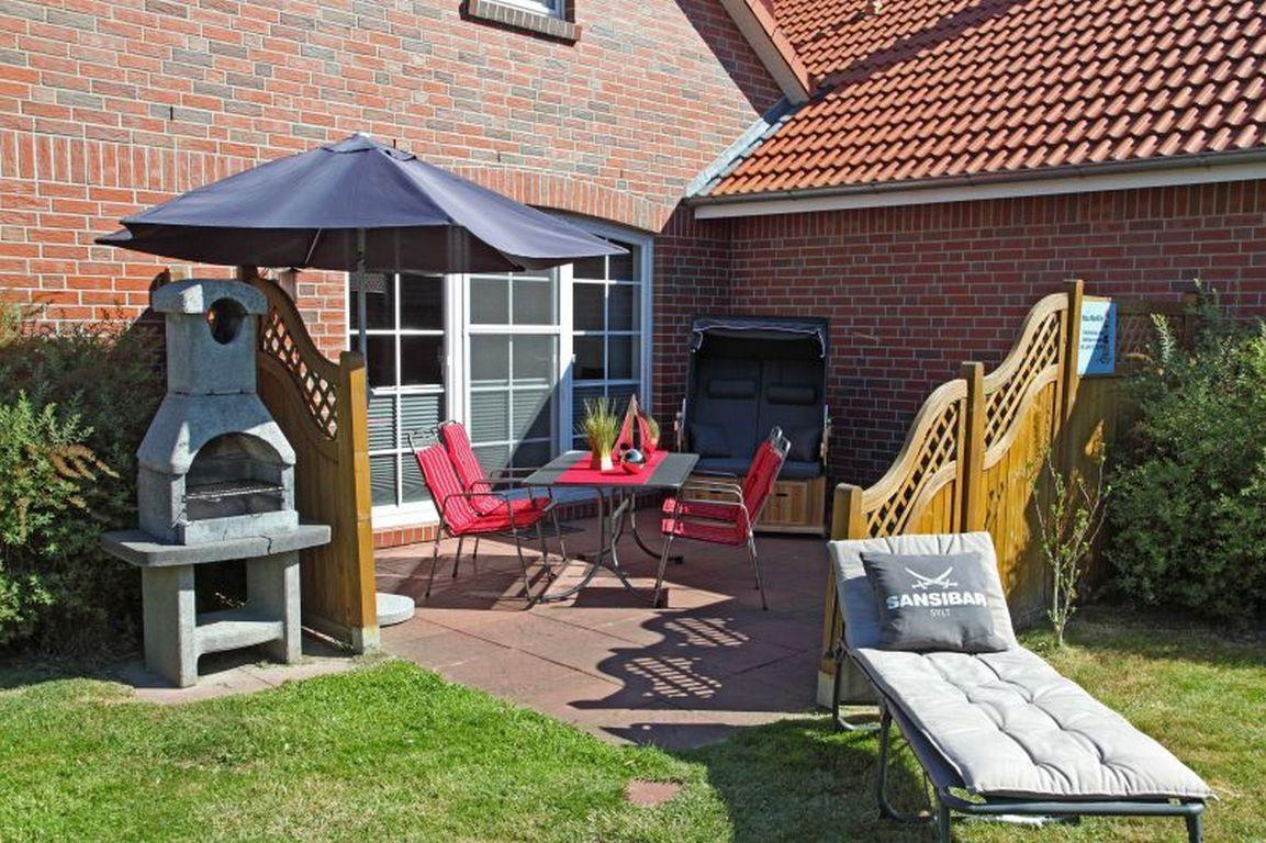 Die wunderschöne, mit Sichtschutzwänden eingegrenzte Terrasse lädt zum Verweilen ein. Sie verfügt über einen großen Tisch mit 6 Stühlen, 2 Liegen und einem großen Sonnenschirm. Direkt neben der Terrasse befindet sich ein Steingrill.
