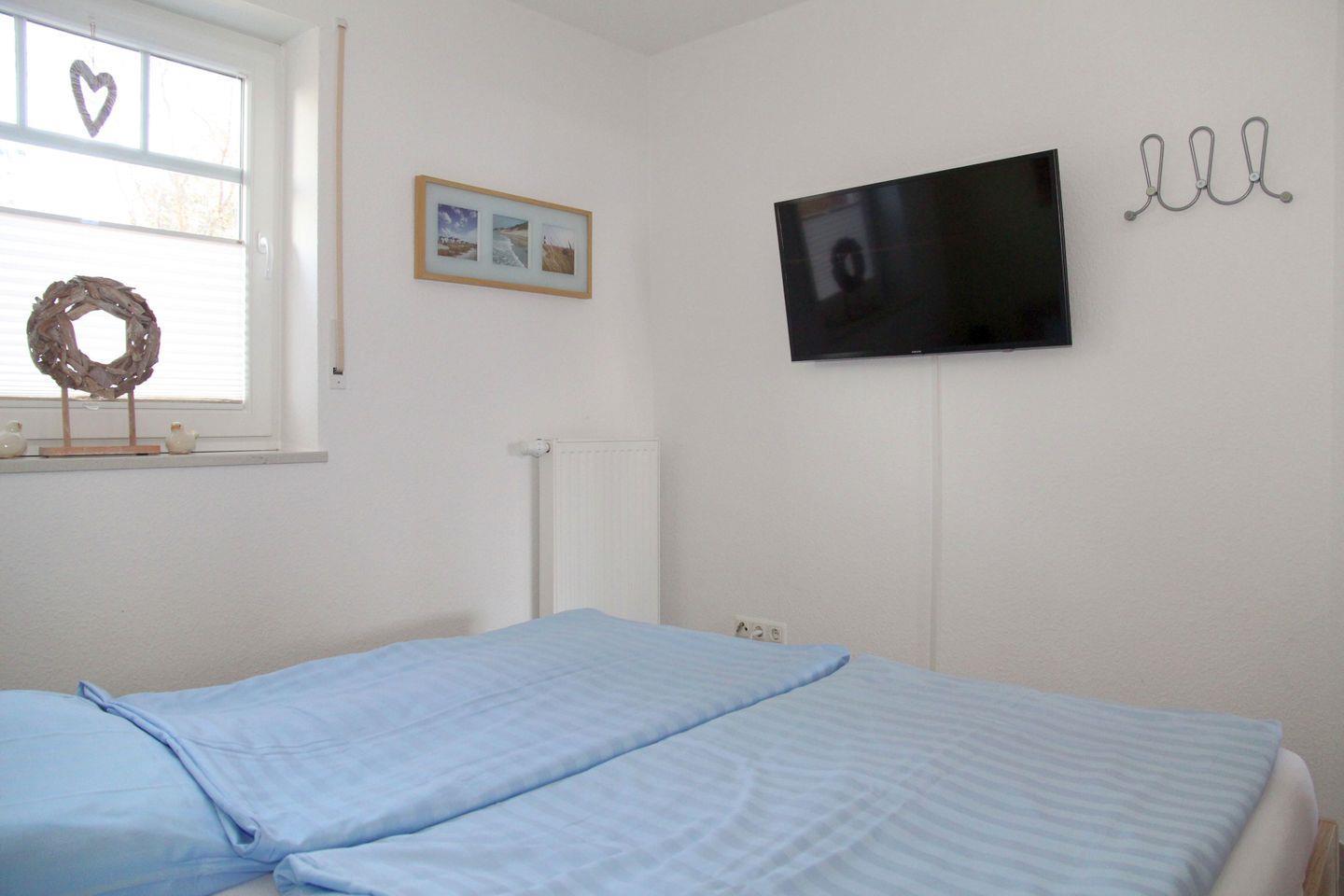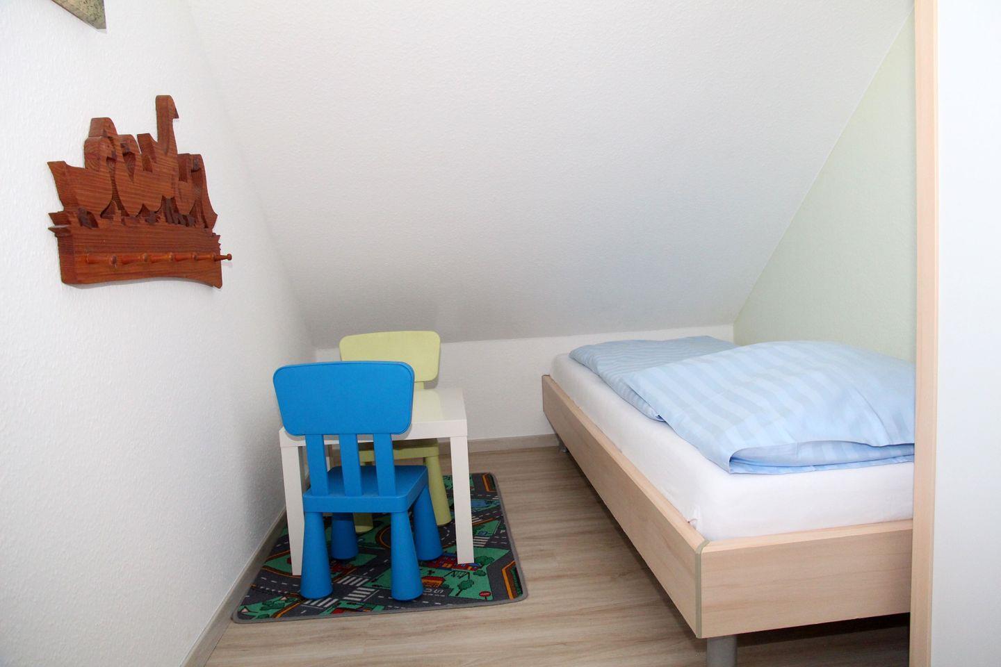 Im Obergeschoss gibt es ein zweites Duschbad, ebenfalls mit Fußbodenerwärmung, Dusche mit niedrigem Einstieg und Handtuchtrockner und 2 weitere Schlafzimmer (eins davon mit LCD-TV) mit hochwertigem Vinyl/Designboden ausgestattet. Für die kleinen Gäste gibt es kostenlos ein Kinderreisebett und einen Hochstuhl.