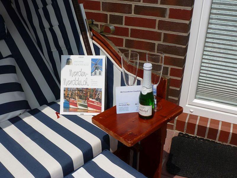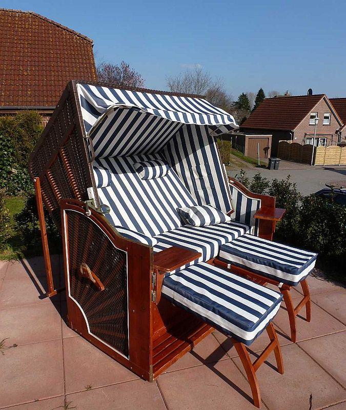 Der Garten zur Alleinnutzung und die schöne, große und möblierte Terrasse laden zu Sonnenstunden ein und verfügen über 6 Stühle und einen großen Tisch, 2 Relax-Liegen (alle mit Auflagen), großen Sonnenschirm und Weber-Grill. In dem XXL-Strandkorb können Sie windgeschützt die Sonne genießen.