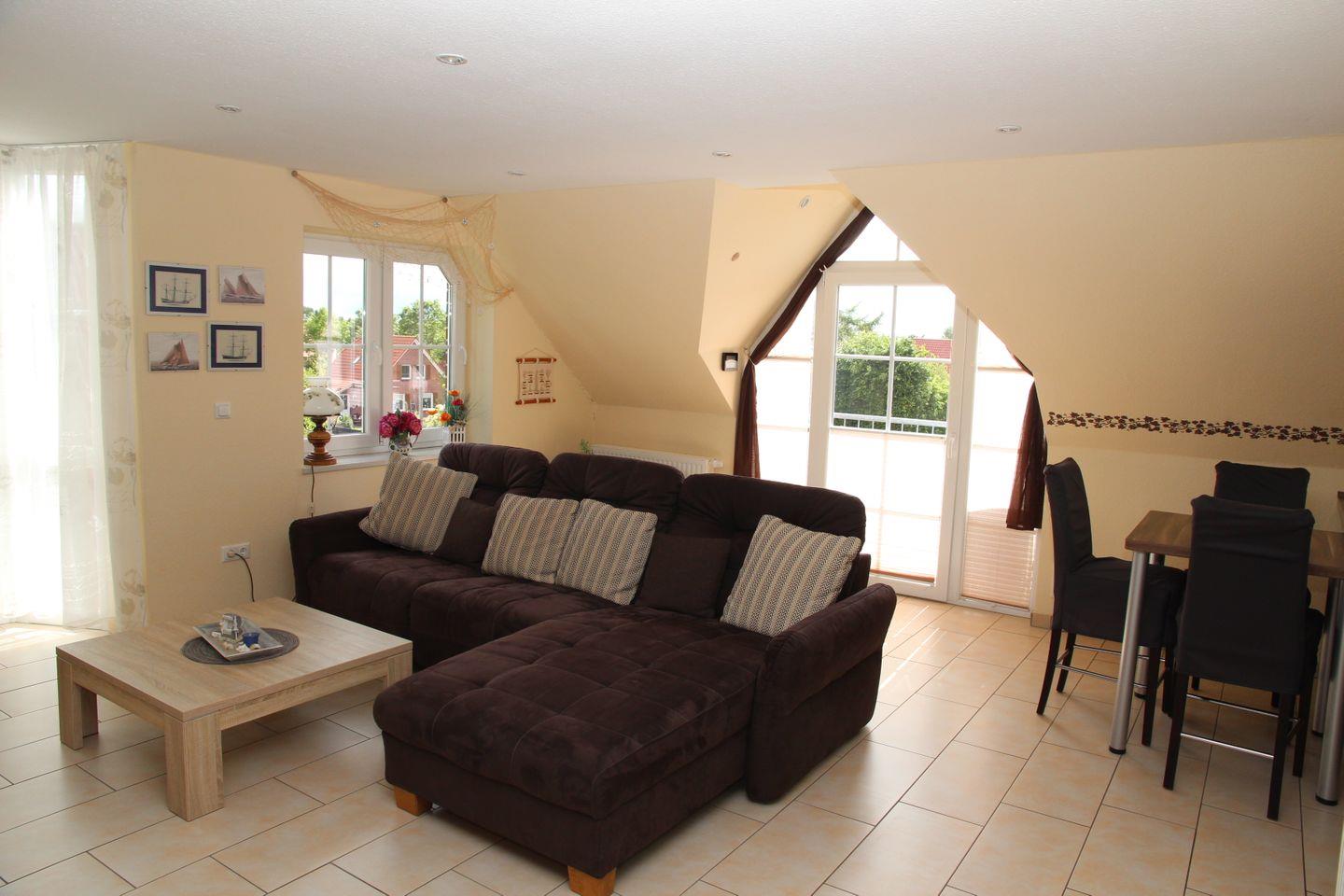 Großer Wohn-Essbereich mit SAT-TV, Musikanlage, CD-Player und einer Einbauküche mit reichhaltiger Ausstattung: Cerankochfeld, Backofen, Mikrowelle, Geschirrspülmaschine, Kühl-/Gefrierkombi, Cafissimo, Kaffeemaschine, Wasserkocher, Eierkocher, Toaster u.v.m.