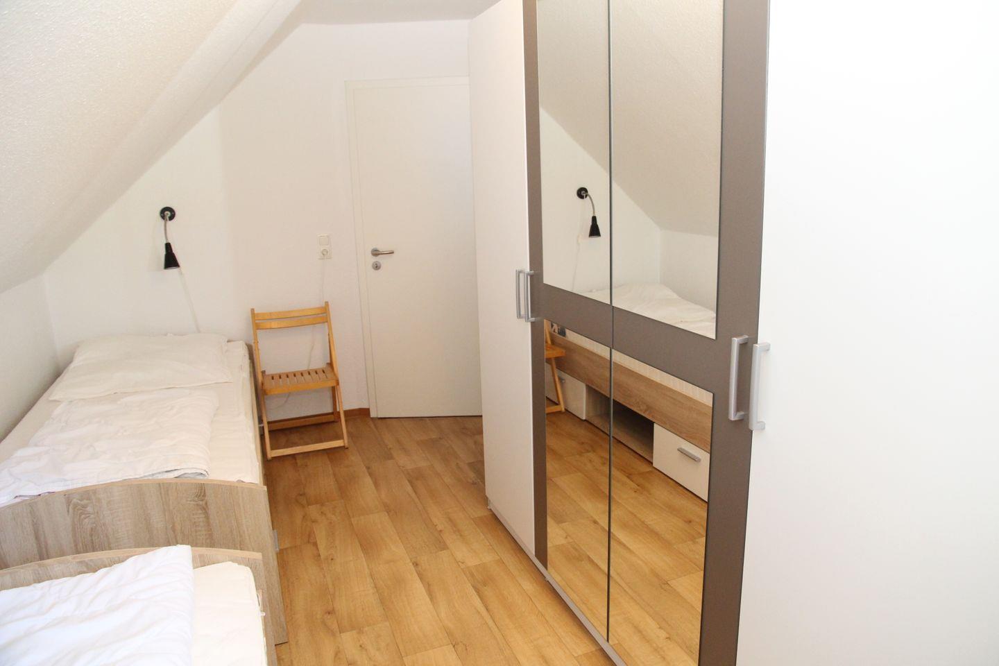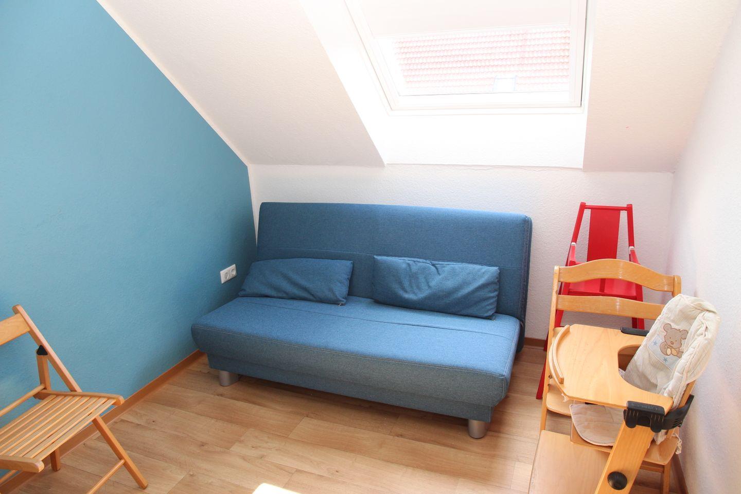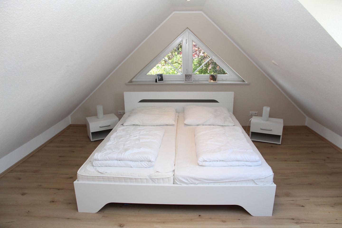 Ganze 6 Schlafplätze, aufgeteilt in drei Schlafräume, bieten Platz für einen erholsamen Schlaf. Auf der Wohnebene im Obergeschoss befinden sich ein Schlafzimmer mit 2 Einzelbetten und ein Schlafzimmer mit einer Schlafcouch für 2 Personen( 1,95 mx 1,60 m), das auch gut für die Kinder als Spielzimmer (Spiele vorhanden) genutzt werden kann. Ein Doppelbett befindet sich im großzügigen Dachstudio, dass mit einer Tür verschlossen werden kann. Alle Fenster sind mit Plissees versehen, in den Schlafräumen gibt es Verdunklungsrollos.