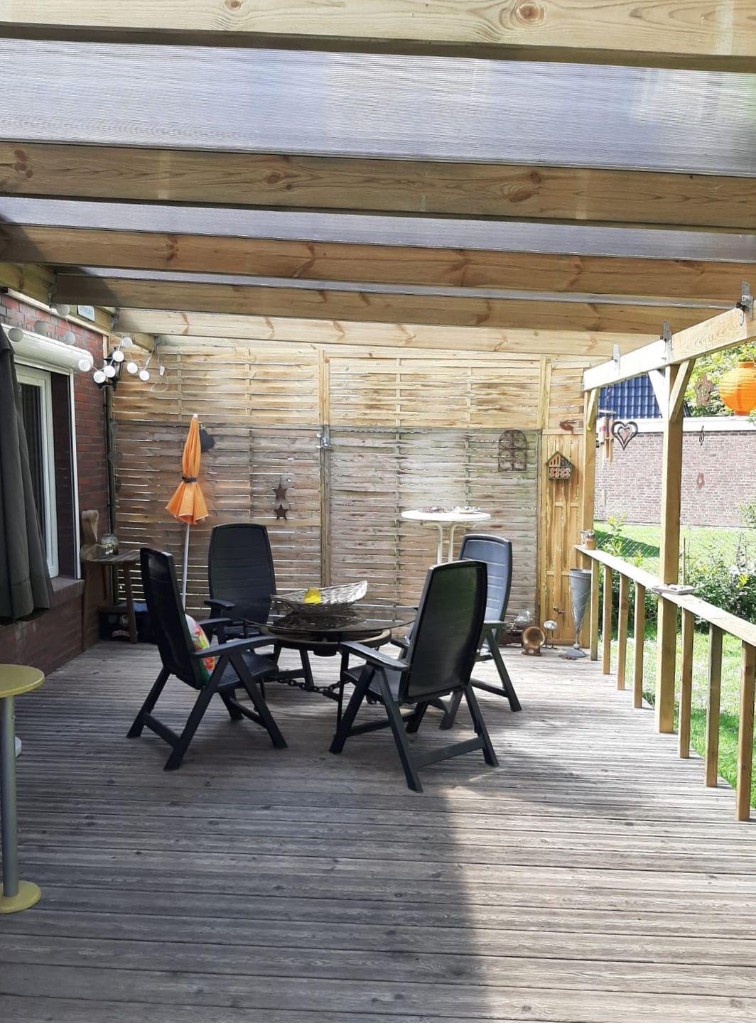 Ruhig und zentral gelegen. Wohn/Essbereich, Bad mit begehbarer Dusche/WC, Waschmaschine, 2 Schlafzimmer mit jeweils Doppelbetten, eine 5. Person könnte auf einem Gästebett/-hocker (ca. 70x190cm) schlafen, breite Türen, Terrasse, 2. TV-Gerät in einem Schlafzimmer. Die Außentür hat eine Breite von 85 cm. Im Ferienhaus haben die Türen eine Breite von 94 cm.