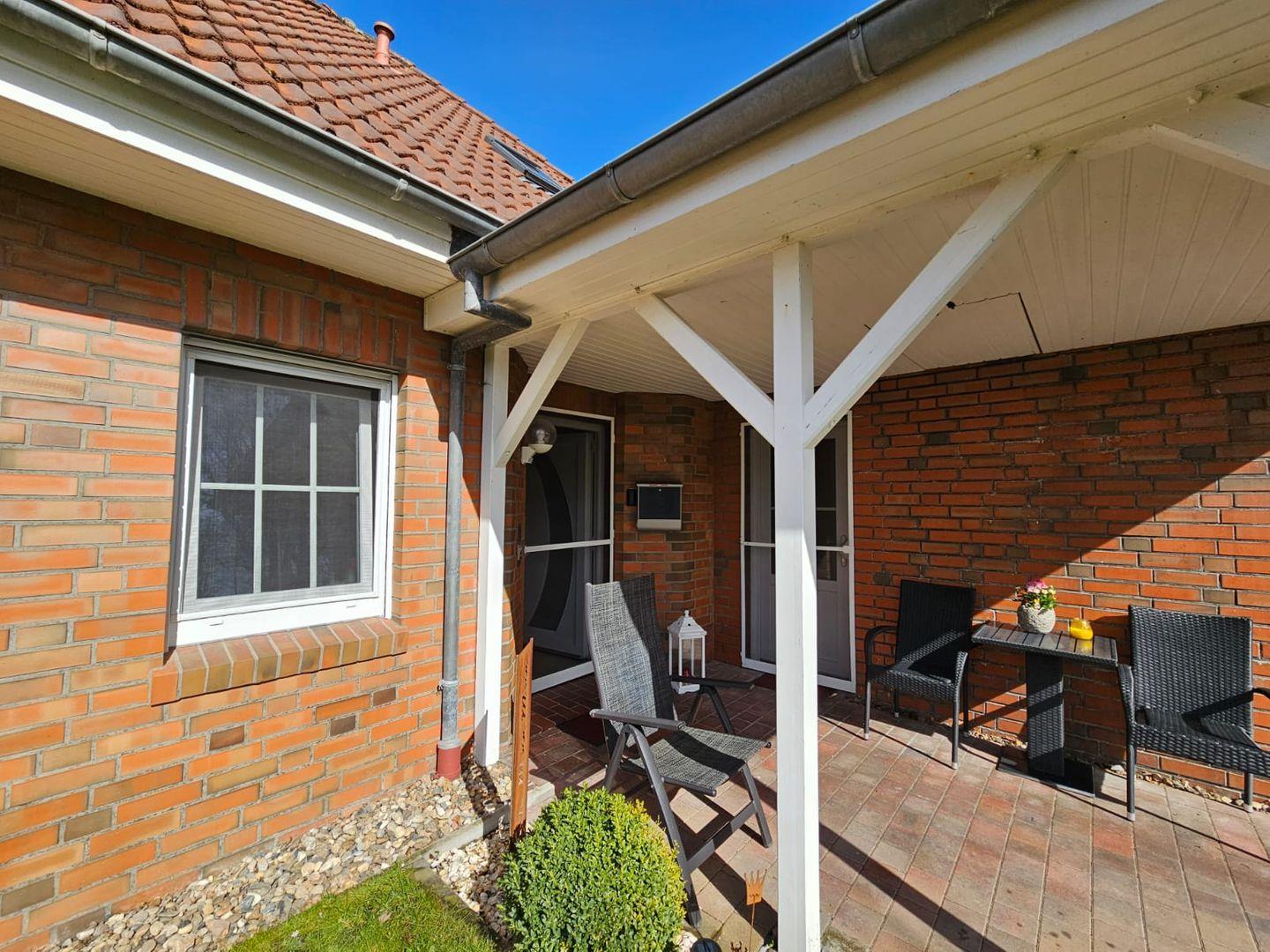 Terrasse mit Gartenmöbeln für sonnige Stunden oder Grillabende.