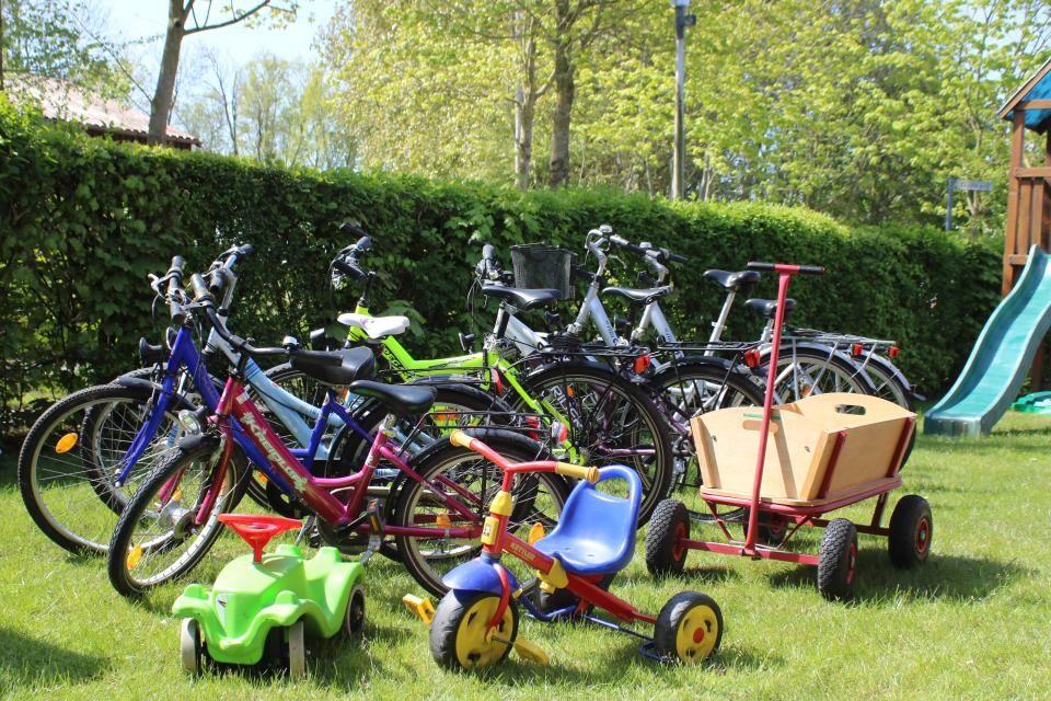 Fahrräder in verschiedenen Größen (20–28 Zoll), BobbyCar, Dreirad und Bollerwagen stehen zur Verfügung.