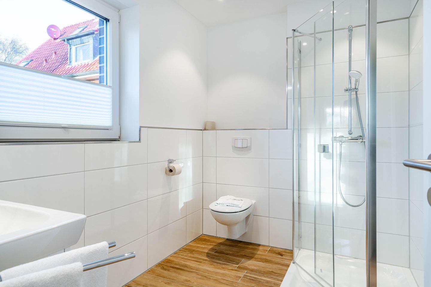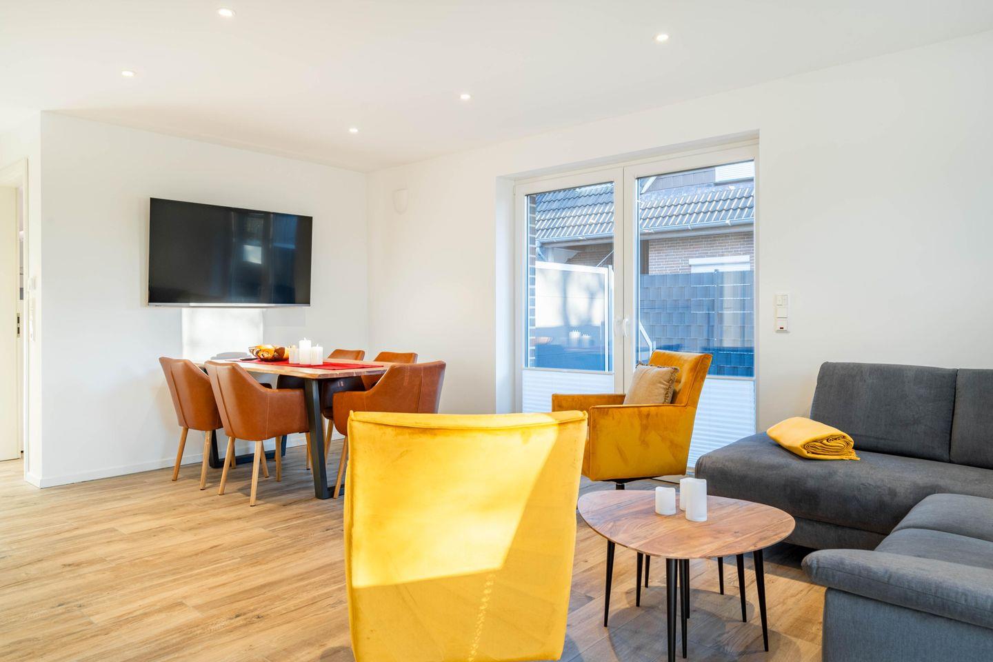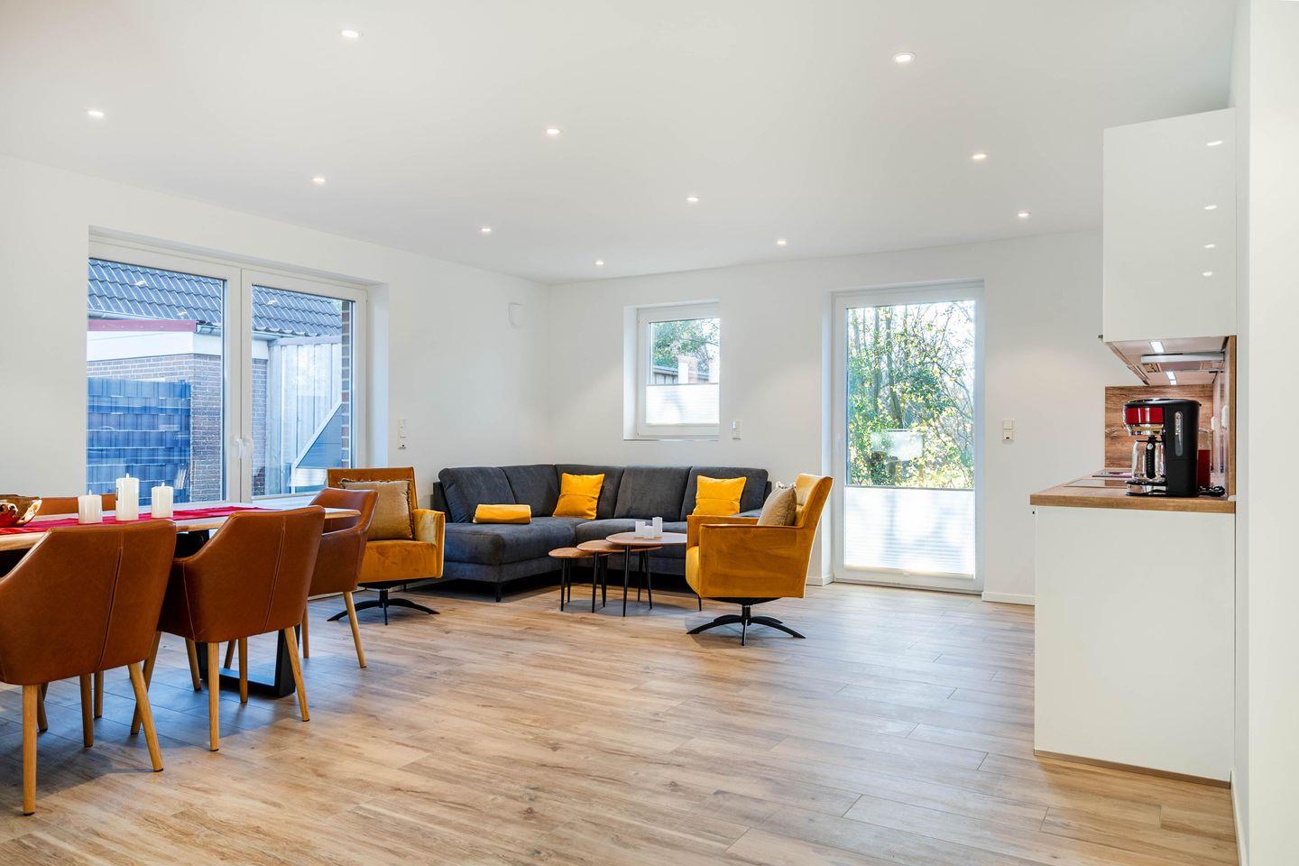 Borkum – zwei Schlafzimmer, ein Badezimmer, ein Abstellraum, inklusive Waschmaschine, ein Gäste-WC, großzügiger Wohn- und Essbereich, gemeinschaftliche Nutzung des Gartens und eine eigene Terrasse