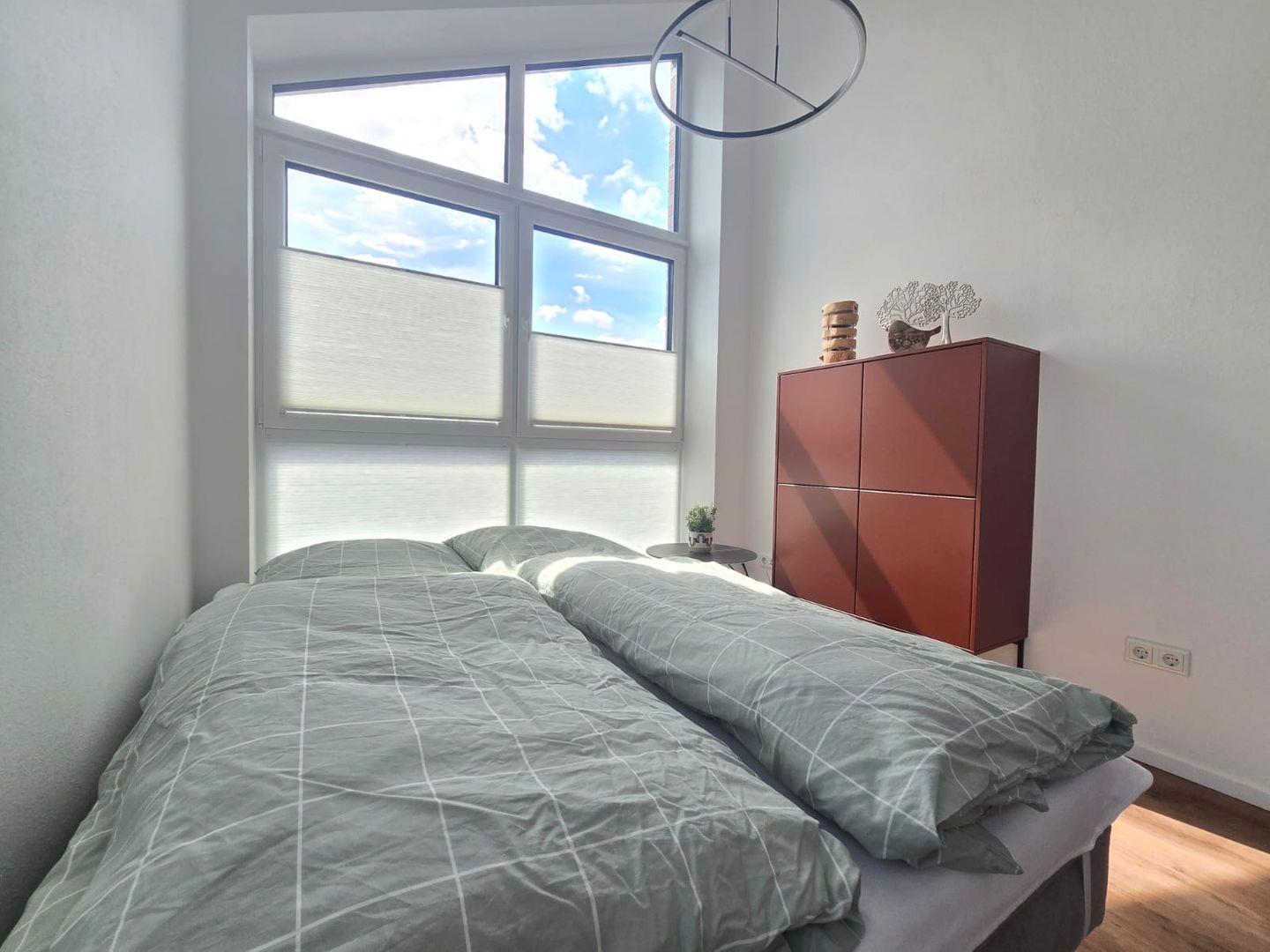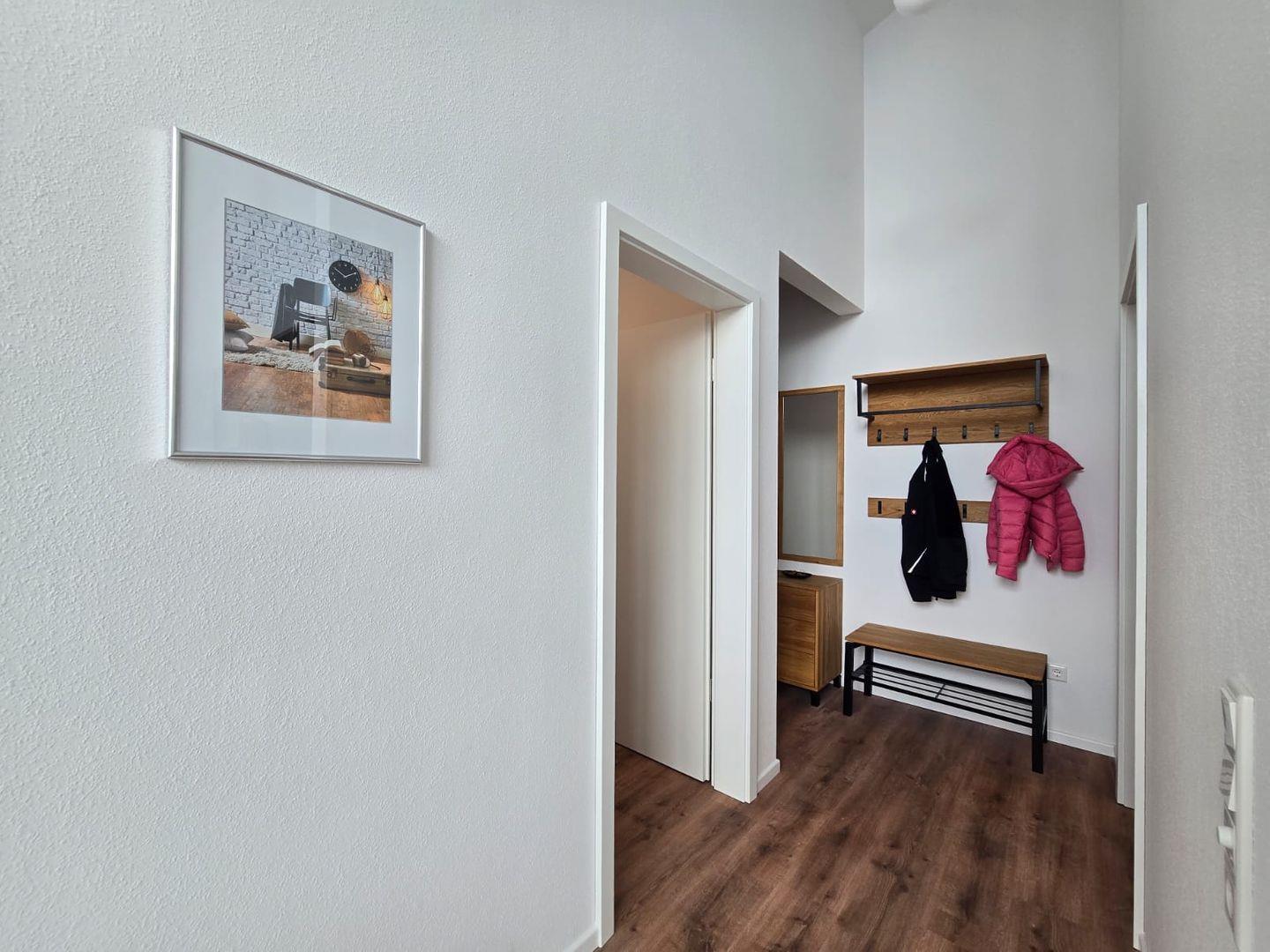 Die Wohnung bietet Platz für bis zu 4 Personen. Ein komfortables Schlafzimmer und eine hochwertige Schlafcouch sorgen für flexible Schlafmöglichkeiten. Das gut ausgestattete Badezimmer rundet den Wohnkomfort ab. Die Ferienwohnung ist bequem über einen Fahrstuhl erreichbar, was besonders für ältere Gäste und Familien mit Kindern angenehm ist.