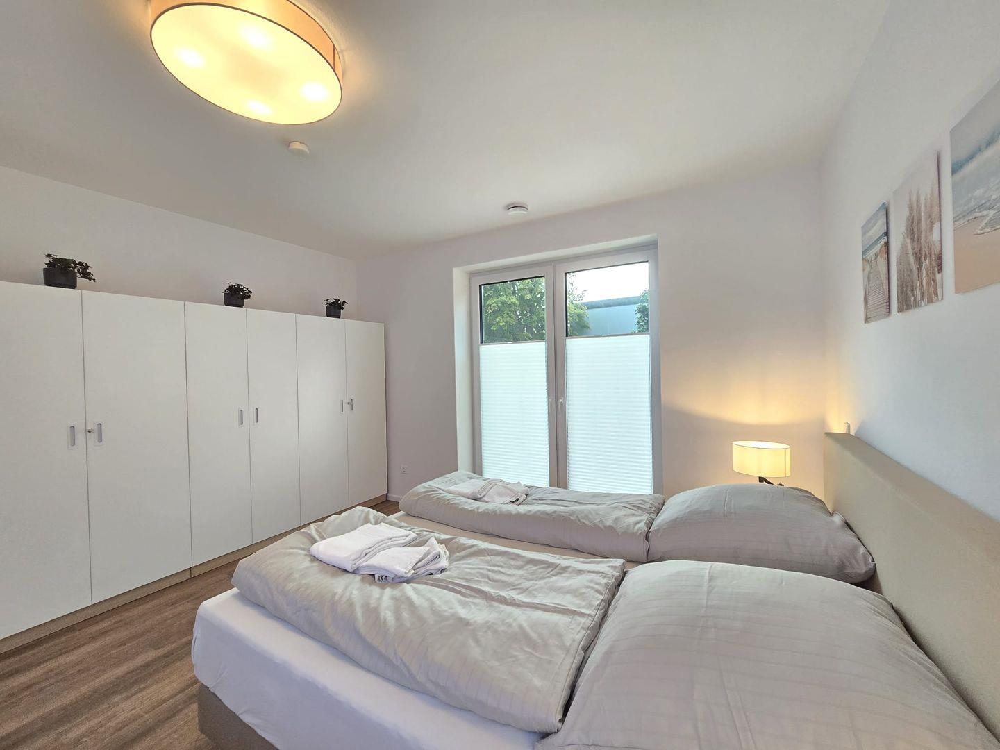 Die Ferienwohnung bietet Platz für bis zu 4 Personen. Die Schlafzimmer sind komfortabel eingerichtet und sorgen mit hochwertigen Betten für erholsame Nächte. Die ruhige Lage unterstützt einen angenehmen Schlafkomfort.
